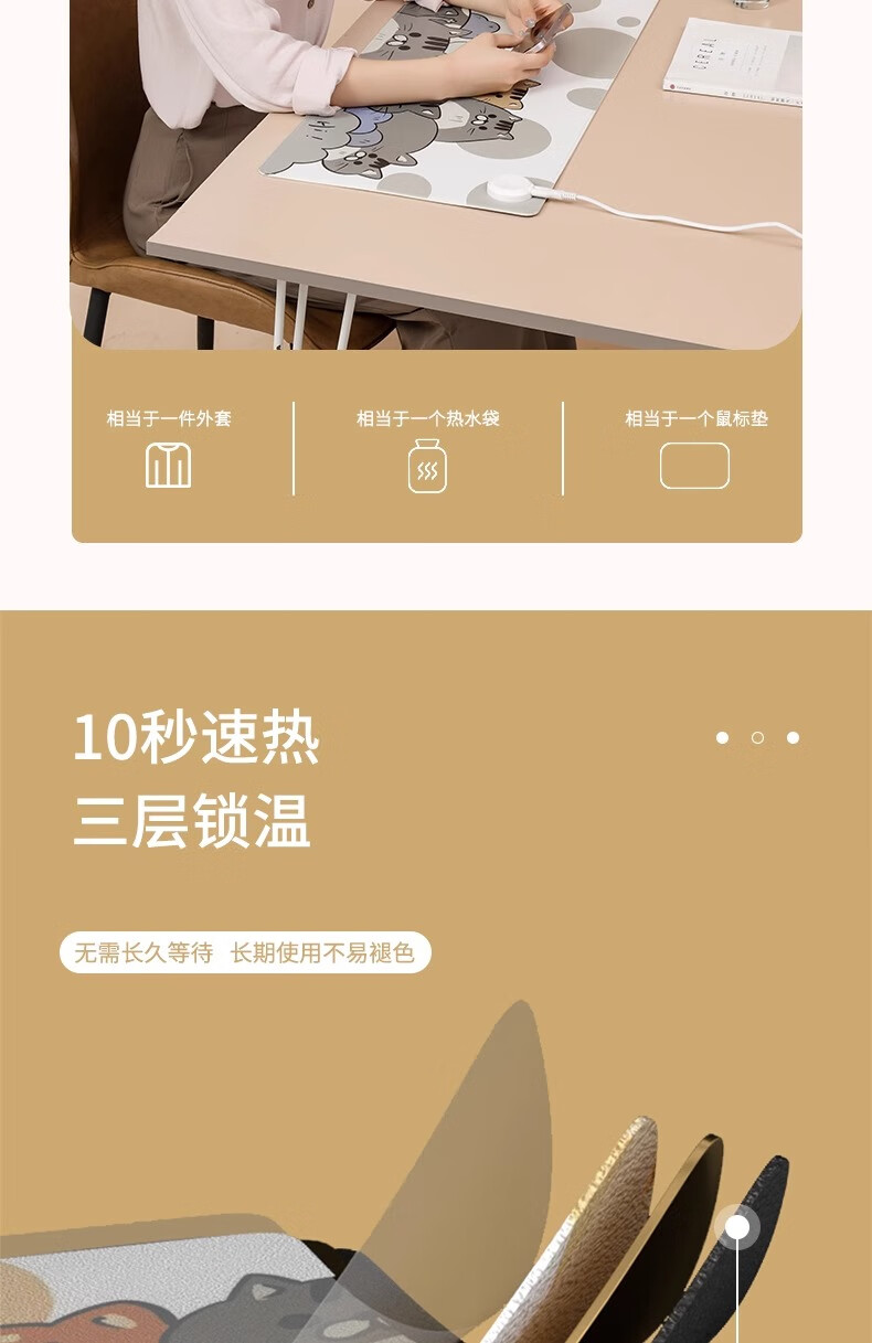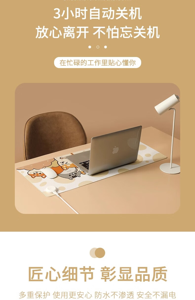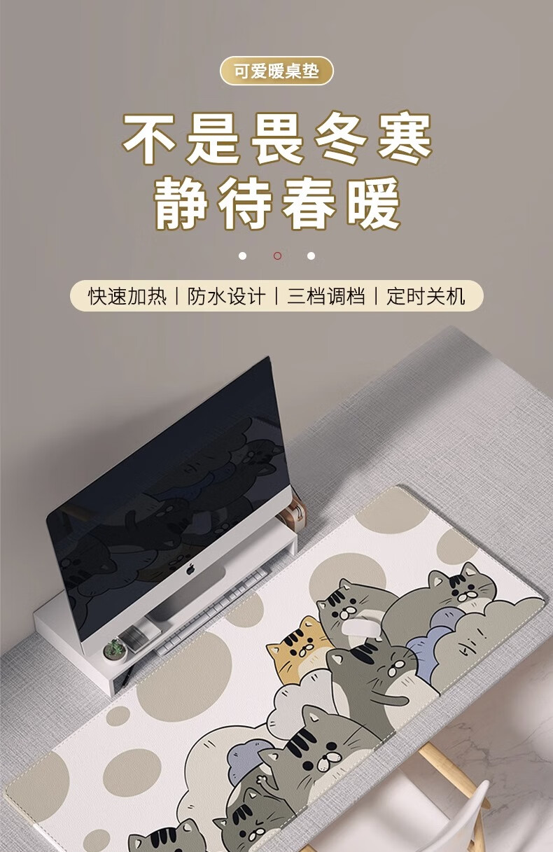 希维思(SIVASS)加热桌垫鼠标垫超大暖桌垫办公室电脑桌面学生写作业暖手发热暖垫 猫咪款【80*33cm】3档控温