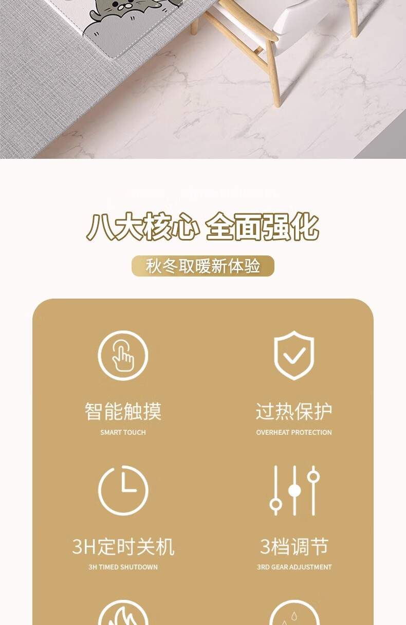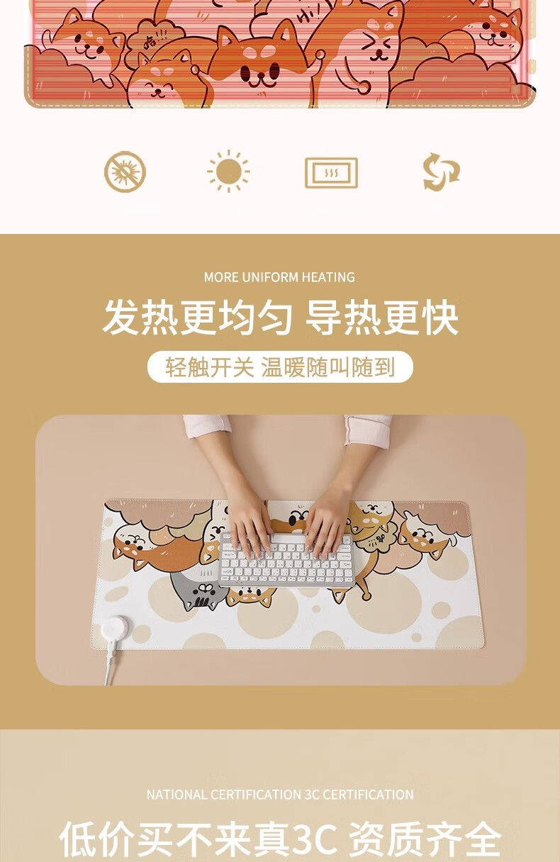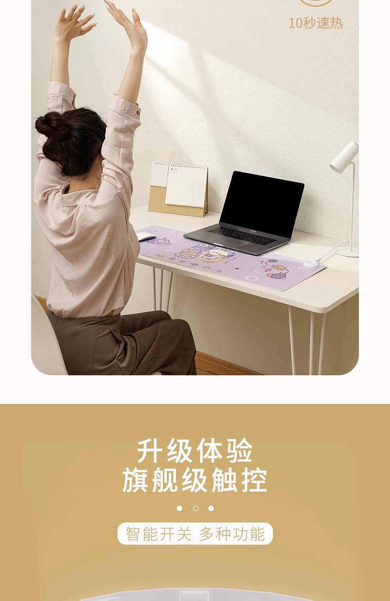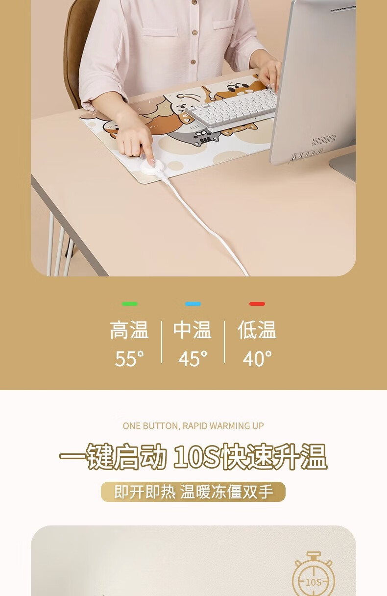 希维思(SIVASS)加热桌垫鼠标垫超大暖桌垫办公室电脑桌面学生写作业暖手发热暖垫 猫咪款【80*33cm】3档控温