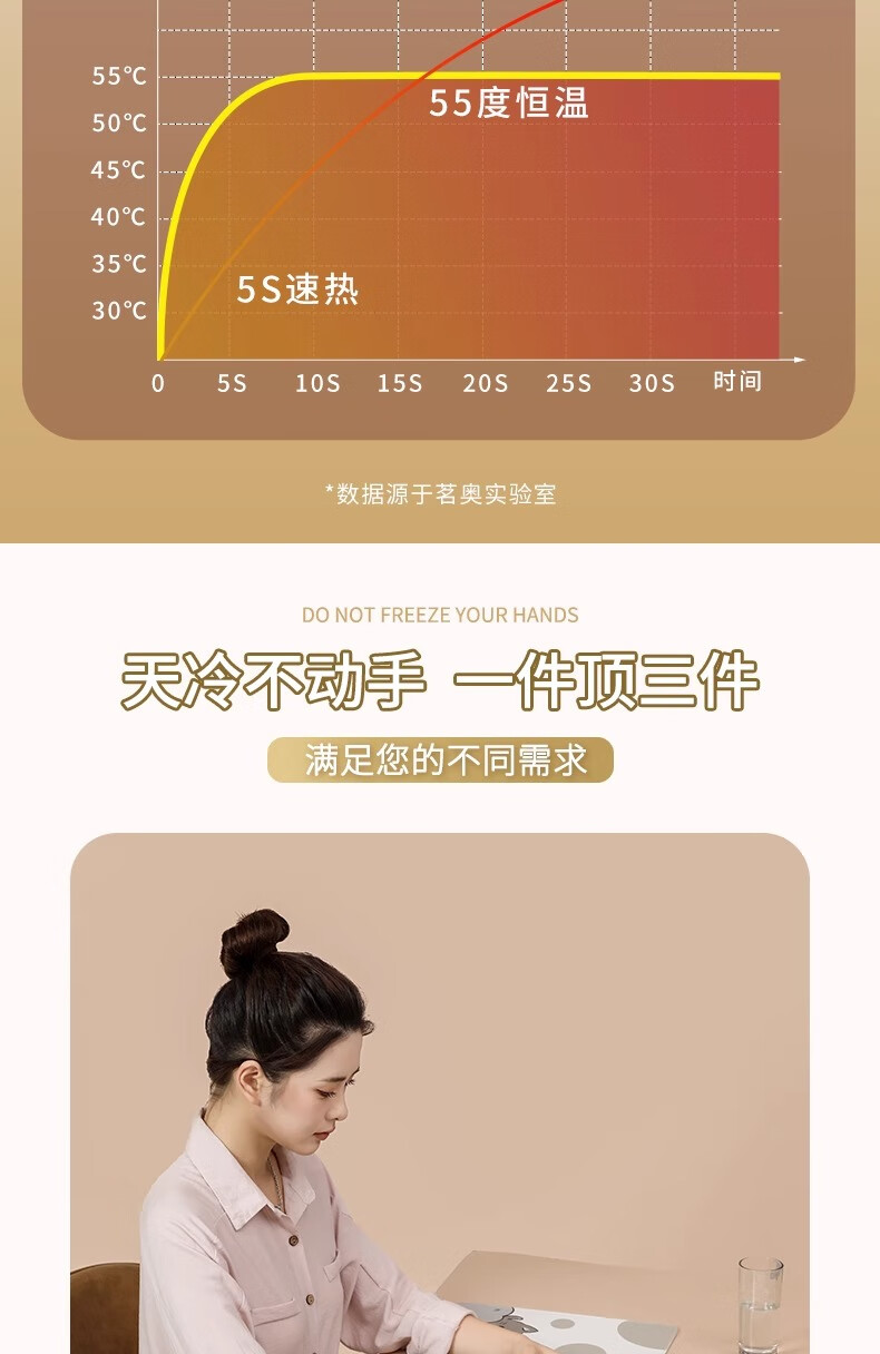 DEATKN德国高端暖手宝手握式自发热3c认证充电迷你小随身携带暖宝宝 法兰绒[浅黄色15000毫安]双面速