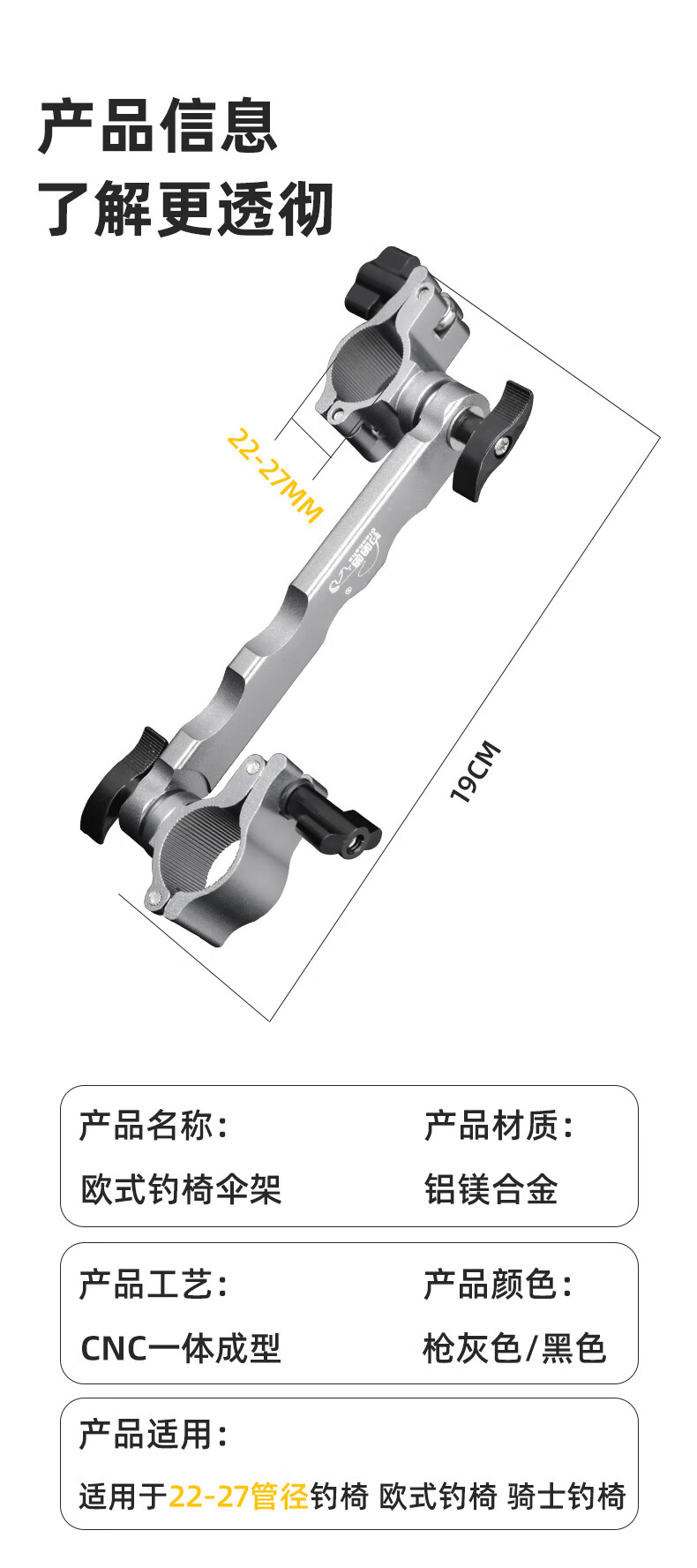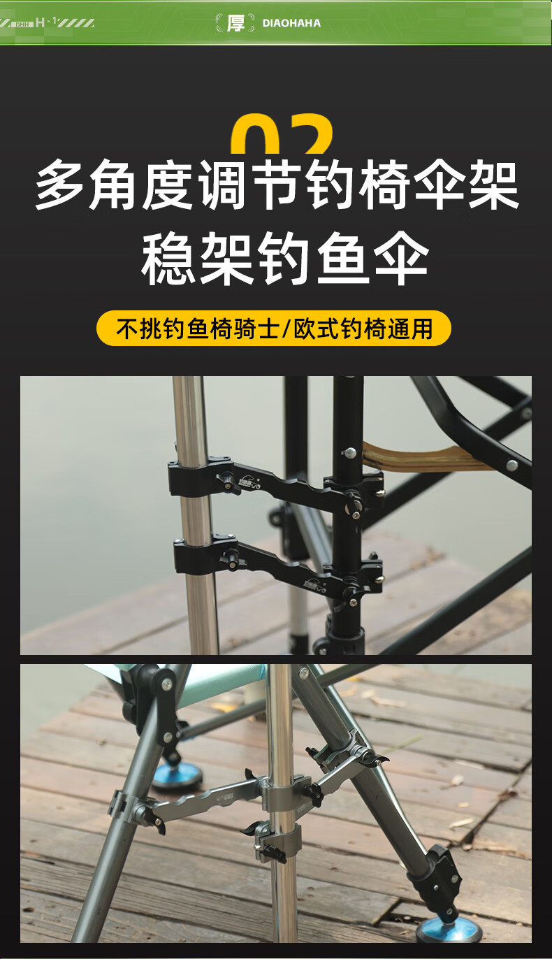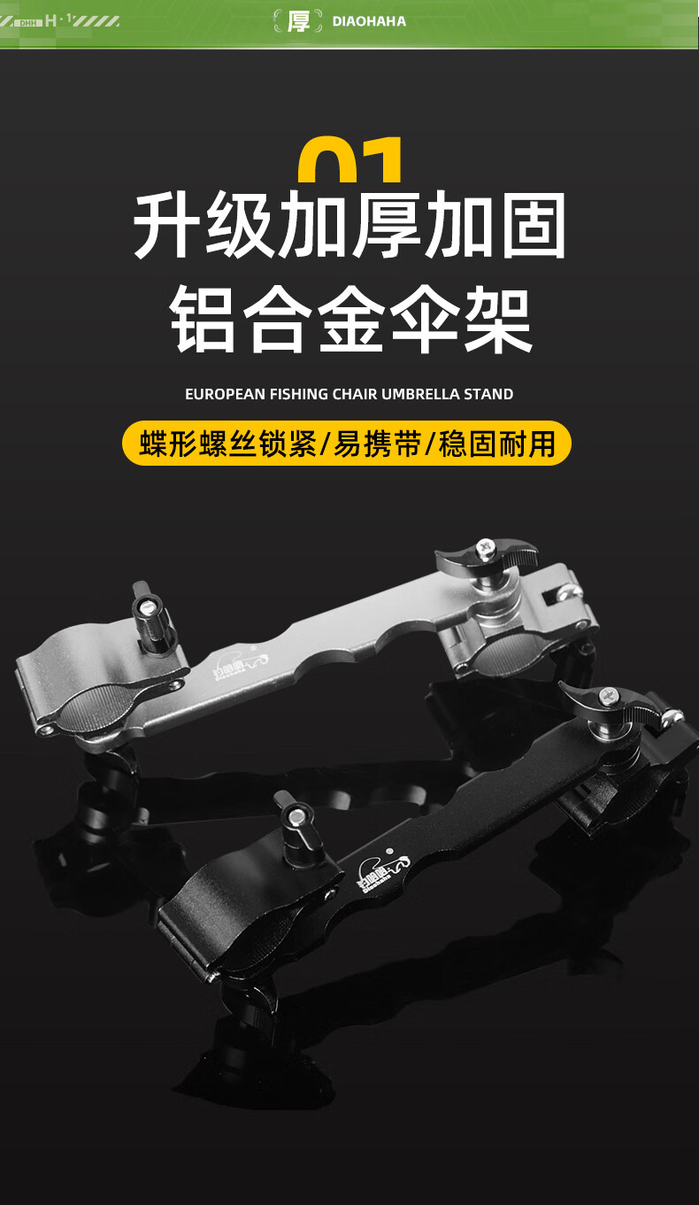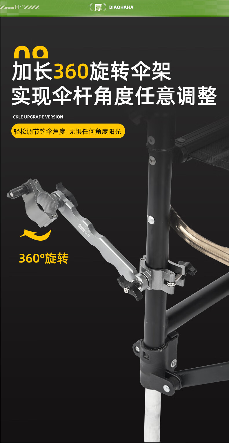 钓哈哈(Diaohaha)加厚铝合金伞架欧式钓椅伞架一体成型加长360旋转角度可任意调节 【加厚铝合金伞架】黑色一个(加垫片)