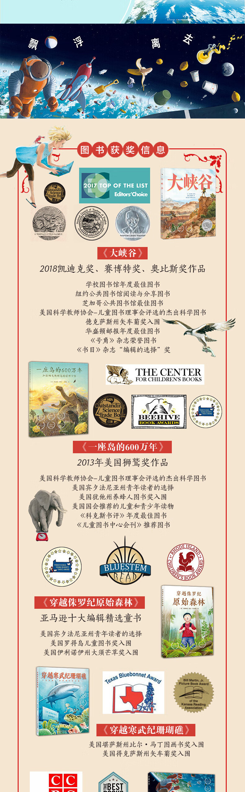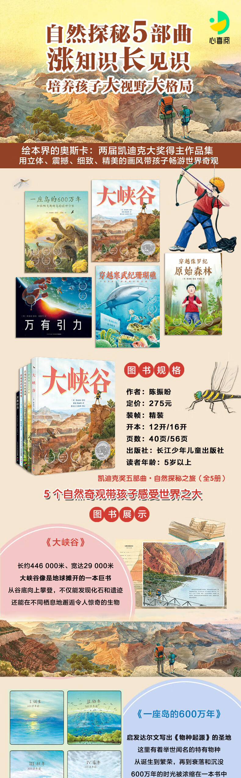 凯迪克奖五部曲自然探秘之旅全5册精装大奖科普绘本大峡谷一座岛的600万年万有引力