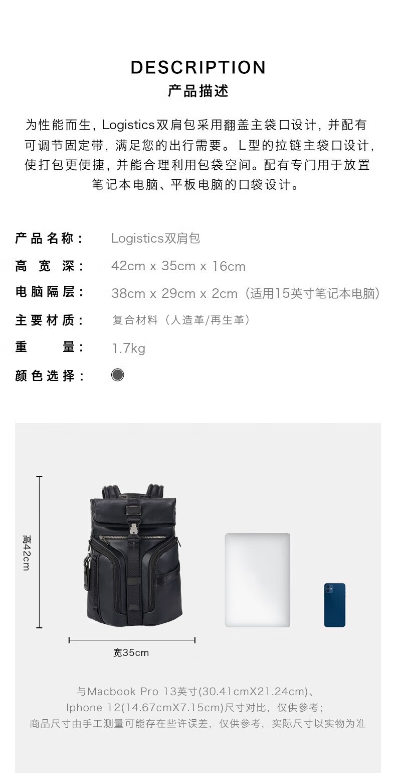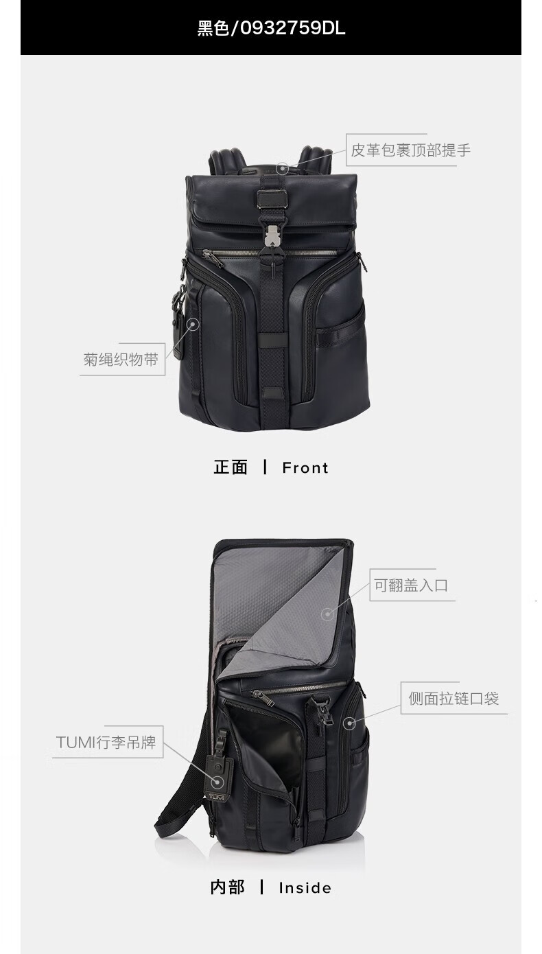 途明(TUMI)ALPHA BRAVO男士双肩包翻盖大容量电脑包黑色商务通勤