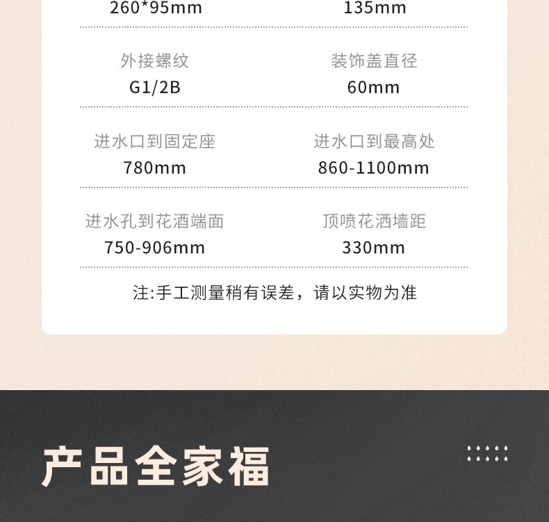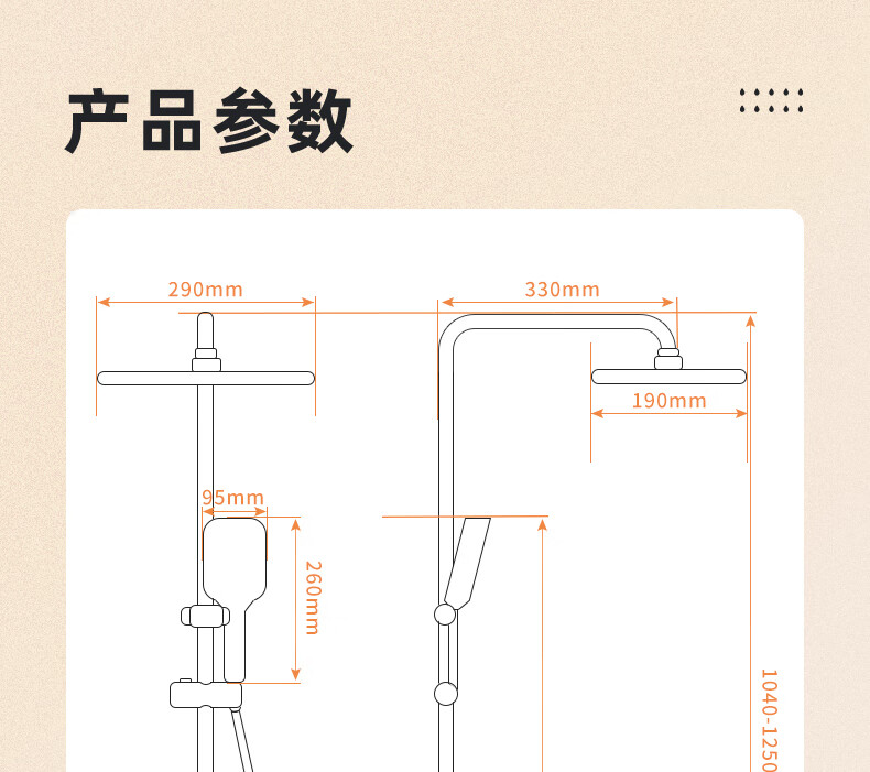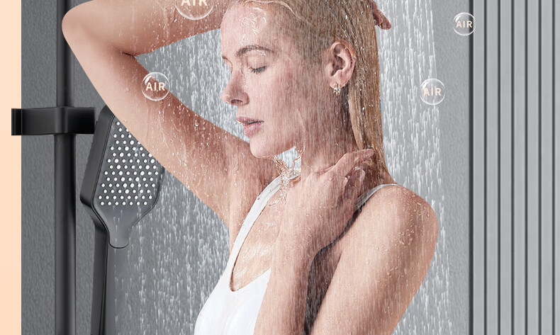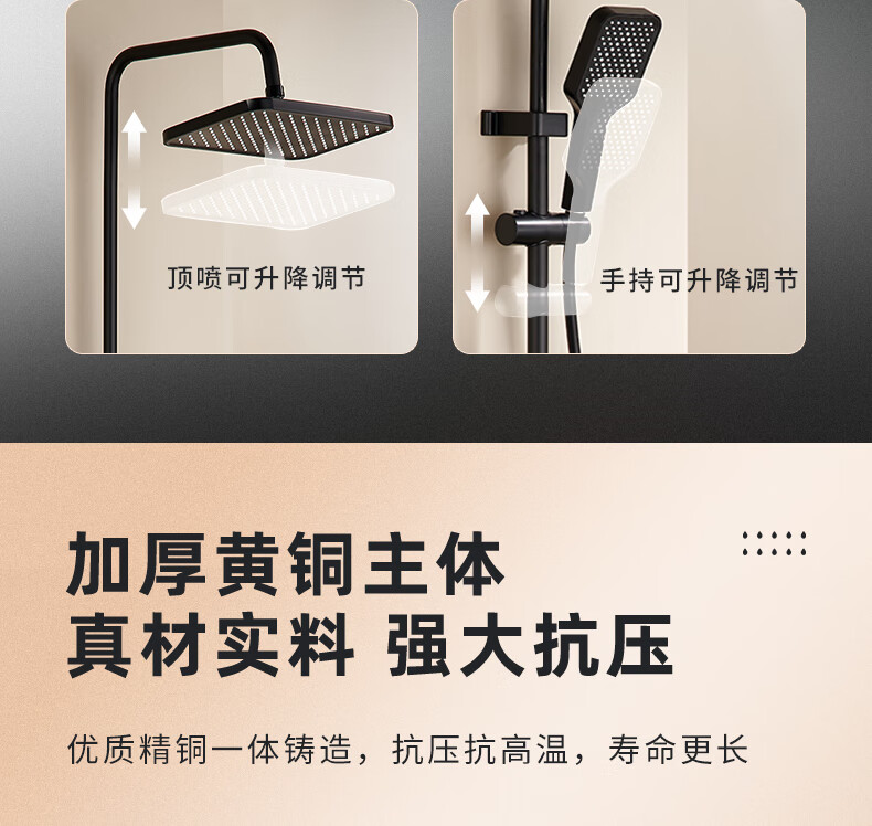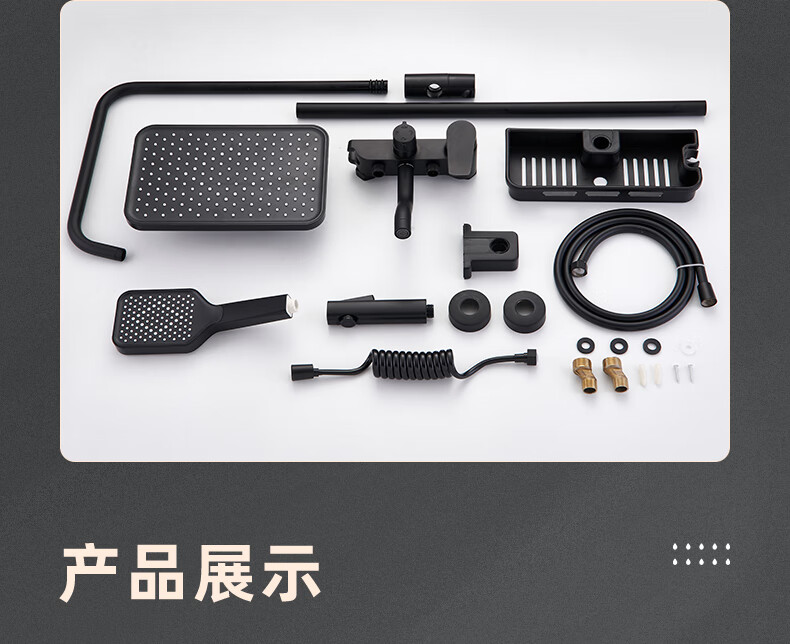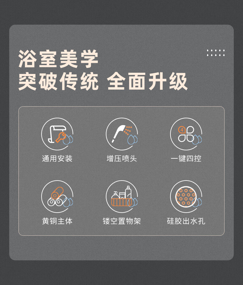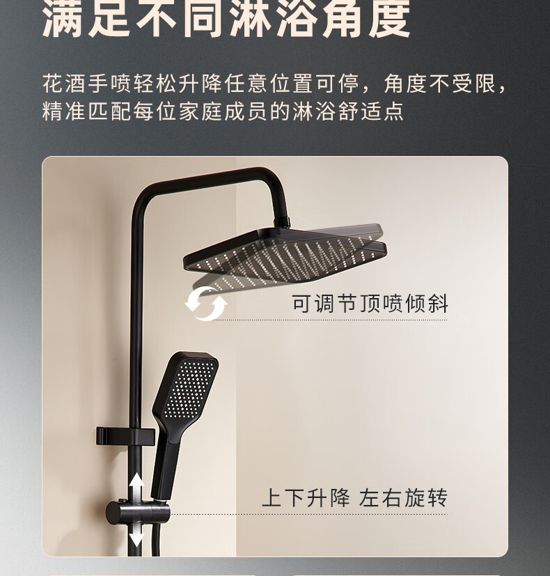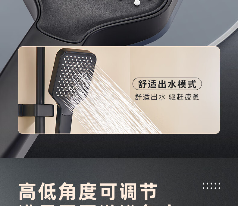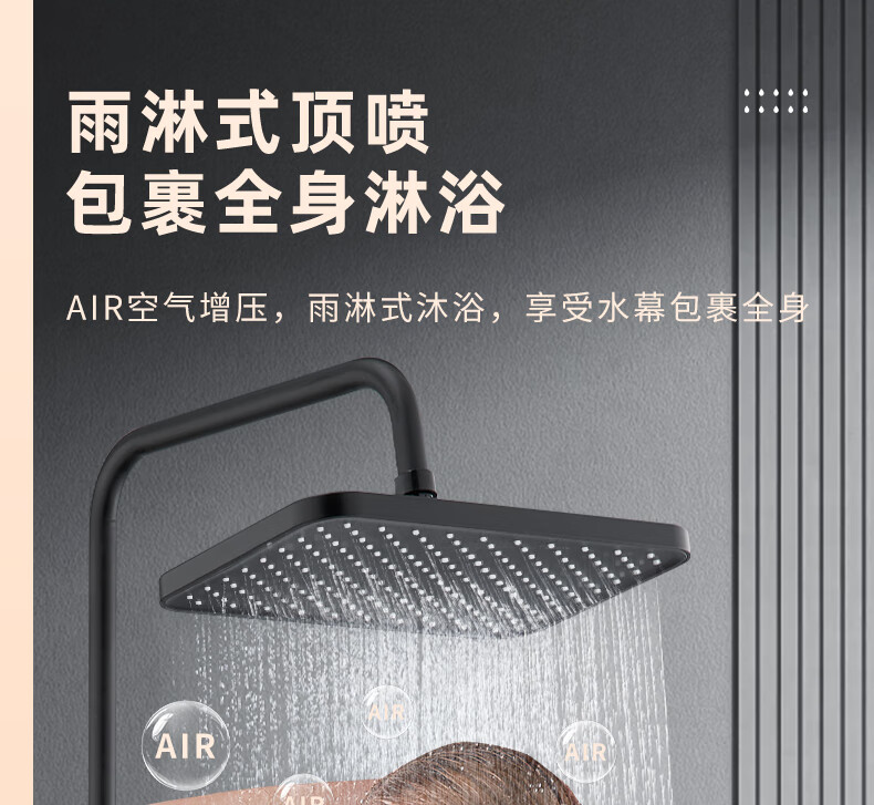 万和淋浴花洒套装数显花洒全套增压花洒枪灰淋浴器全铜方管贴墙7073Q
