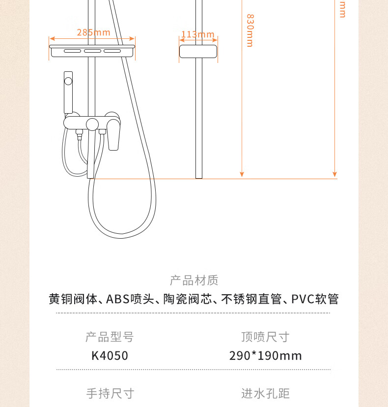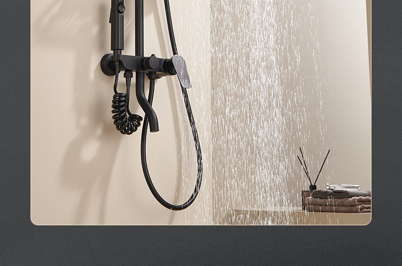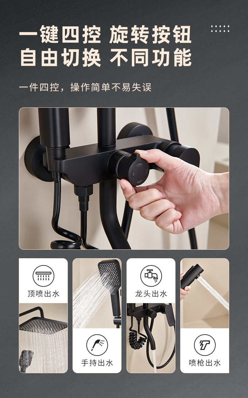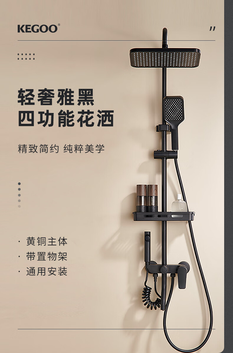 科固(KEGOO)淋浴花洒全套混水阀铜一整套 浴室增压洗澡喷头花洒套装黑色K4050