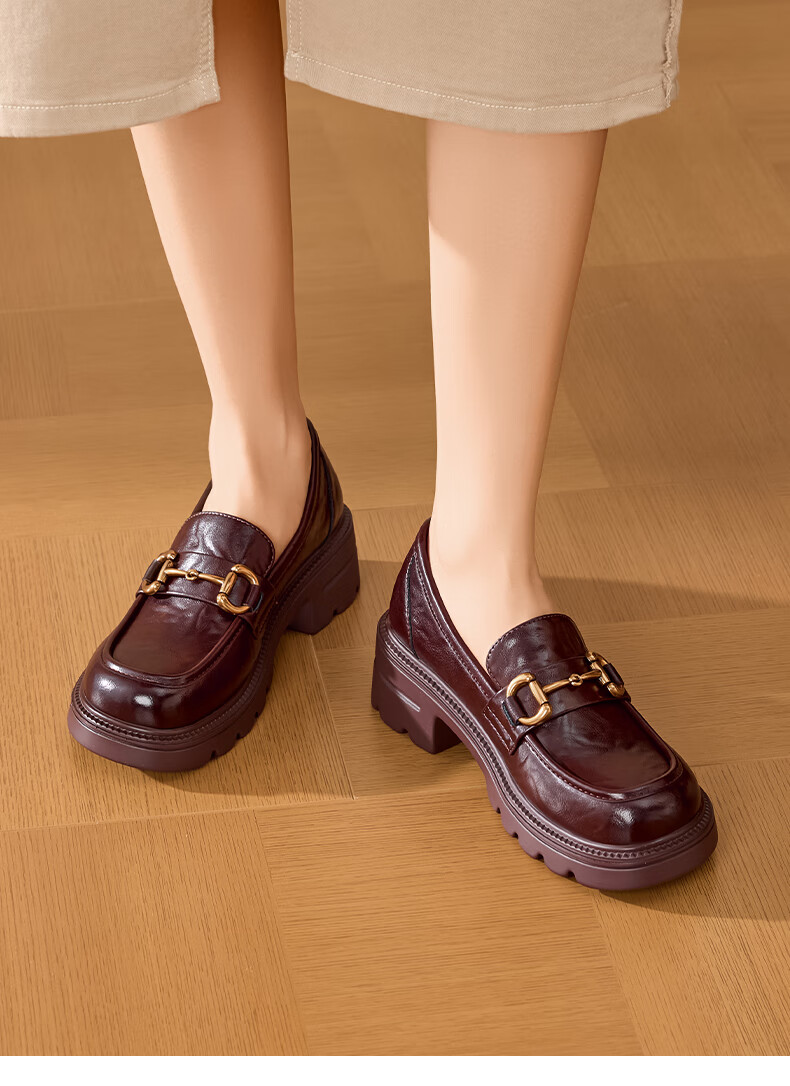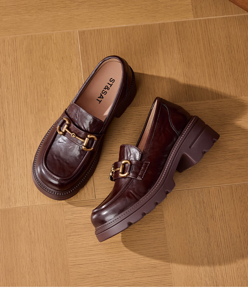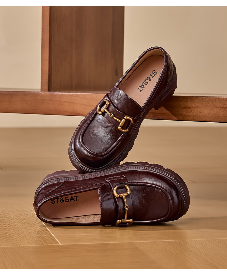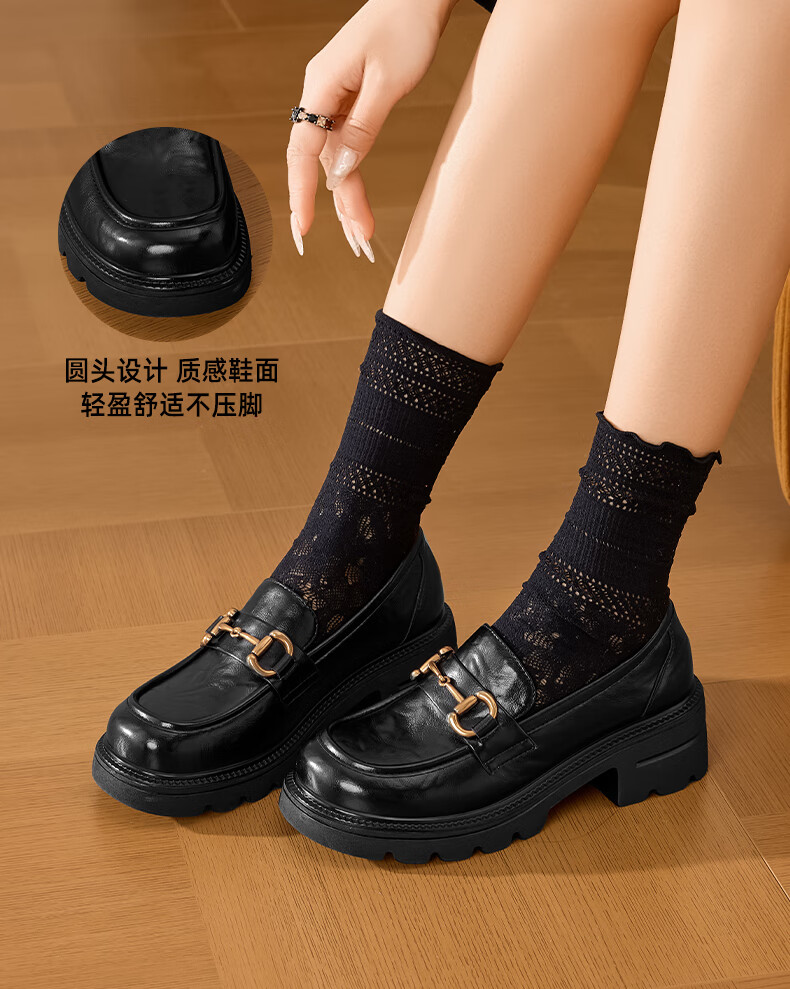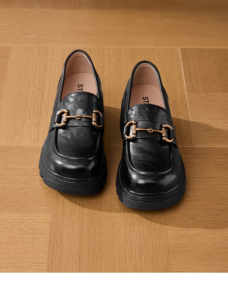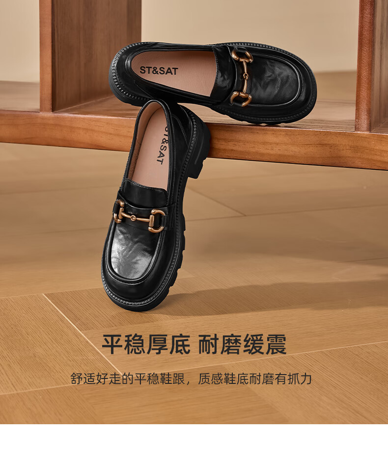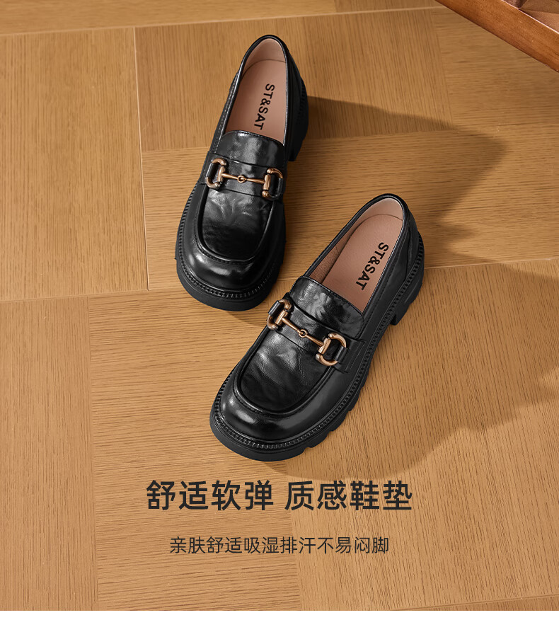 星期六女鞋乐福鞋2025年新款秋季厚底女士百搭皮鞋SSD1111C2R 黑色 36