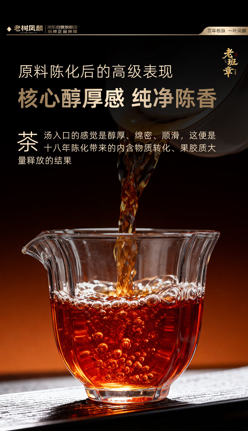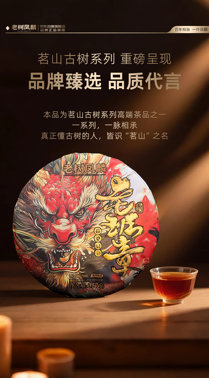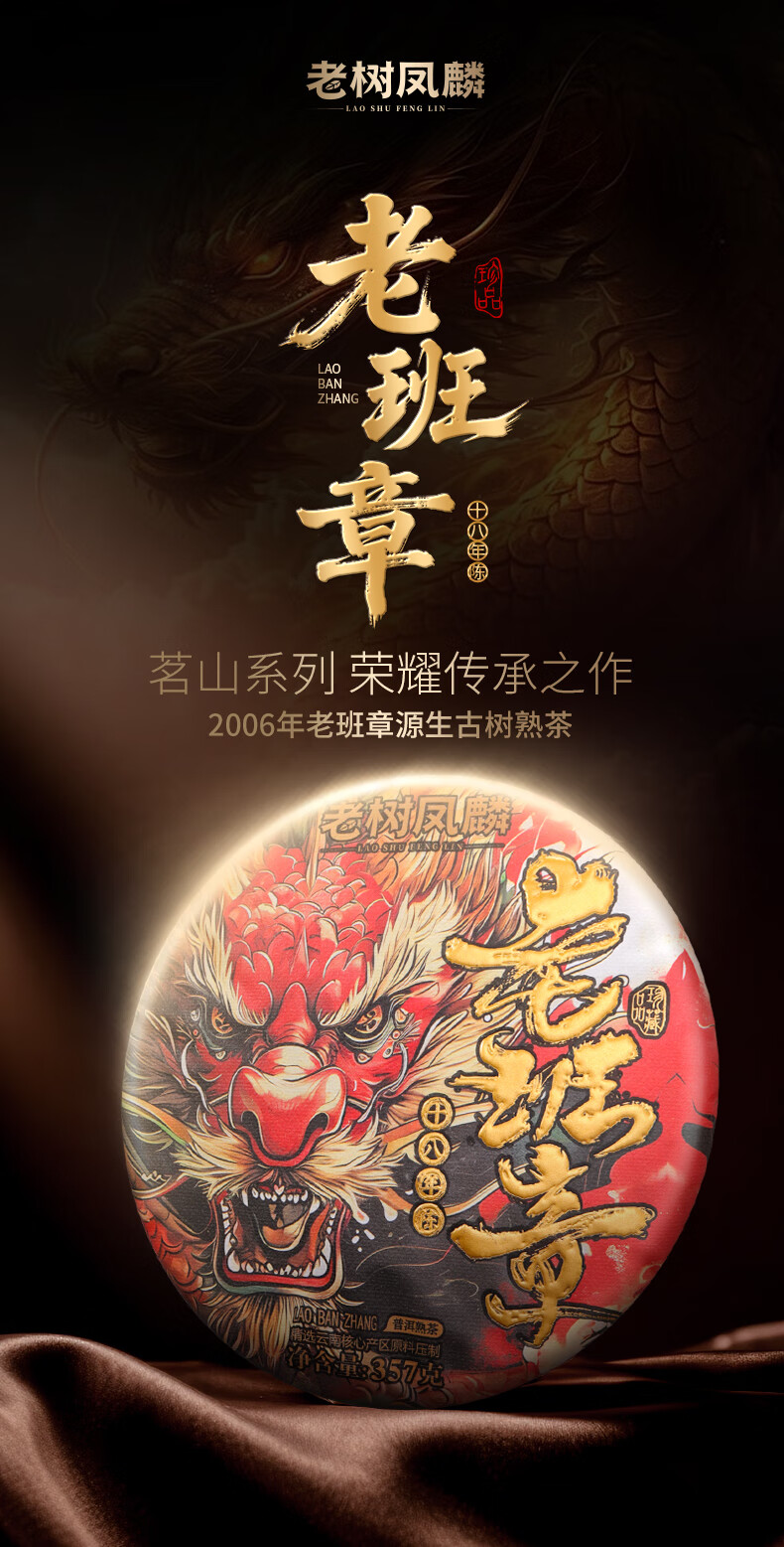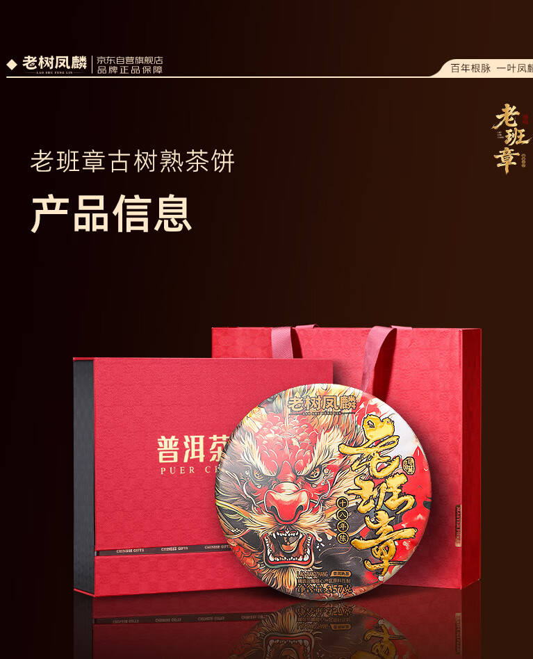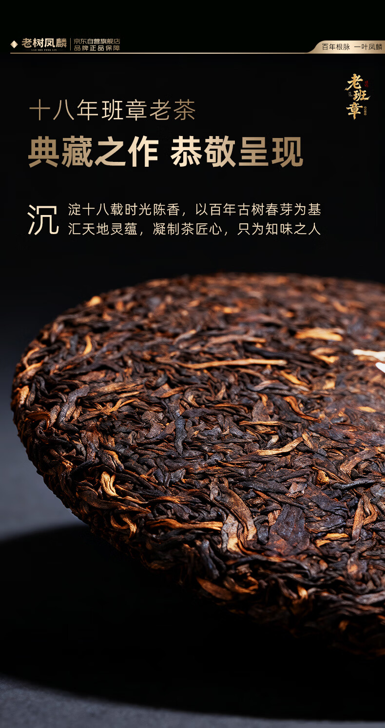 老树凤麟茶叶普洱茶熟茶 十八年陈老班章古树熟茶云南熟普洱七子饼礼盒装