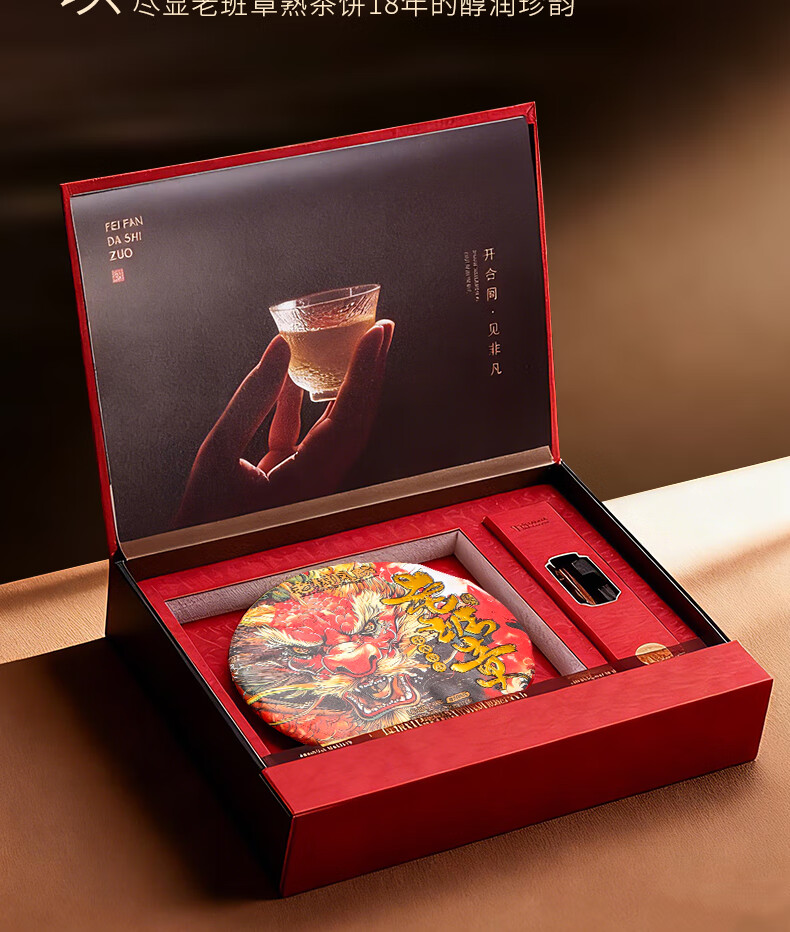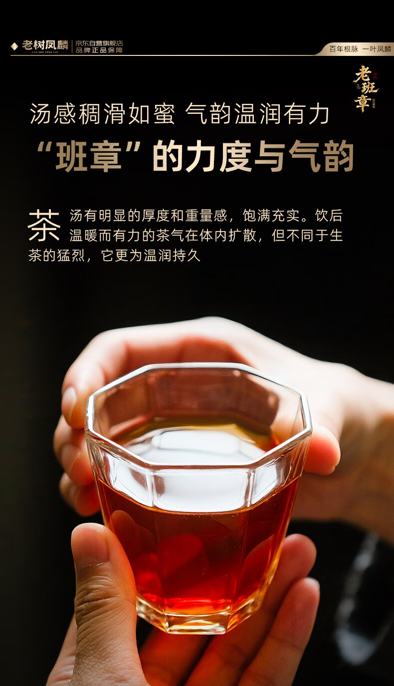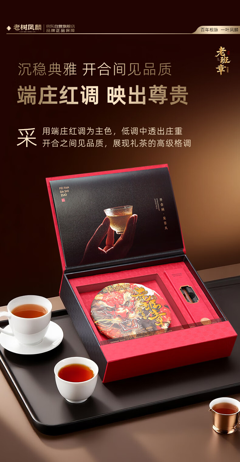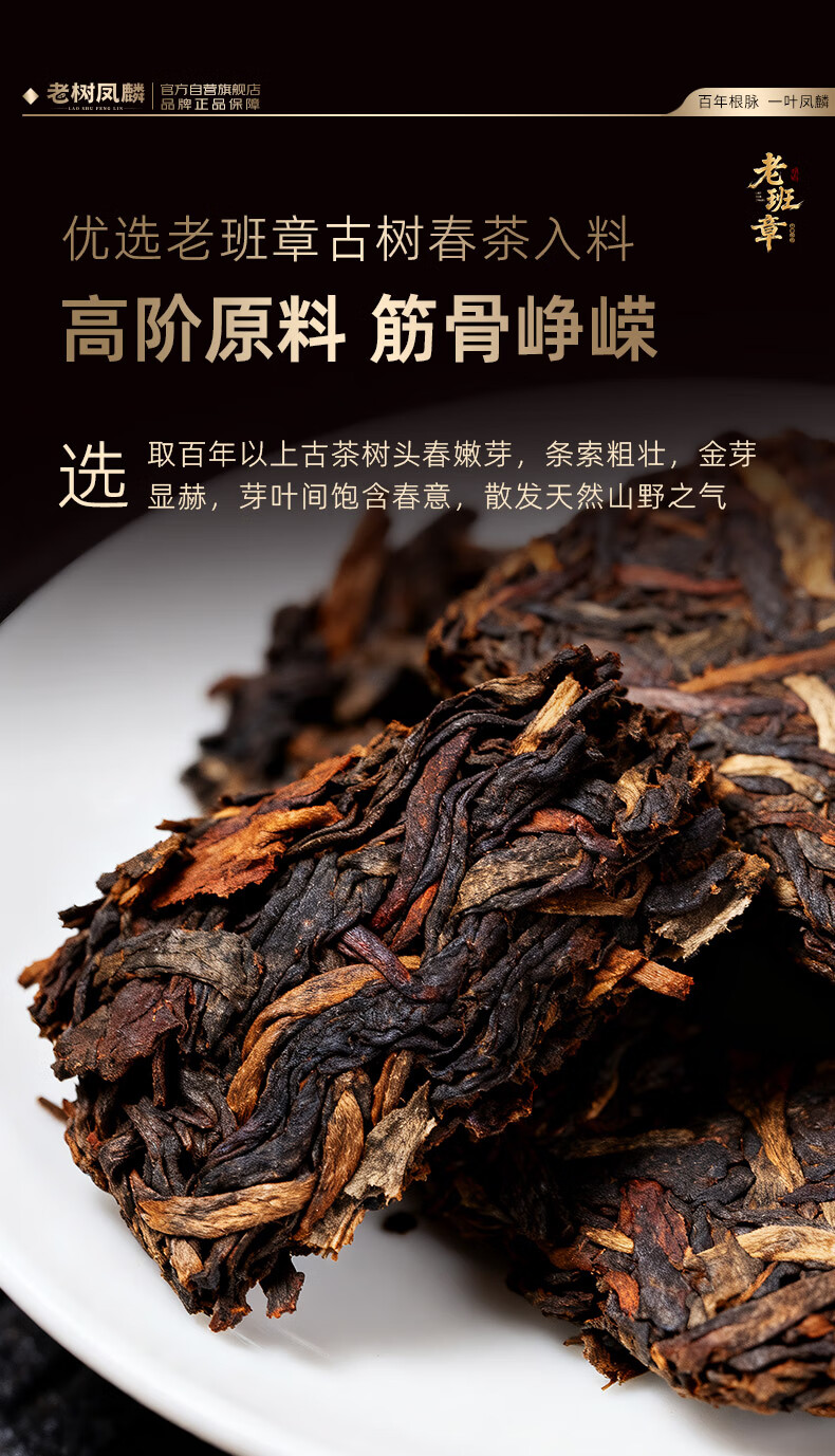 老树凤麟茶叶普洱茶熟茶 十八年陈老班章古树熟茶云南熟普洱七子饼礼盒装
