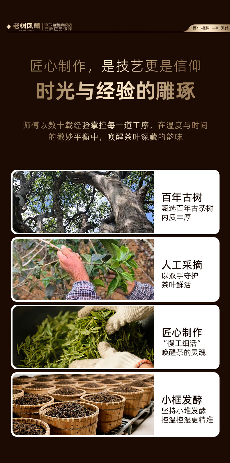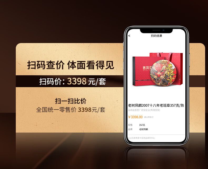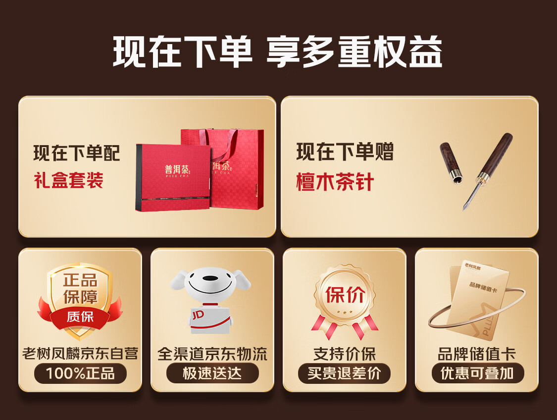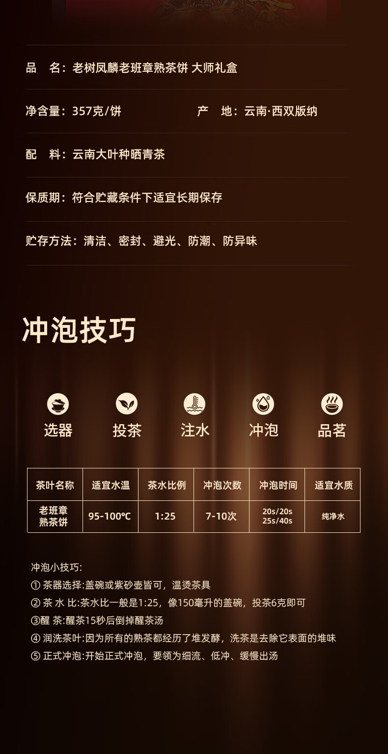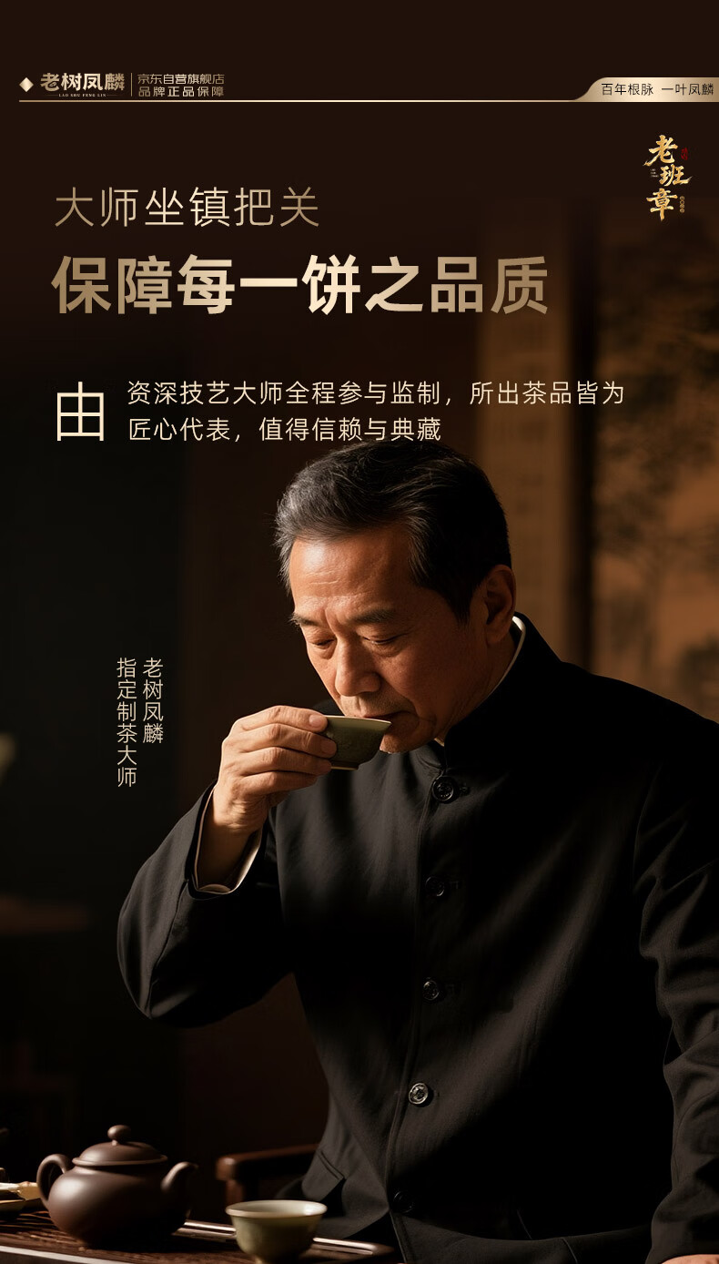 老树凤麟茶叶普洱茶熟茶 十八年陈老班章古树熟茶云南熟普洱七子饼礼盒装