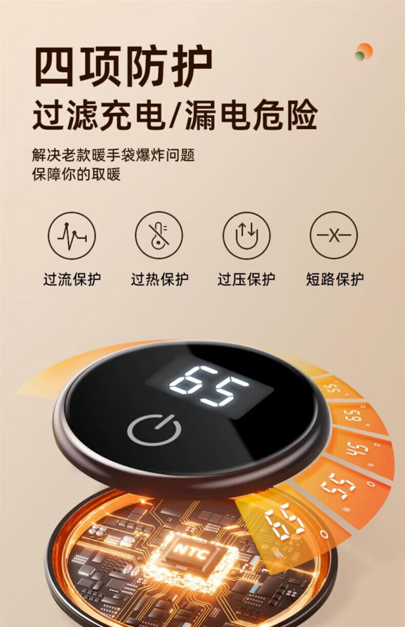 DEATKN德国高端暖手宝手握式自发热3c认证充电迷你小随身携带暖宝宝 法兰绒[浅黄色15000毫安]双面速