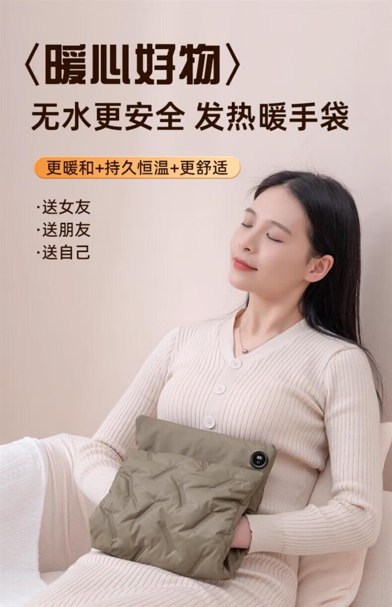 DEATKN德国2025新款电热水袋石墨烯充电式无水防爆热敷肚子 [军绿色]