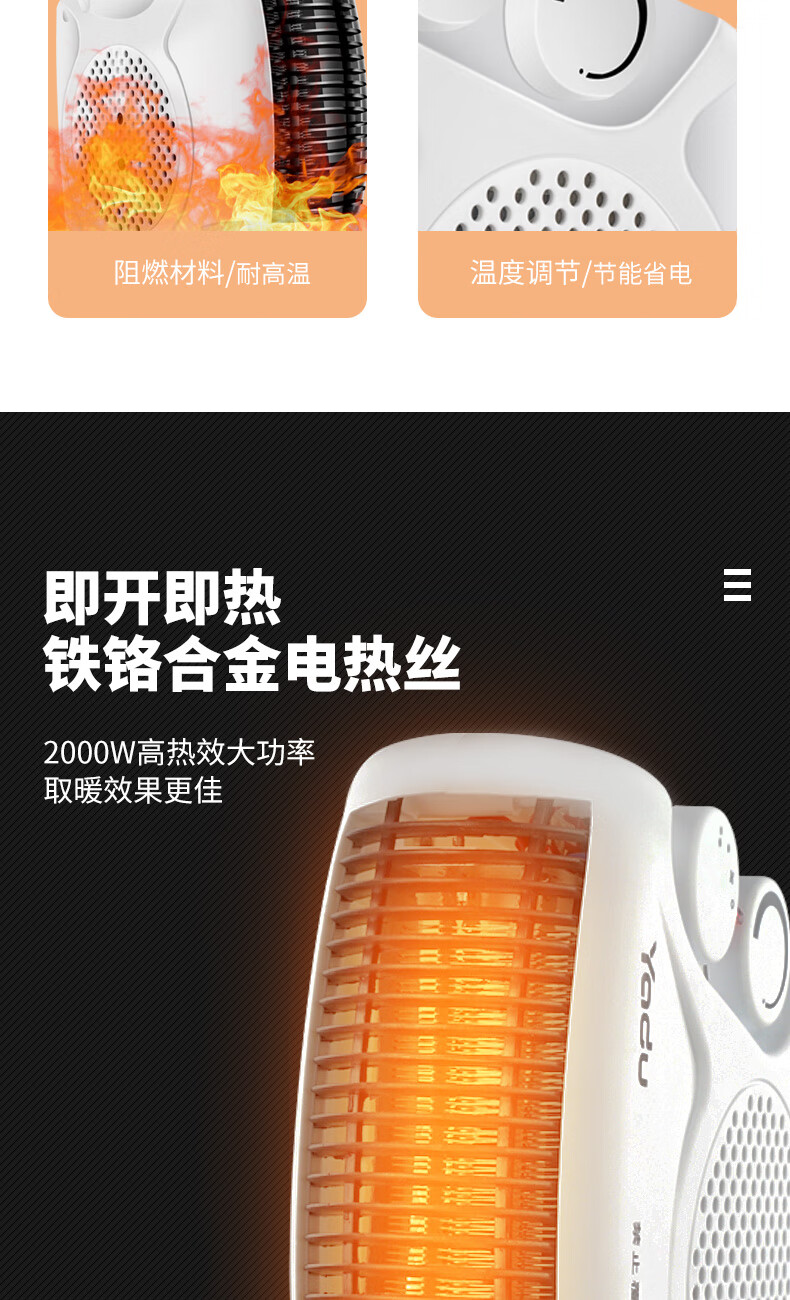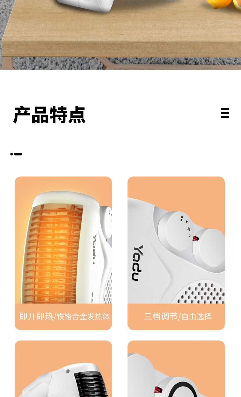 亚都(YADU)取暖器/暖风机/电暖器/电暖气/台式暖风机 /家用立卧两用速热电暖炉 经典台式(立卧两用单温控)