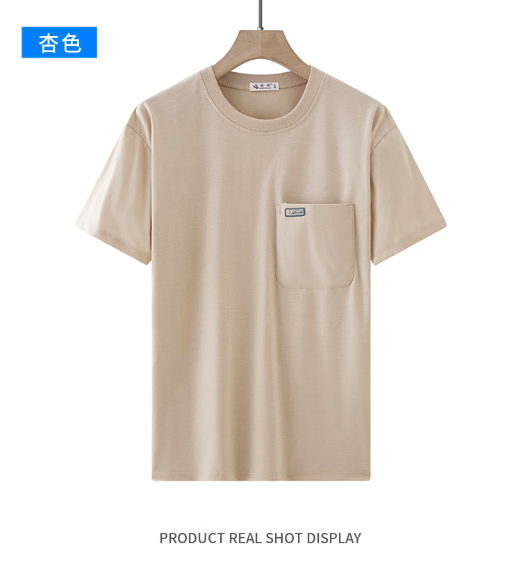 纯棉中老年短袖t恤男中年爸爸夏季汗衫50到70岁休闲宽松半袖上衣 咖啡色+卡其绿 108口袋 L 建议120-135斤