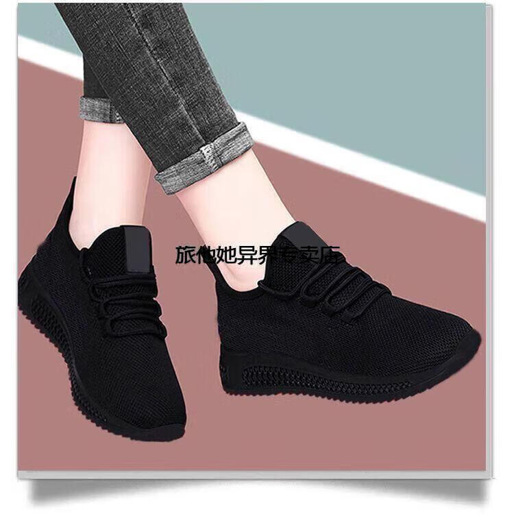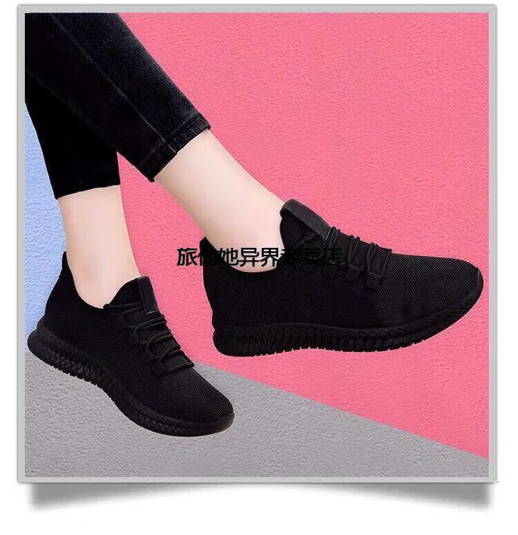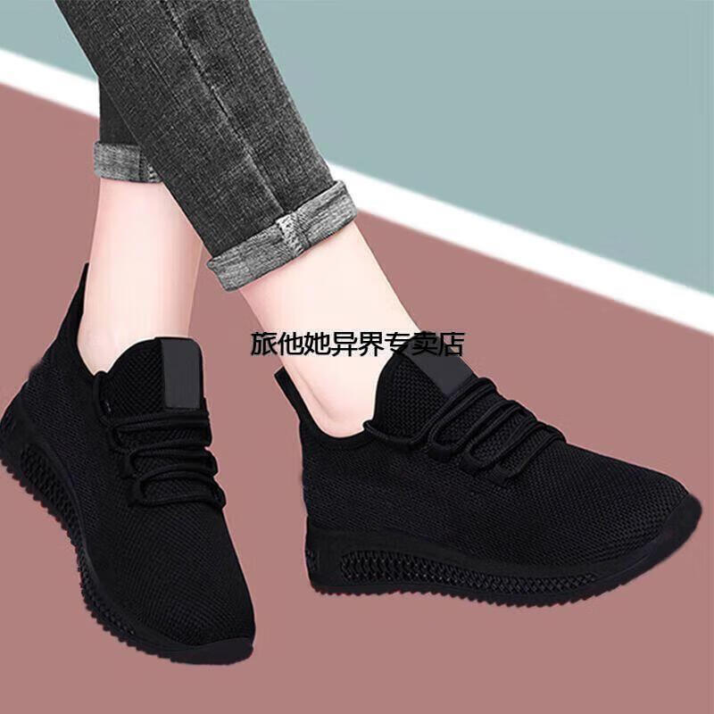 LVTATA厨房上班工作鞋黑色单鞋透气防滑软底老北京布鞋女妈妈休闲鞋网鞋 全黑色 37