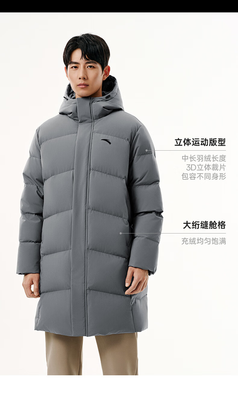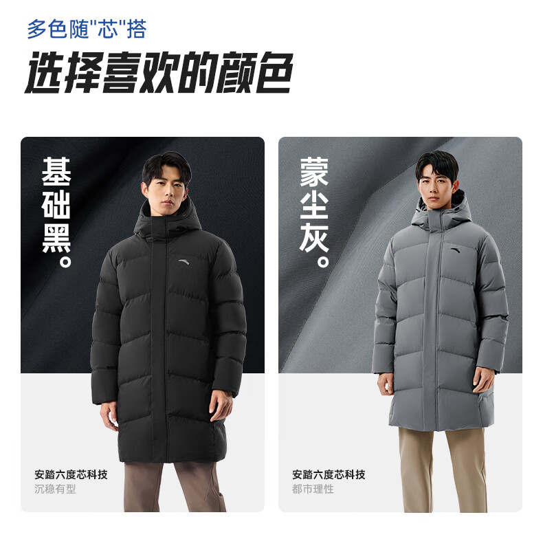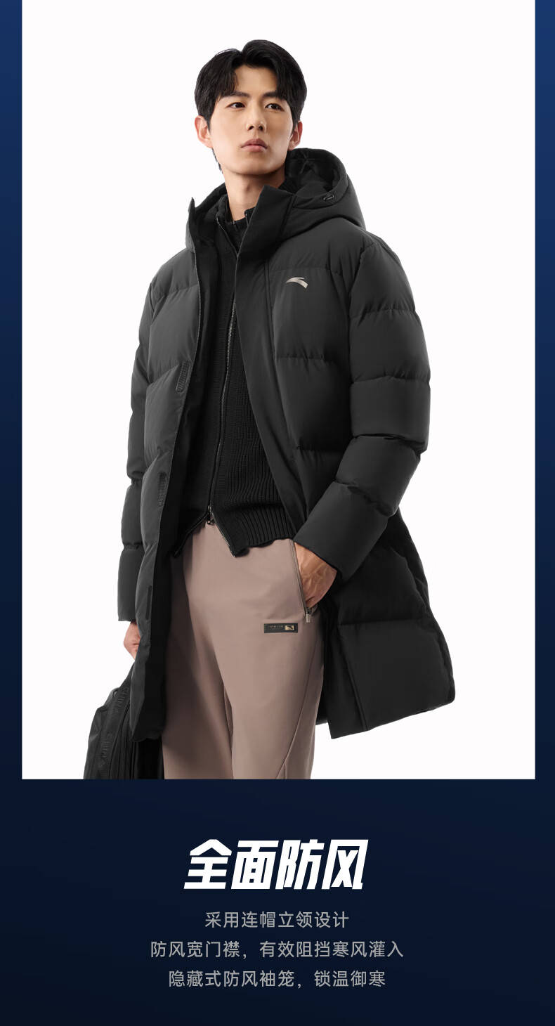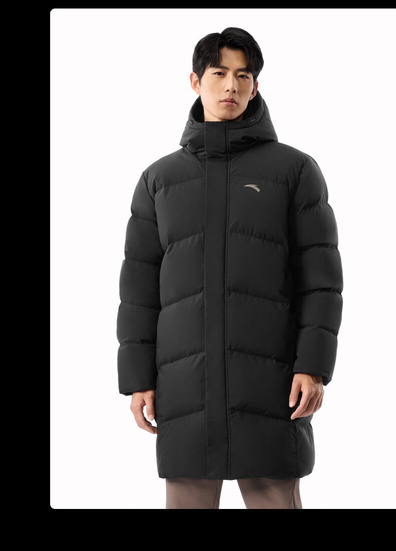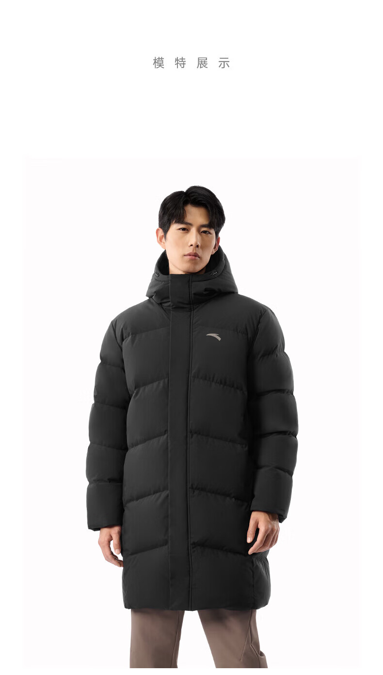 安踏速暖羽绒服丨中长款运动羽绒服男装2025冬季新款鸭绒棉服外套 基础黑-3 L (男175)