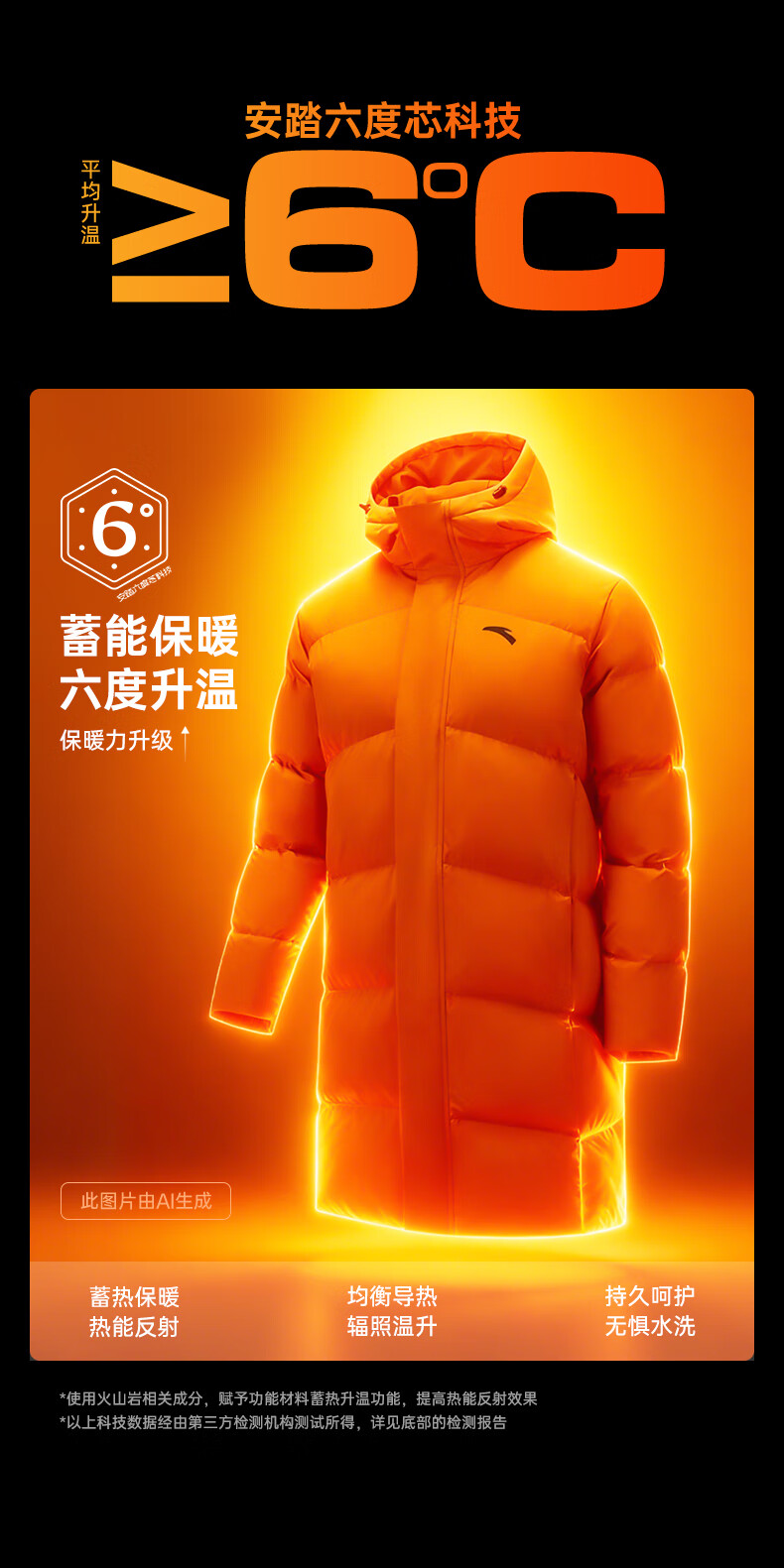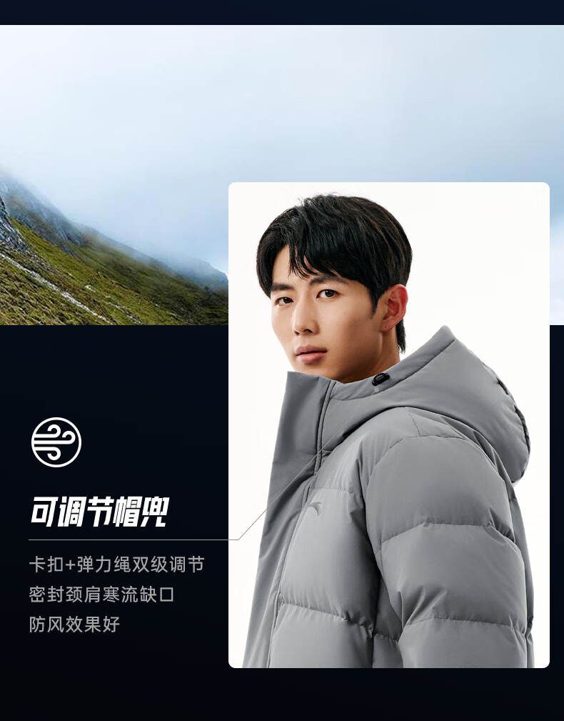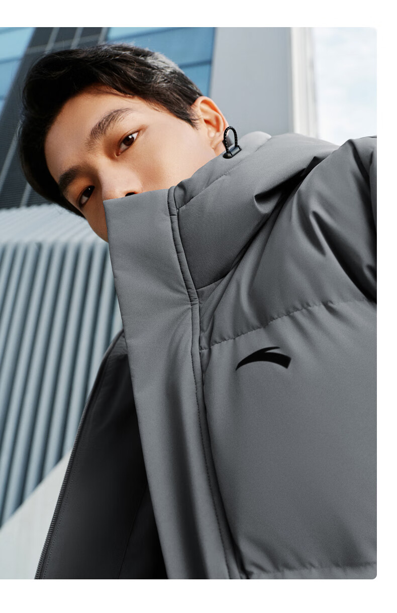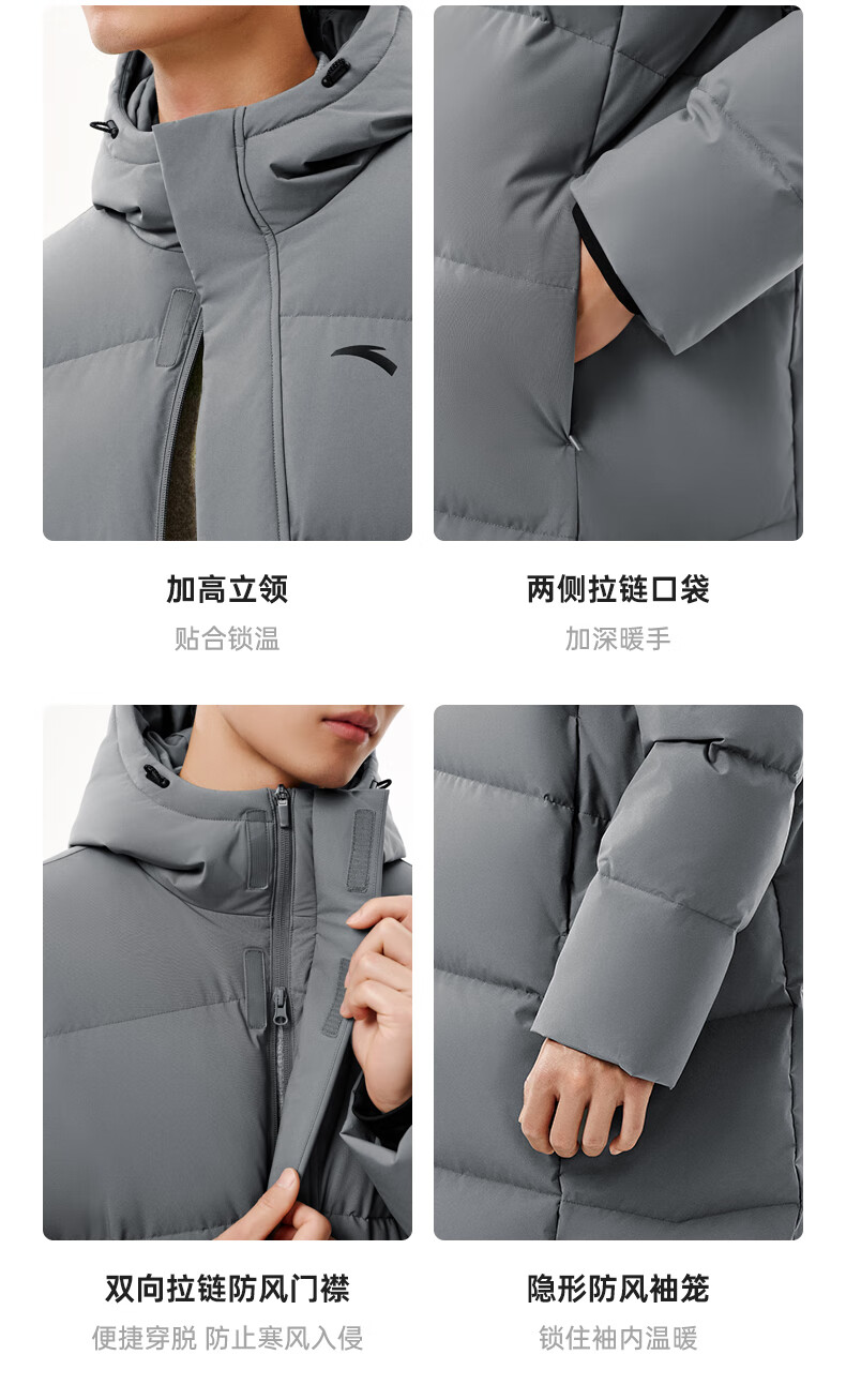 安踏速暖羽绒服丨中长款运动羽绒服男装2025冬季新款鸭绒棉服外套 基础黑-3 L (男175)