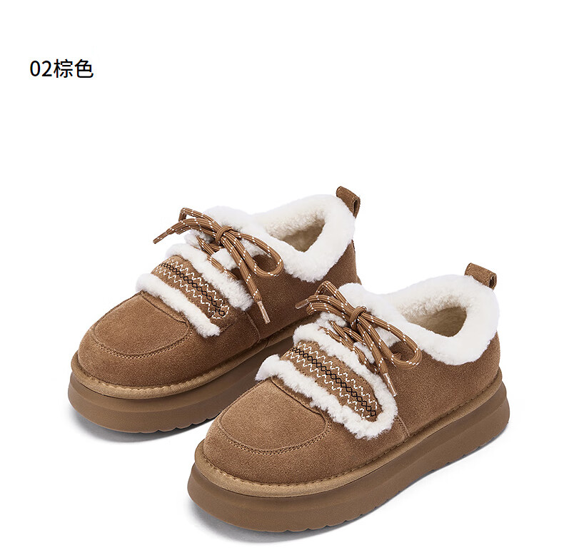 热风(Hotwind)【商场同款】厚底雪地靴女2025年冬季新款增高加绒毛毛鞋复古女鞋 02棕色 36