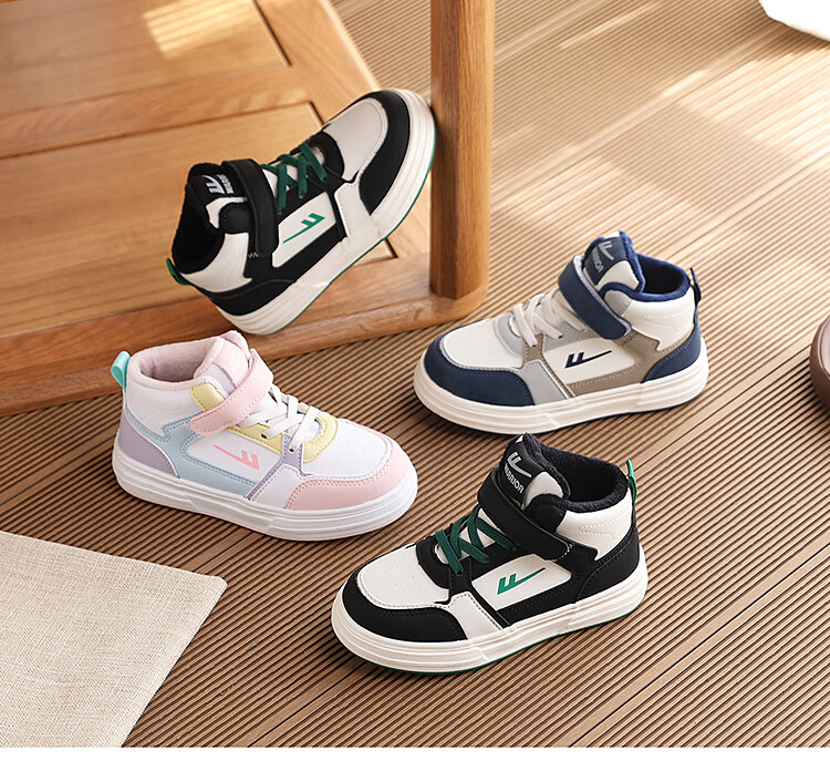 回力儿童棉鞋秋冬加绒板鞋男女童运动鞋雪地靴 WZ(TH)-2089白粉浅蓝35