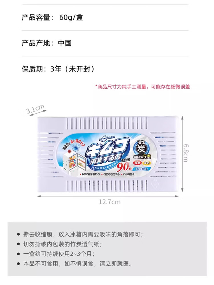 拥彩冰箱除味剂活性炭除臭杀菌消毒去异味家用神器冷藏室防霉除腐肉盒