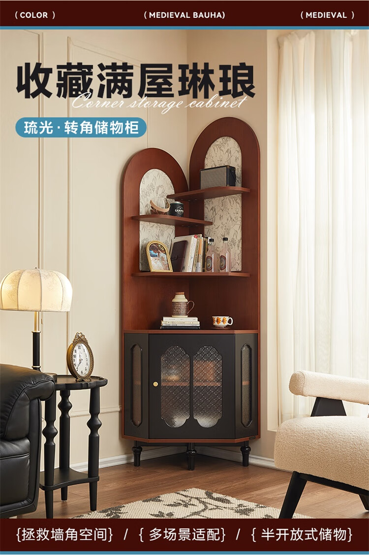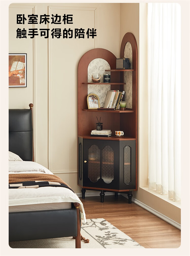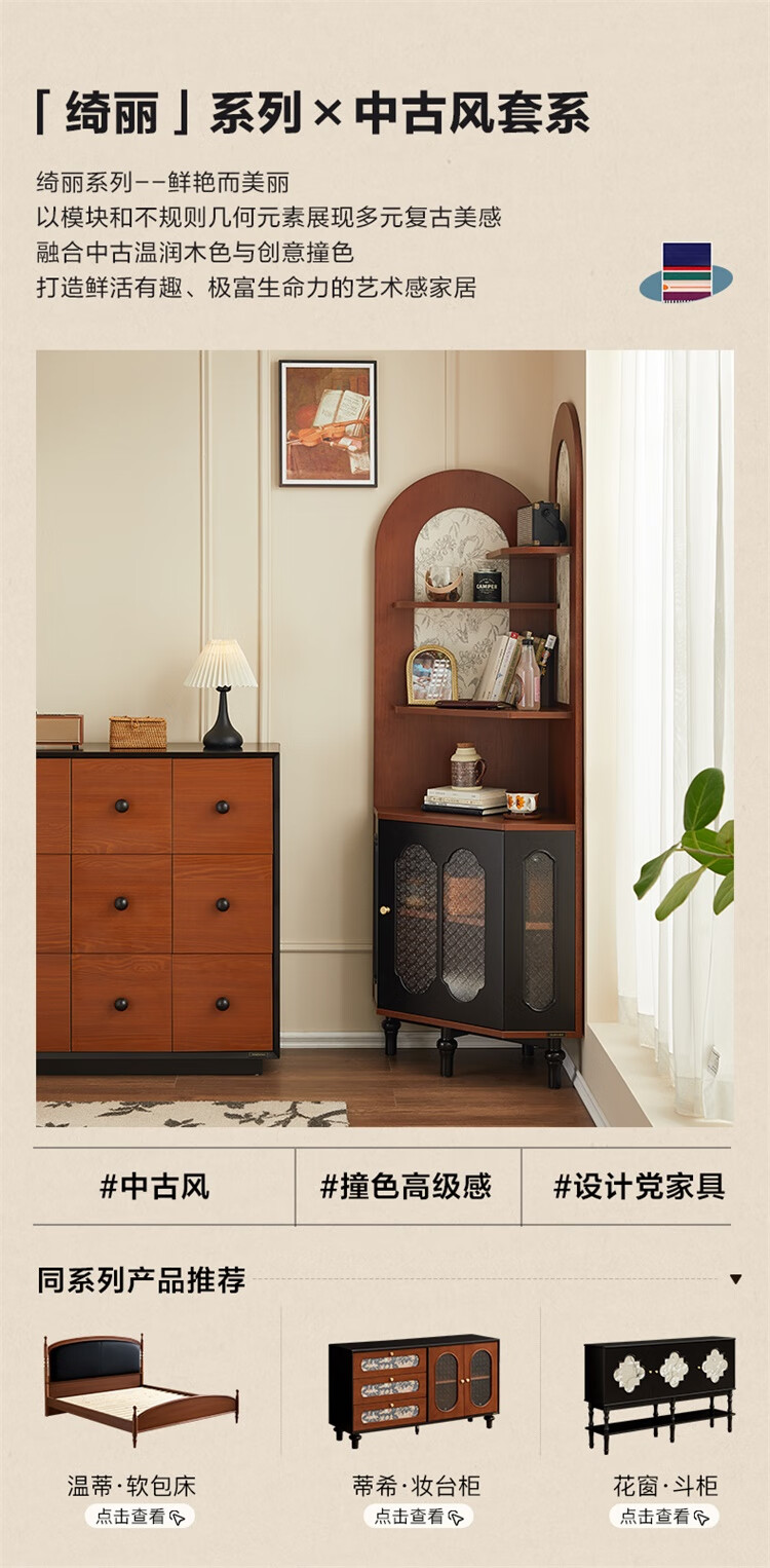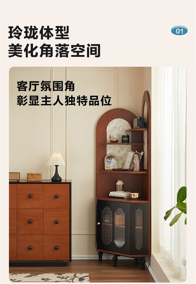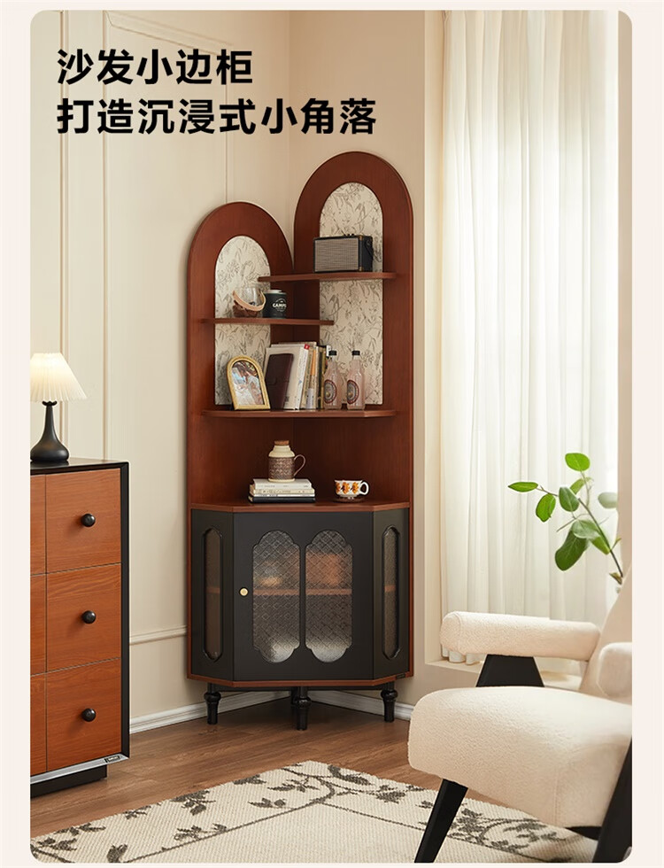 全友家居中式复古风转角柜置物架边柜角落展示架储物收纳柜子家具 【黑茶色+木色】转角柜
