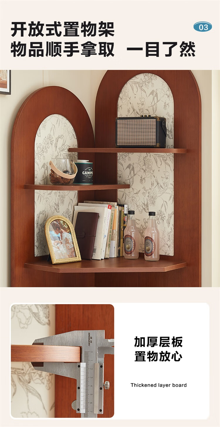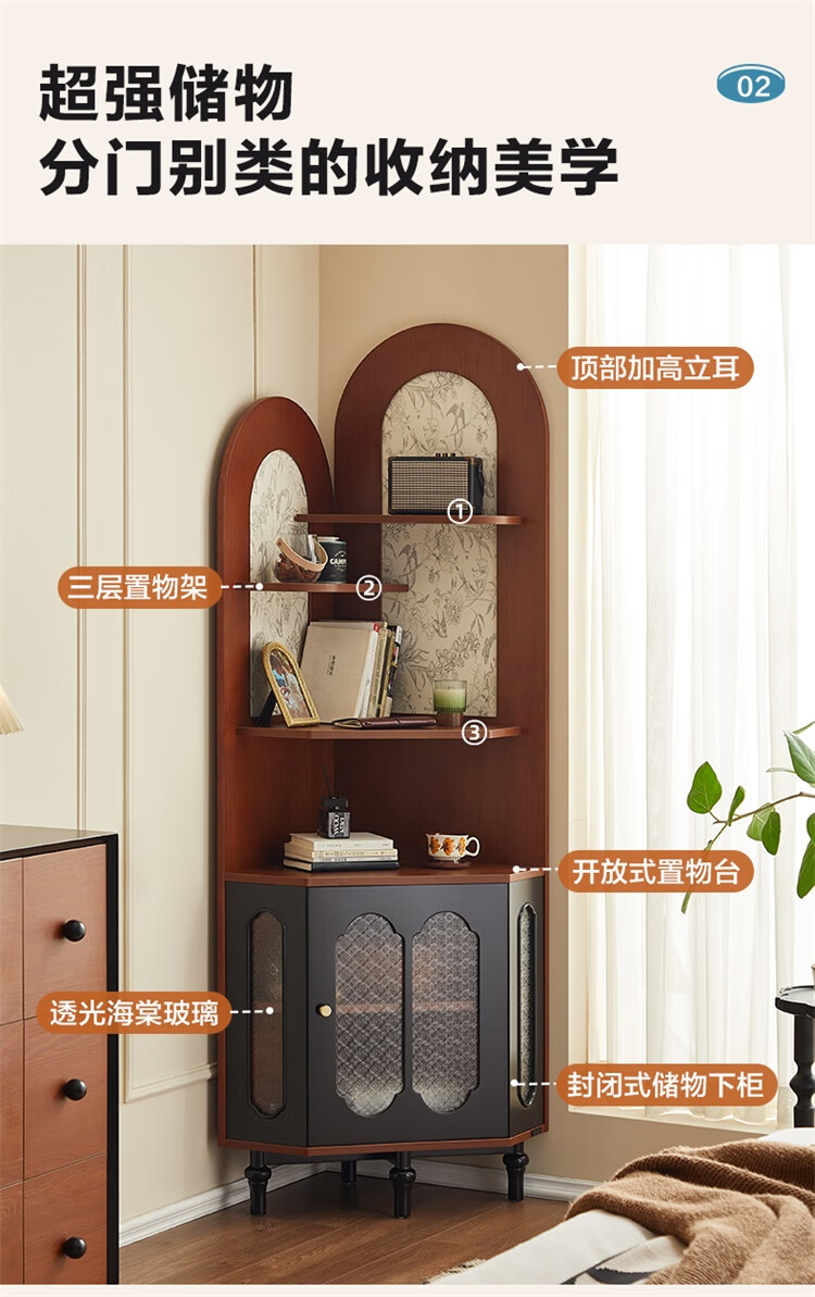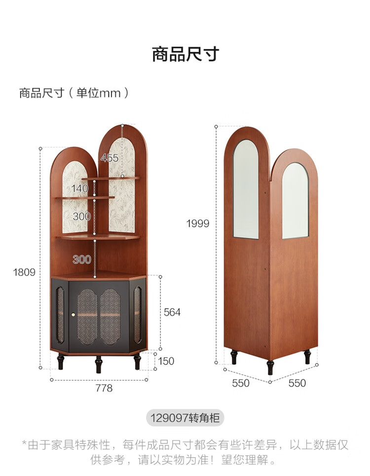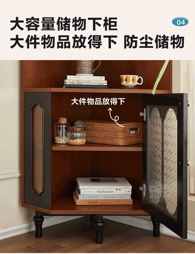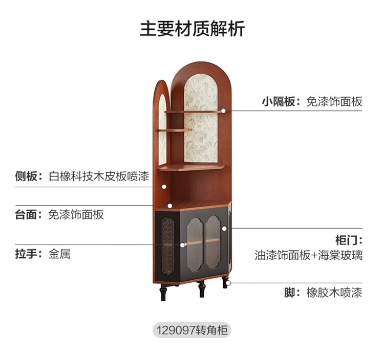 全友家居中式复古风转角柜置物架边柜角落展示架储物收纳柜子家具 【黑茶色+木色】转角柜