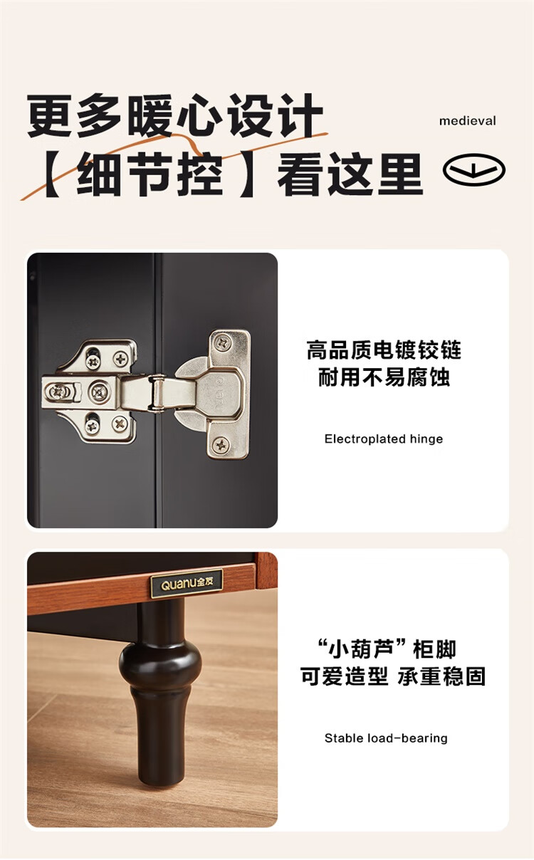 全友家居中古风斗柜收纳储物柜床尾柜自由组合柜体梳妆台边柜家具KD 【黑茶色】储物柜*1