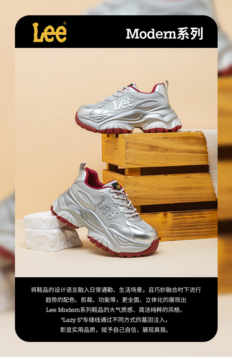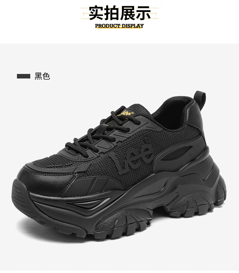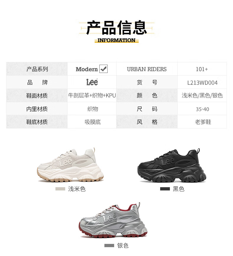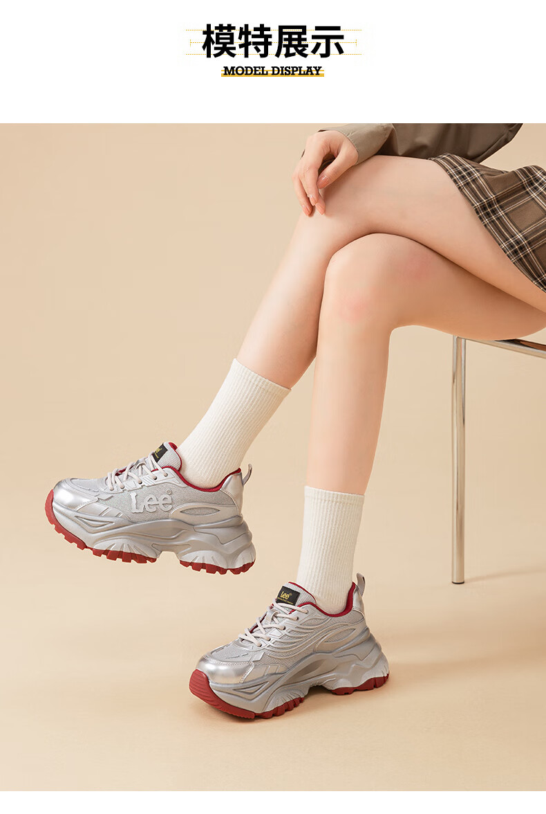 Lee女鞋新款潮流休闲鞋女小个子增高老爹鞋百搭运动鞋时尚舒适鞋子女 米色 37