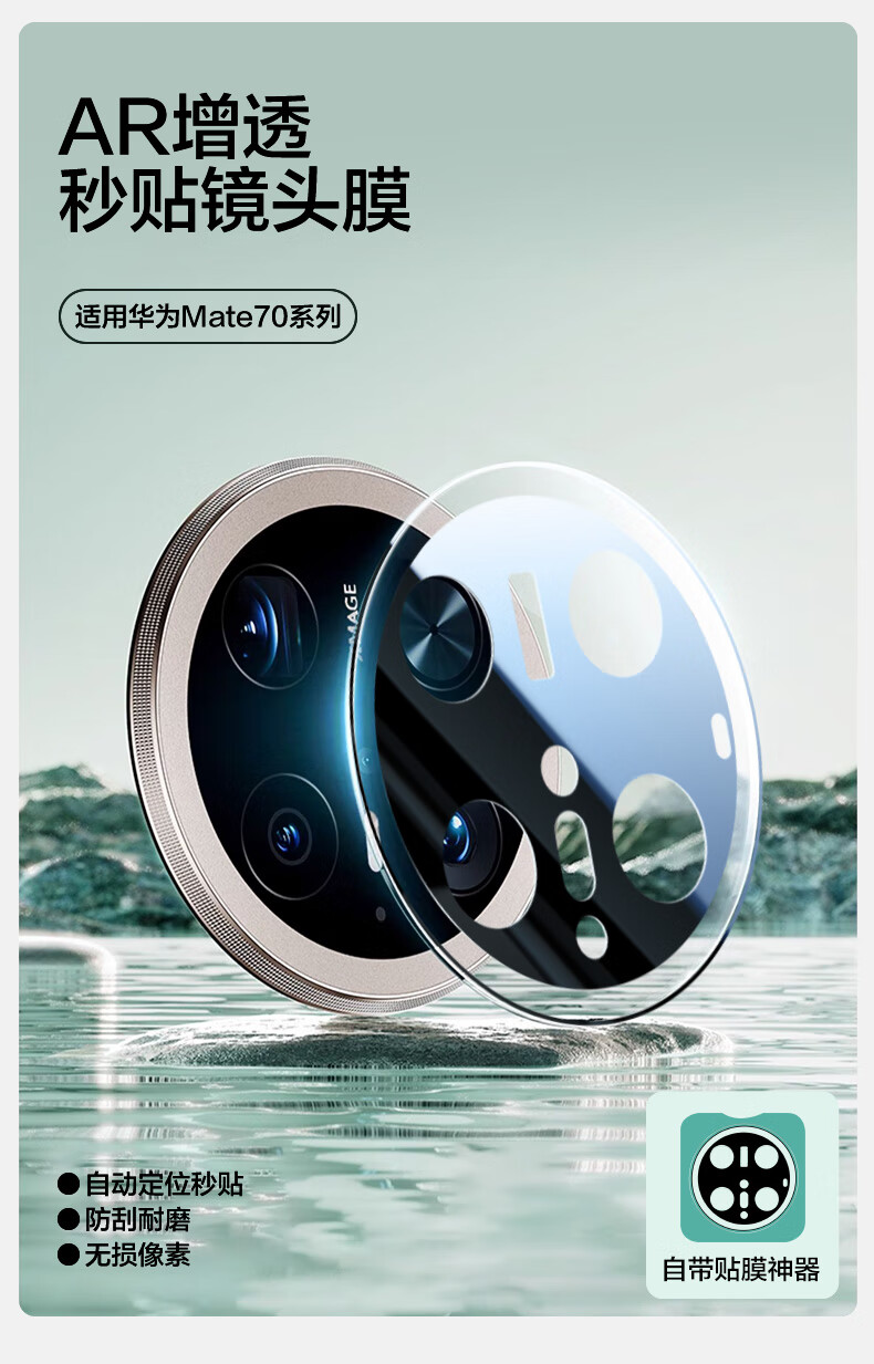 品胜适用华为mate70pro镜头膜mate70pro+/优享版手机镜头膜后置摄像头钢化膜AR增透自动定位防刮保护膜