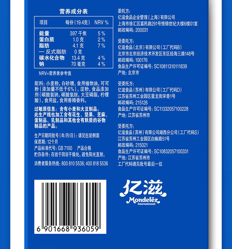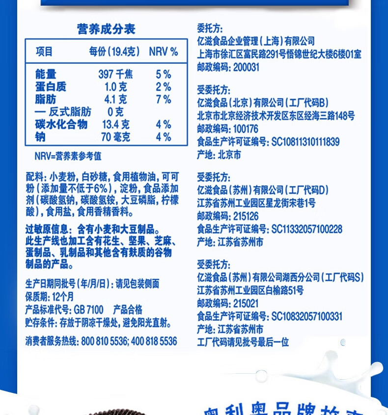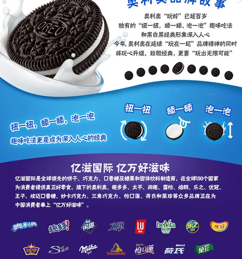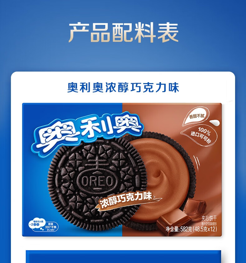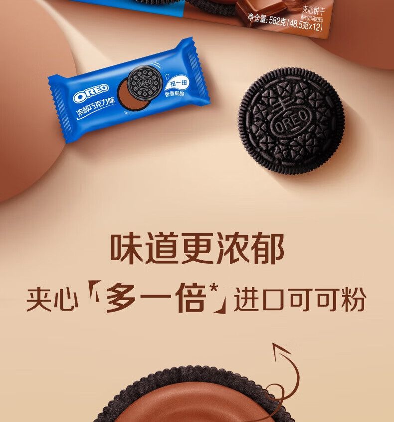 奥利奥(Oreo)夹心饼干经典巧克力味582g 休闲零食 独立12小包 早餐下午茶