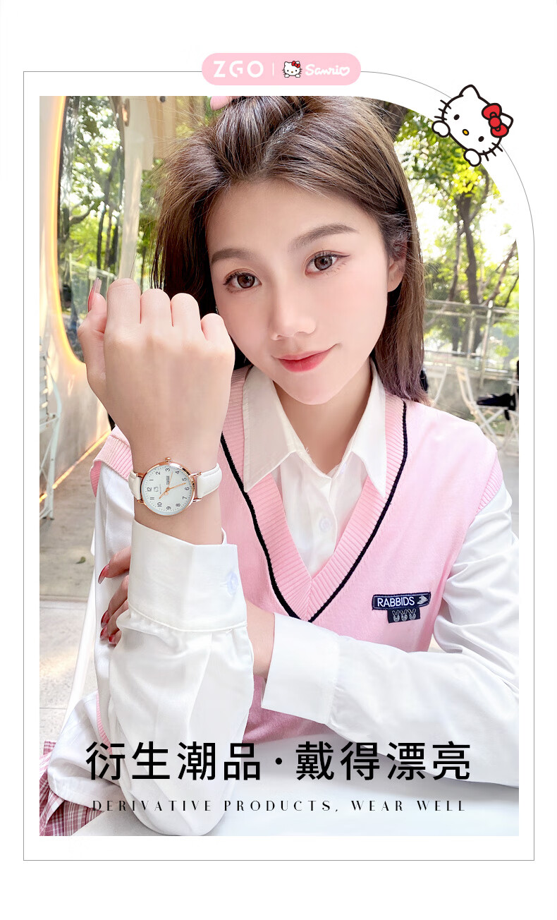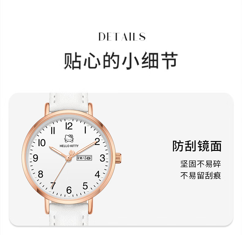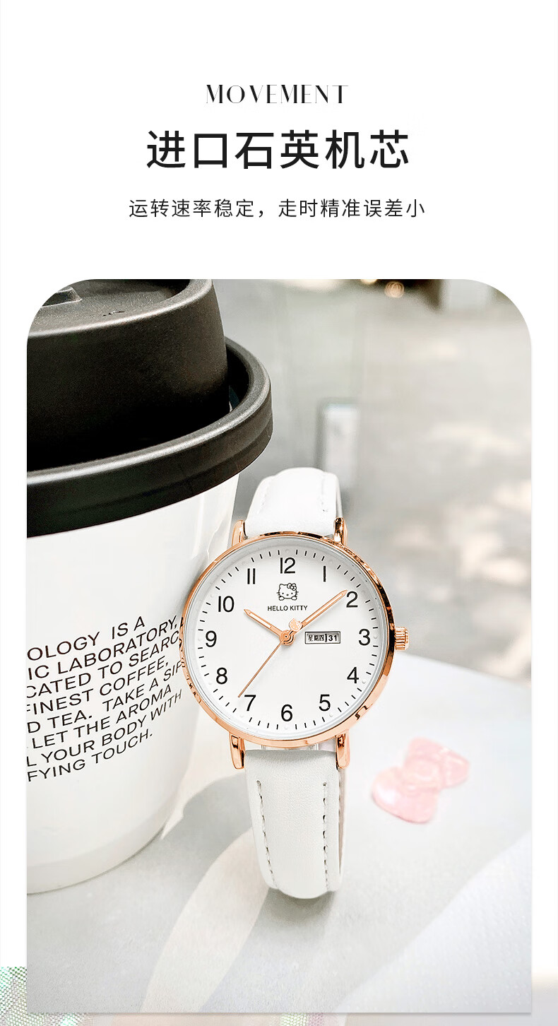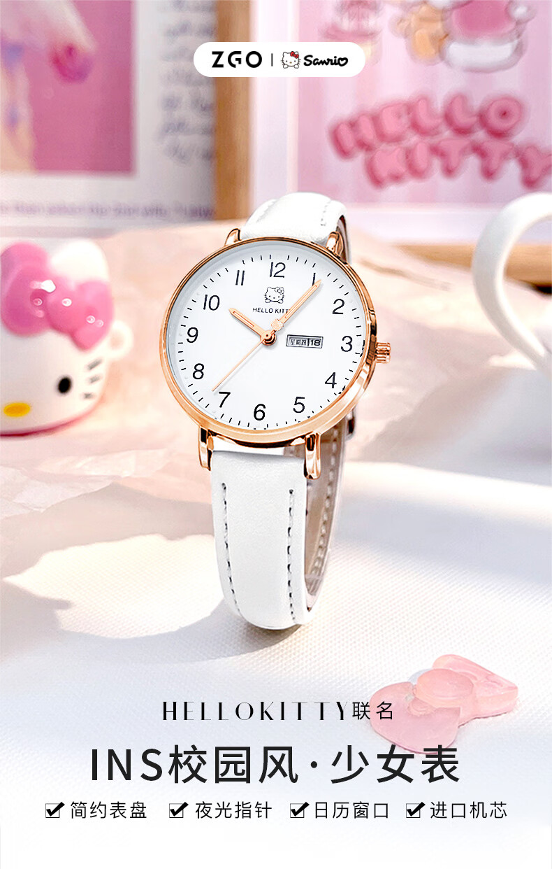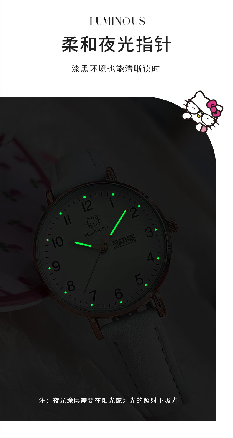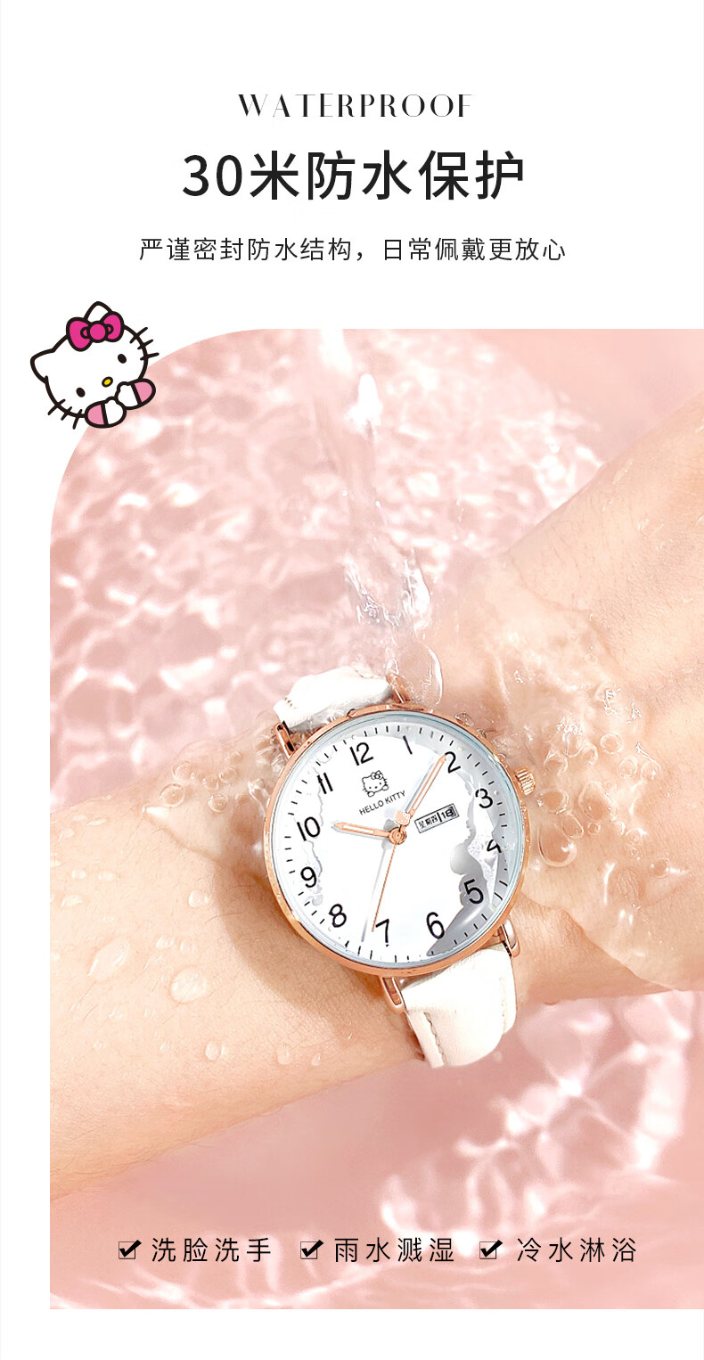 Hello Kitty手表女学生时尚双日历少女腕表初中高中学生考试专用手表2108