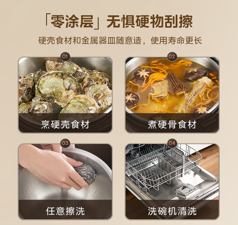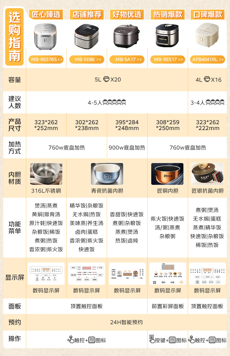 美的(Midea)电饭煲0涂层电饭锅5L大容量316L不锈钢内胆4-5人无涂层家用多功能微压电饭煲MB-RE576S