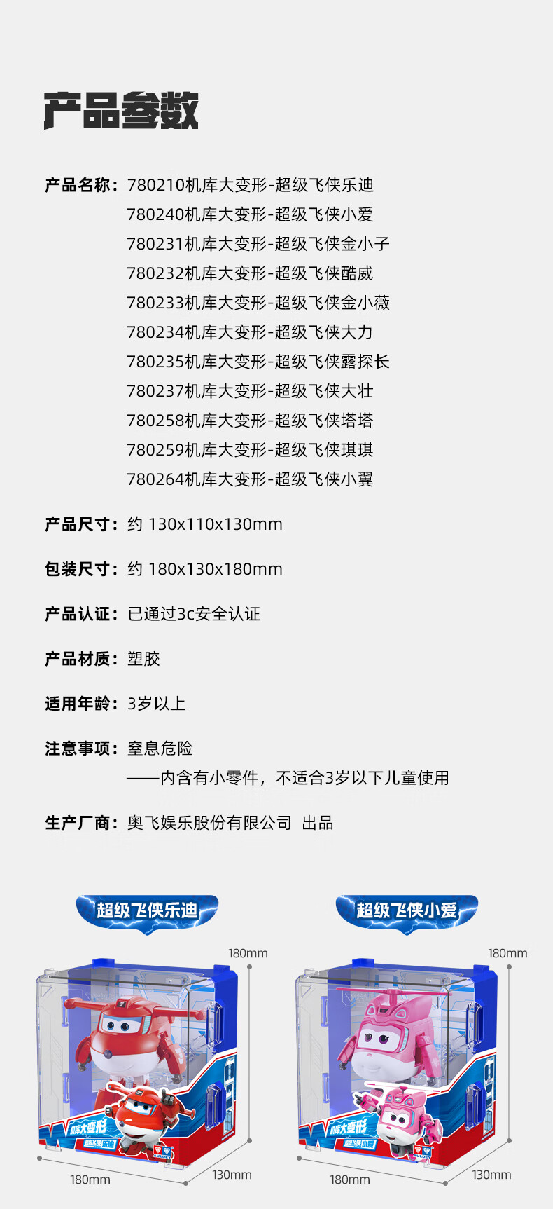 奥迪双钻(AULDEY)超级飞侠15大变形机器人大力电能机库墙儿童玩具男女孩生日礼物