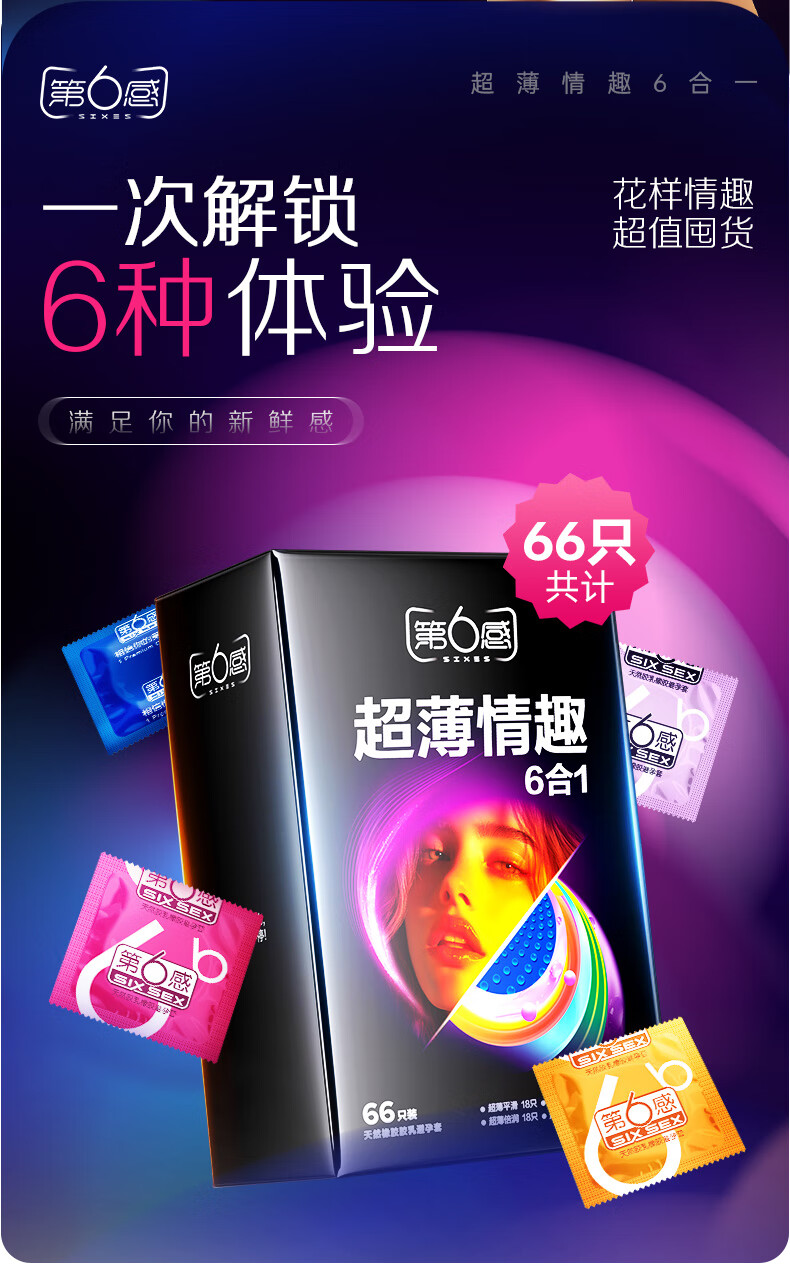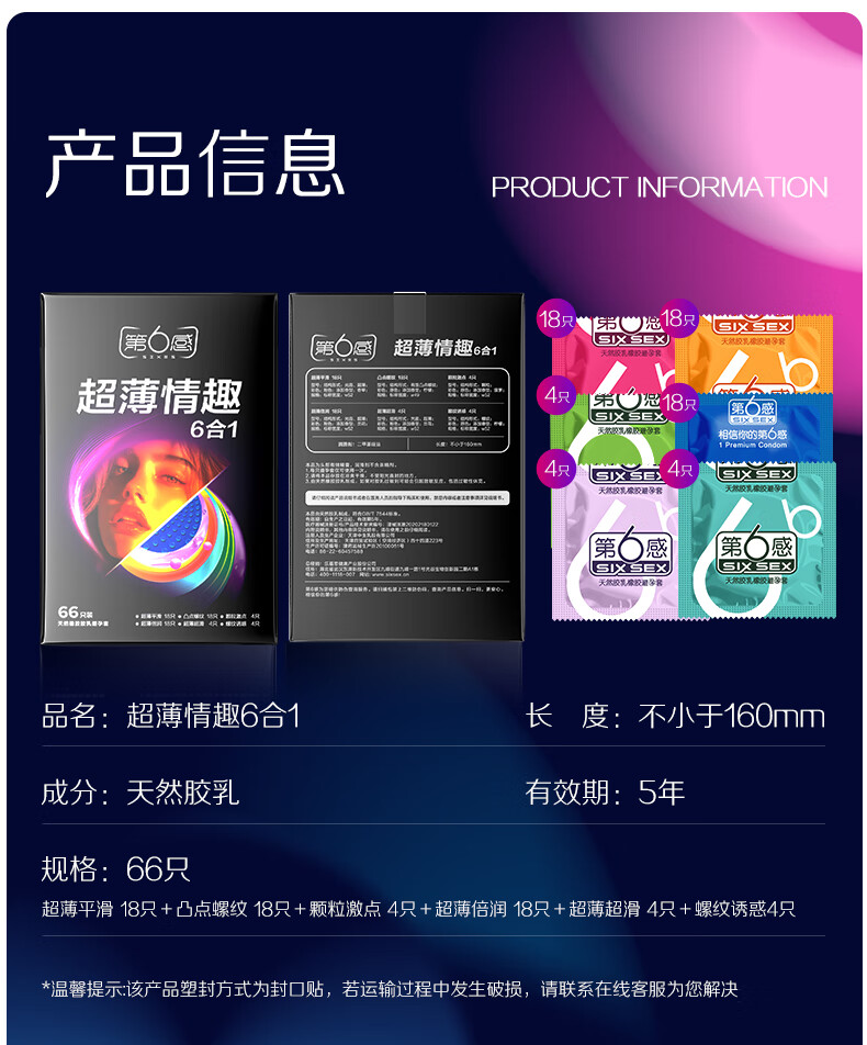 第六感避孕套 超薄情趣66只 安全套套大颗粒螺纹带刺男女用计生成人