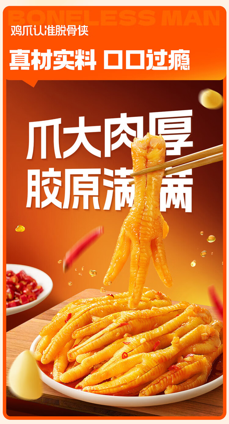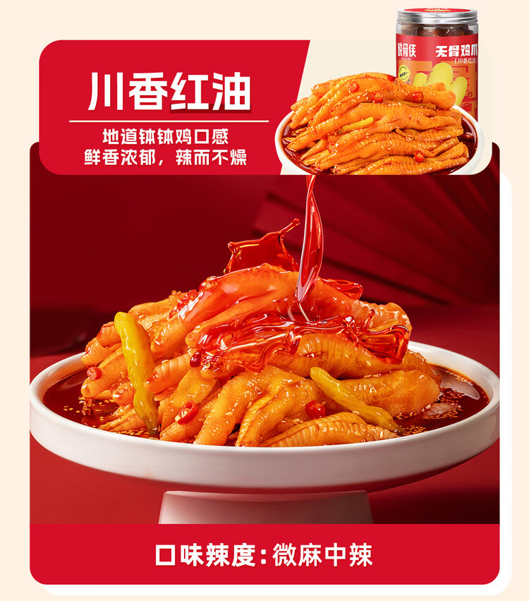 脱骨侠无骨鸡爪川香红油488g+蒜香200g网红去骨凤爪解馋源头直发包邮