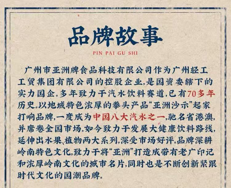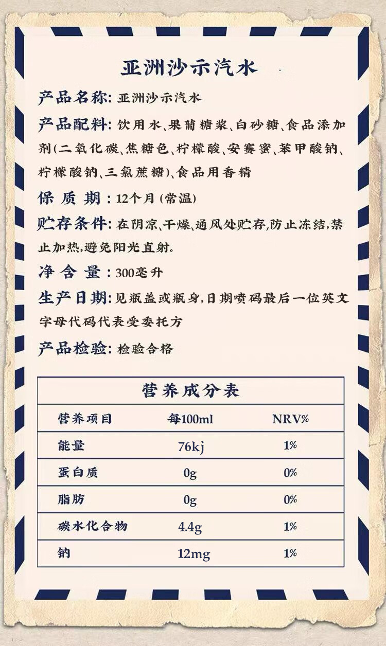 亚洲(ASIA)沙示汽水 碳酸饮料 300ml*24 整箱