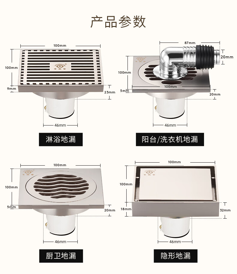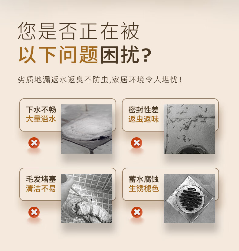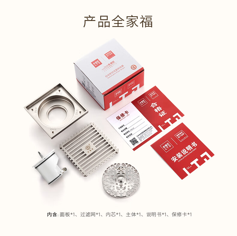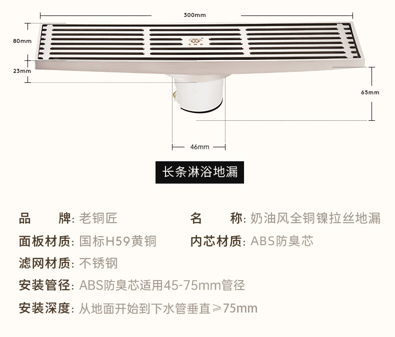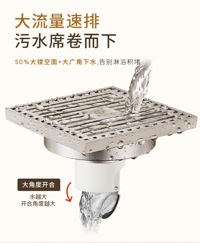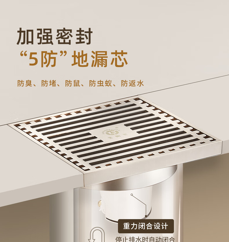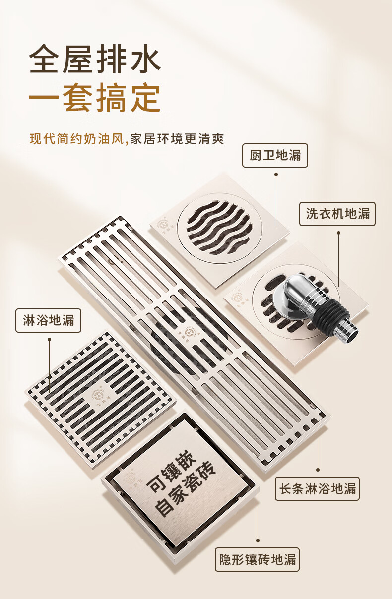 老铜匠顾家集团奶油风防臭地漏全铜方形超薄淋浴房卫生间干湿区浴室地漏