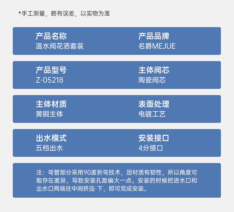 名爵(MEJUE)淋浴花洒套装电热水器U型混水阀花洒全套洗溪花洒开关龙头Z-05218