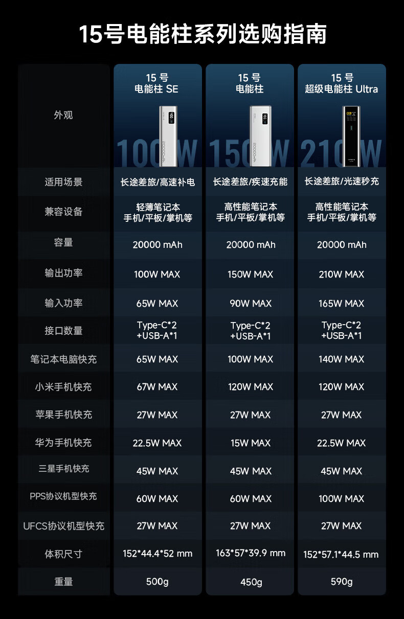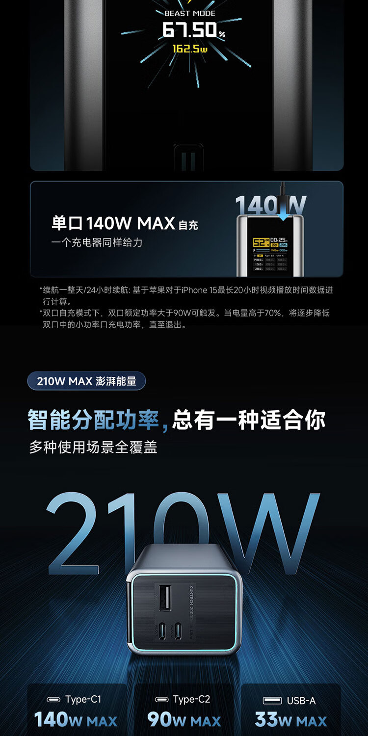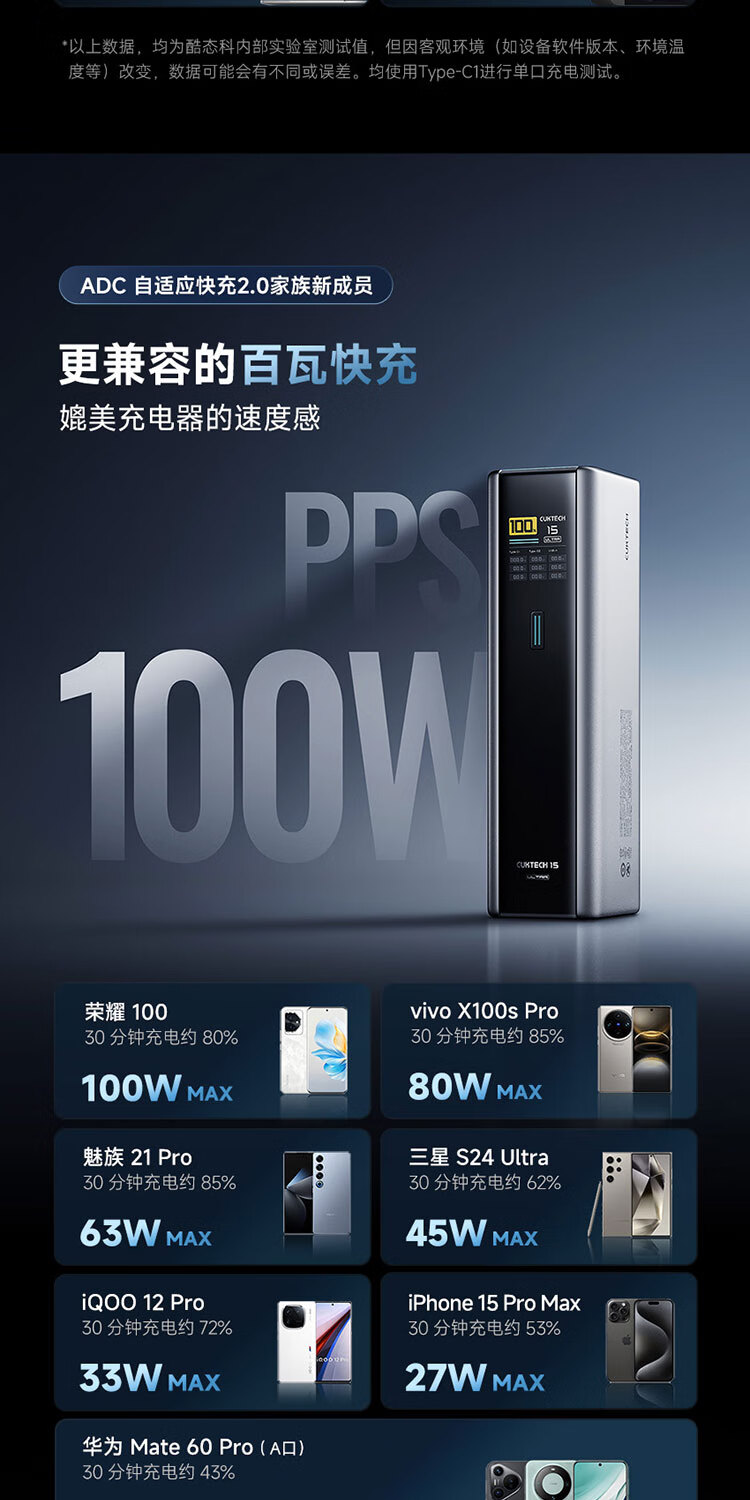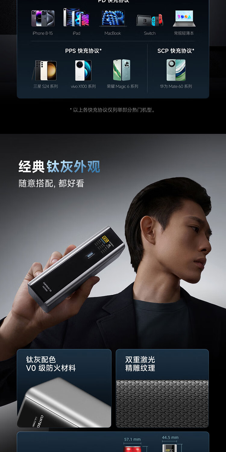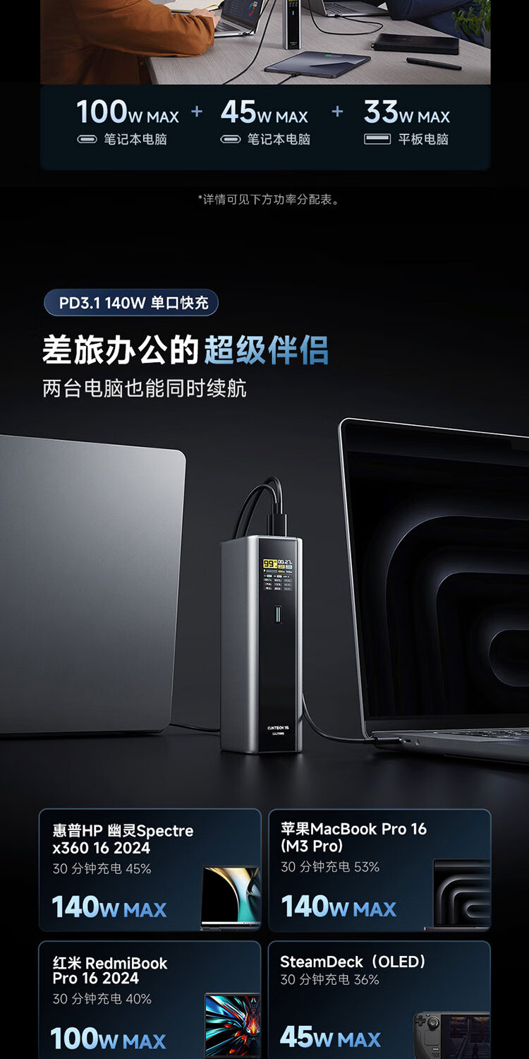 CUKTECH酷态科【3C认证可上飞机】15号超级电能柱Ultra20000毫安时充电宝140W多口210W快充支持小米笔记本