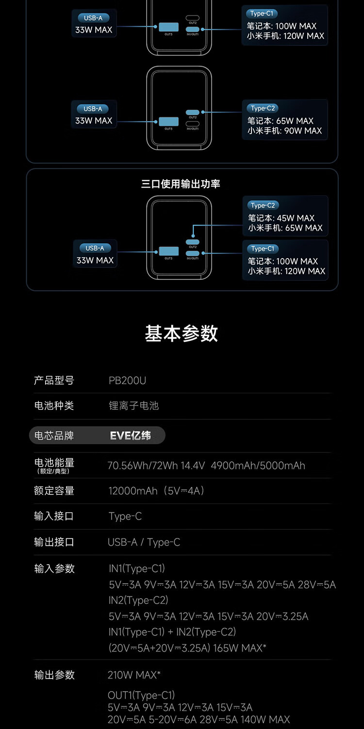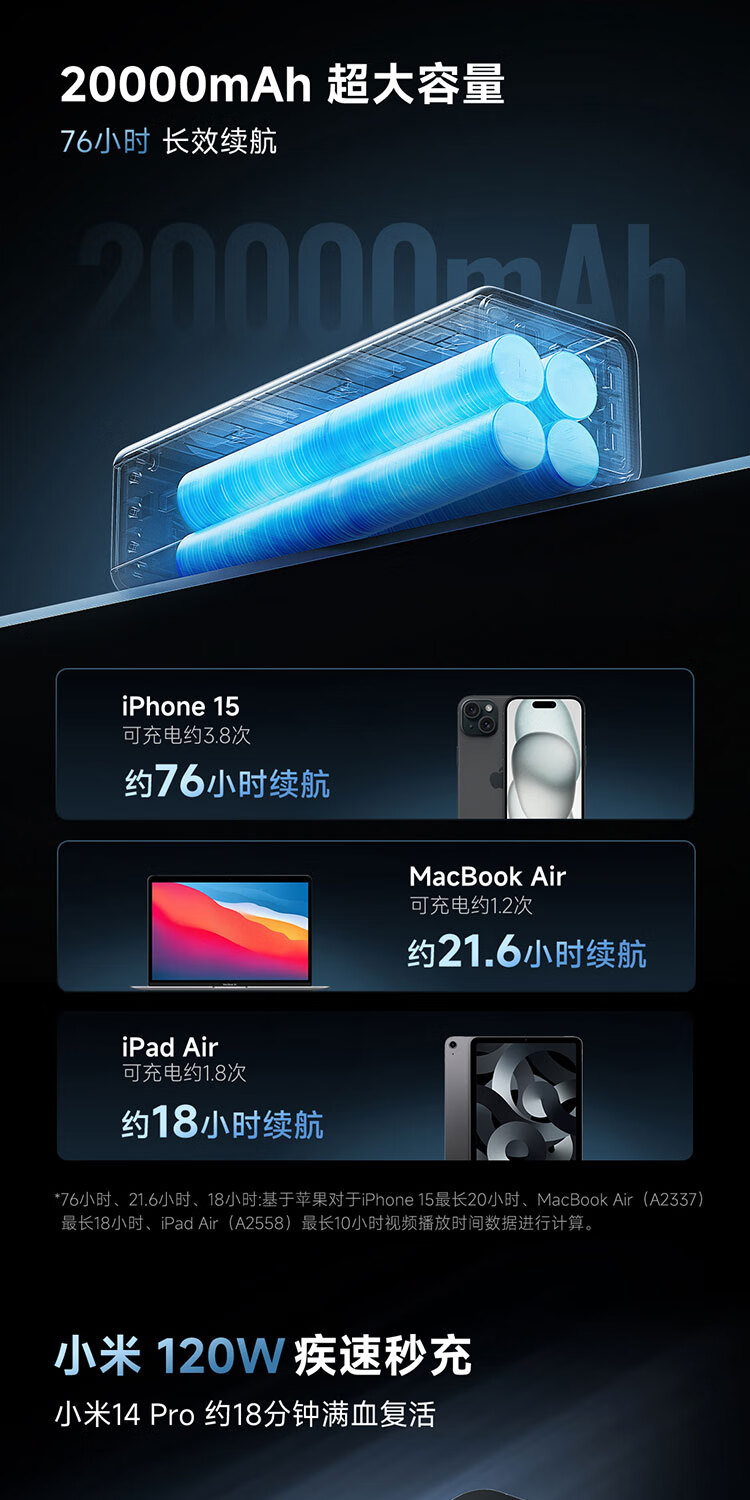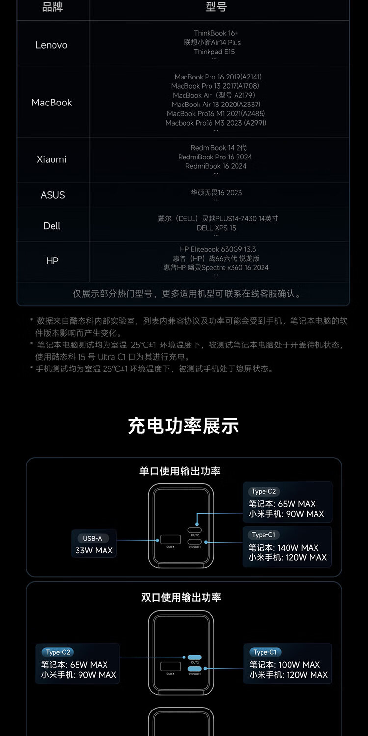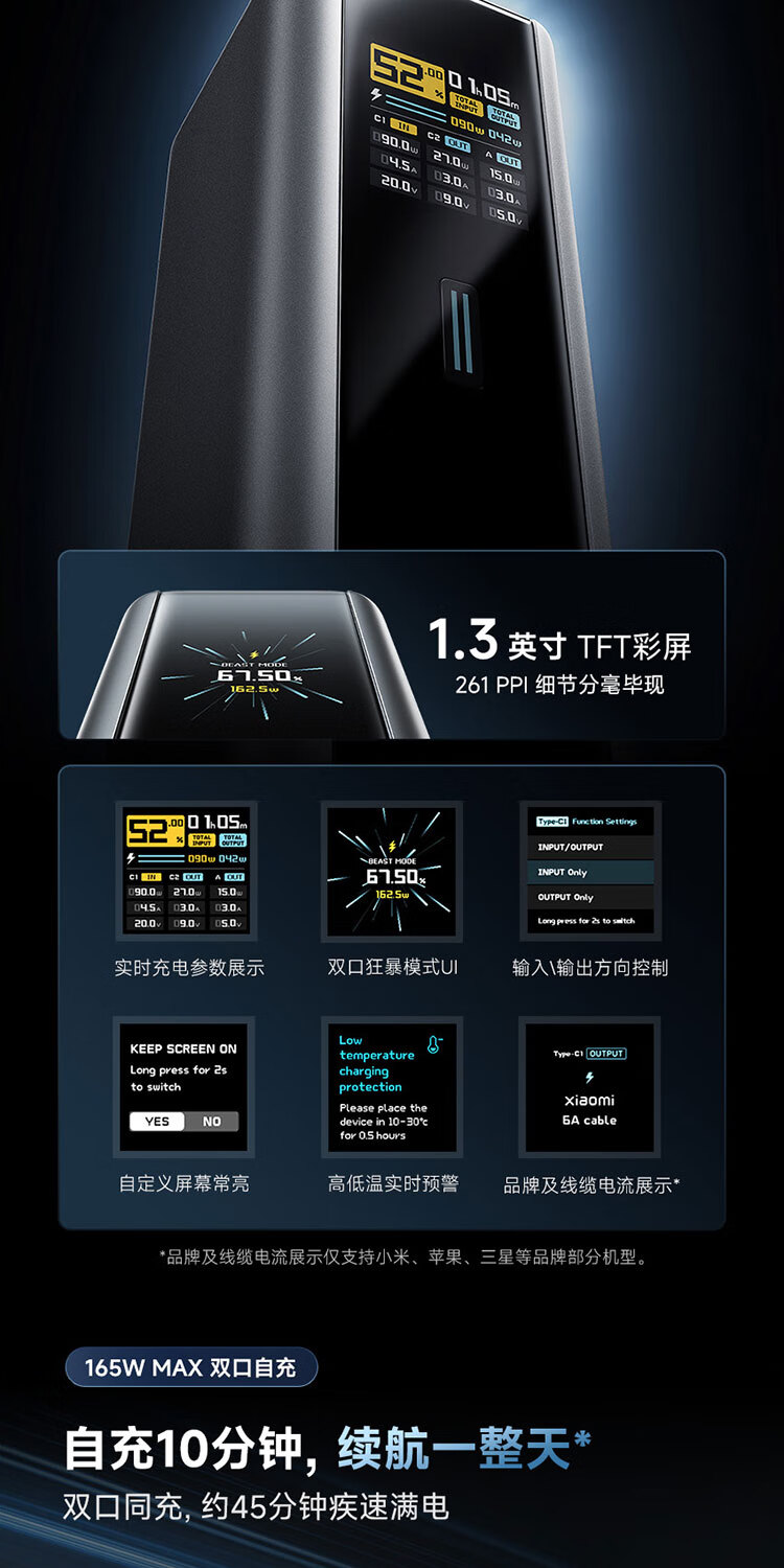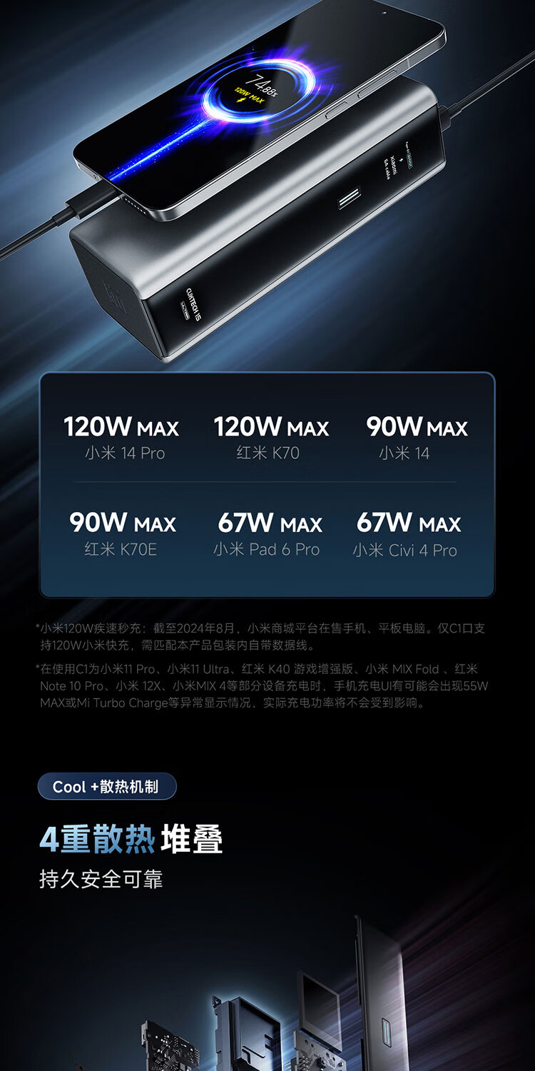 CUKTECH酷态科【3C认证可上飞机】15号超级电能柱Ultra20000毫安时充电宝140W多口210W快充支持小米笔记本