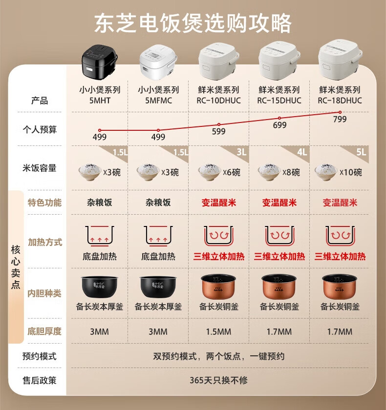 东芝(TOSHIBA)三维加热健康酵活4L电饭煲 智能米量判定 24H抗菌保温 鲜米煲系列 RC-15DHUC(WY)