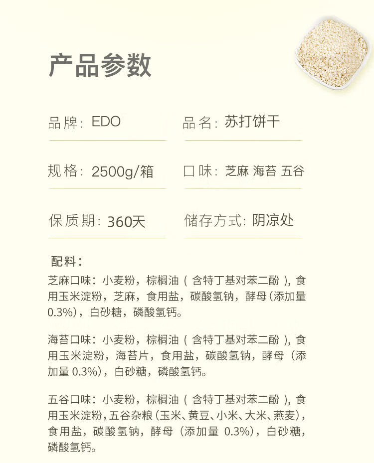 EDO PACK 芝麻味 酵母苏打饼干 5斤装/箱 早餐 下午茶 中秋节礼盒团购送礼