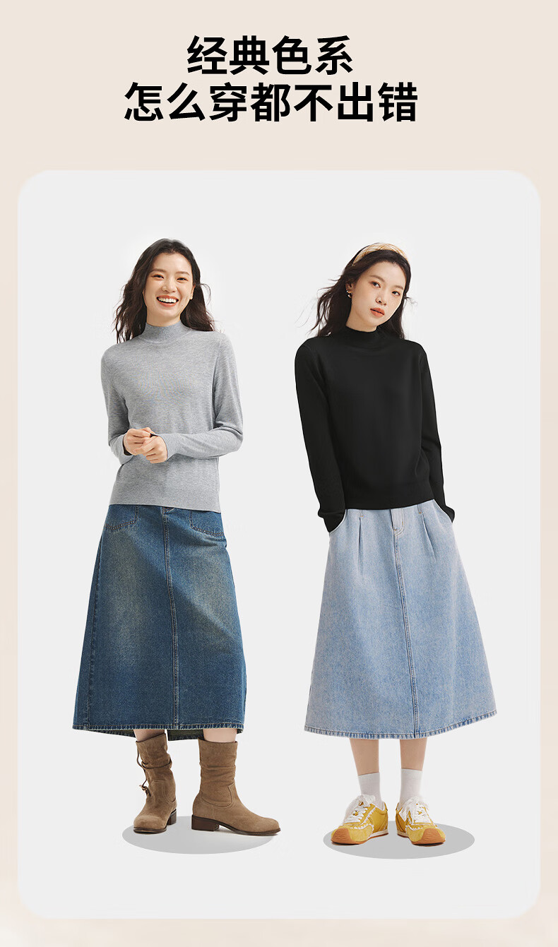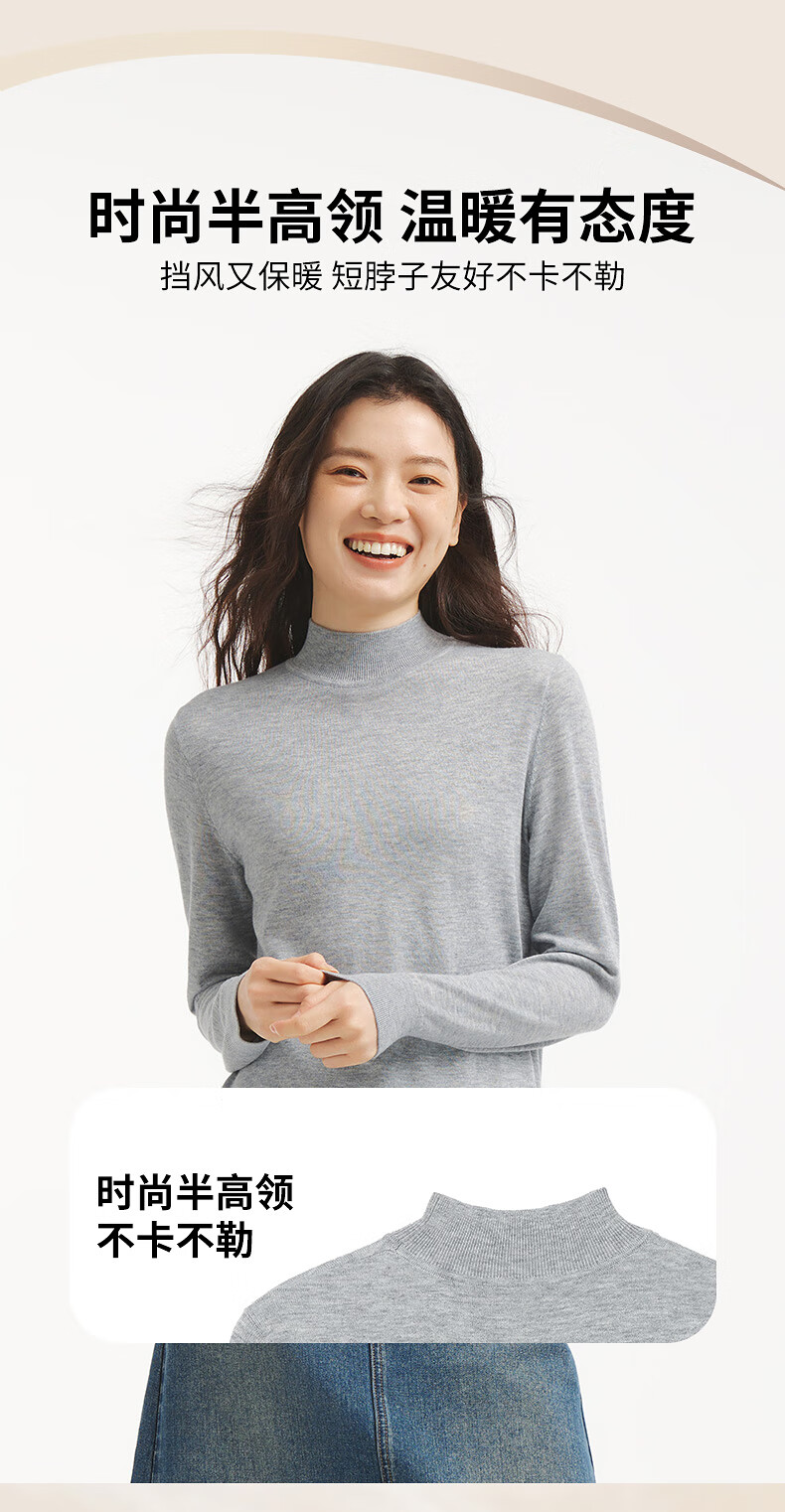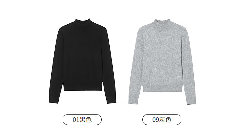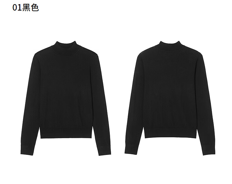 热风女士打底衫毛衣2025年冬季新款半高领针织衫基础款微弹上衣 01黑色 L