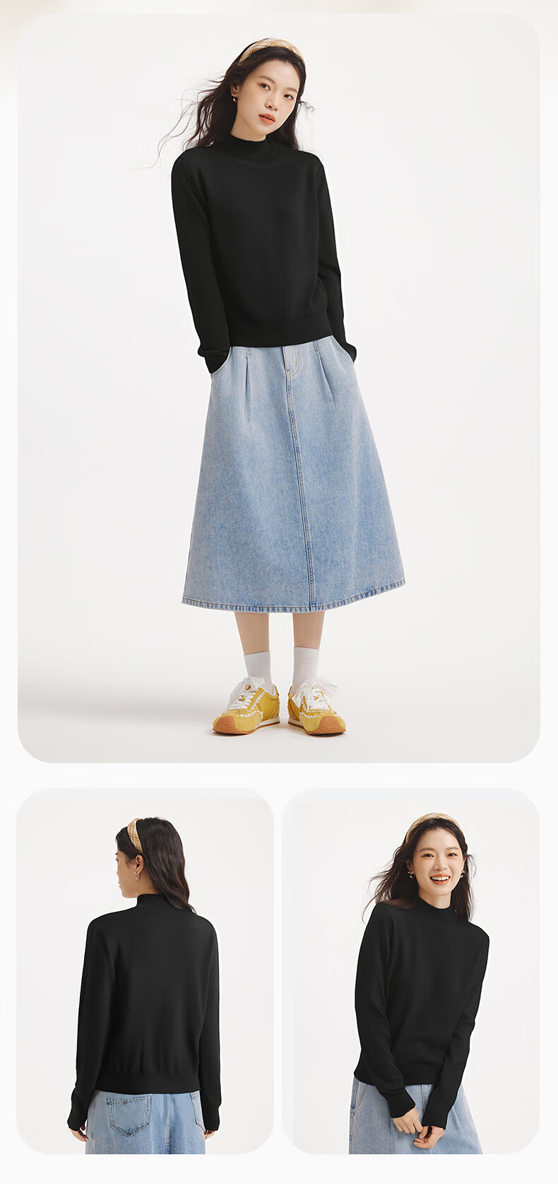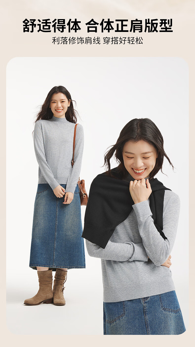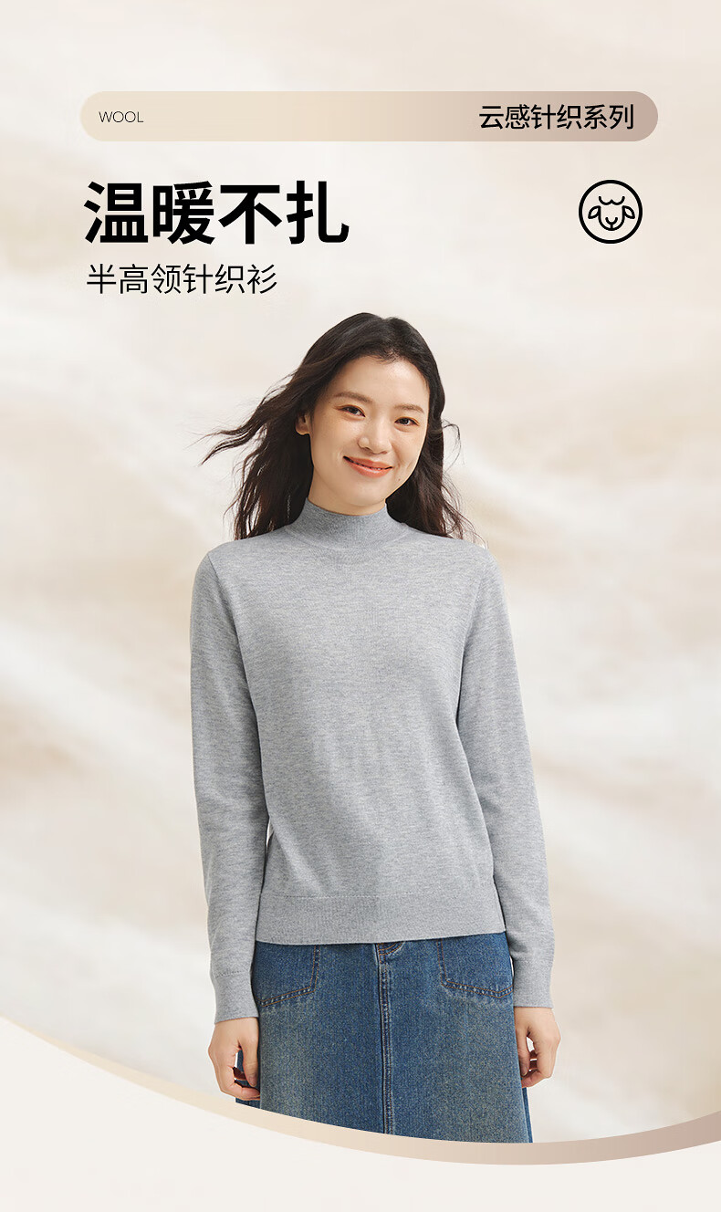 热风女士打底衫毛衣2025年冬季新款半高领针织衫基础款微弹上衣 01黑色 L