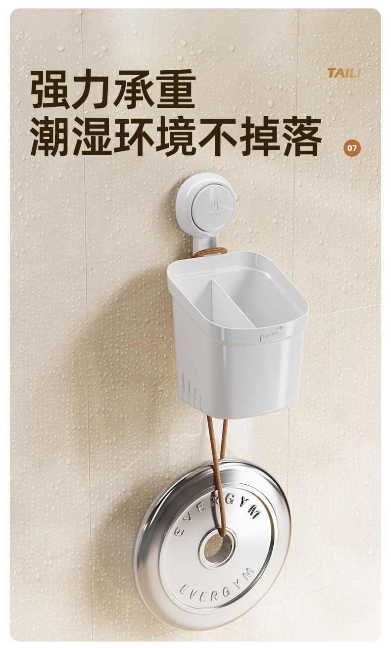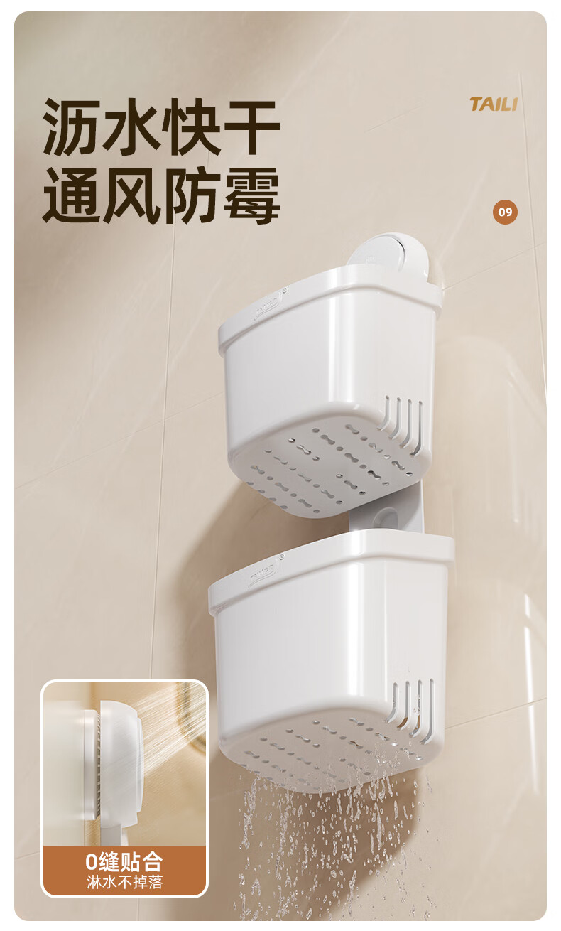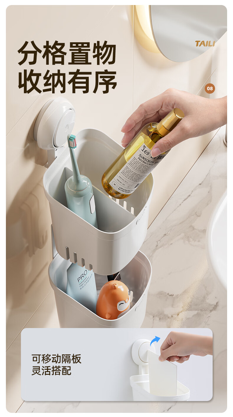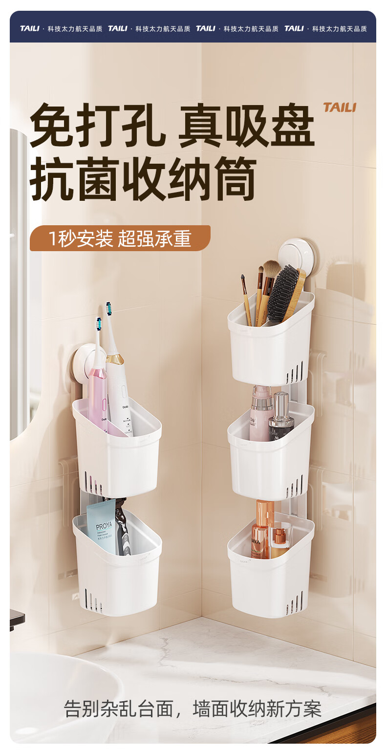 太力吸盘式收纳筒大容量浴室卫生间壁挂置物架 双层收纳筒
