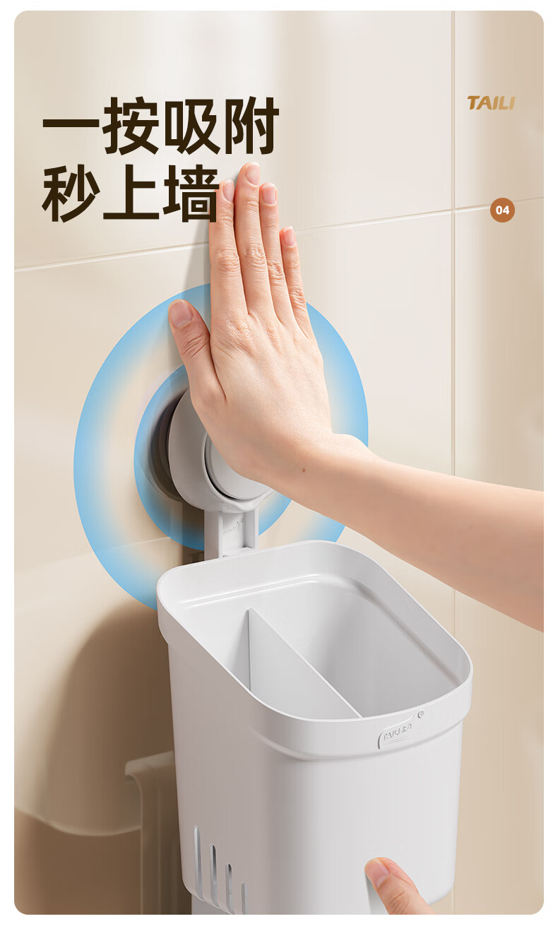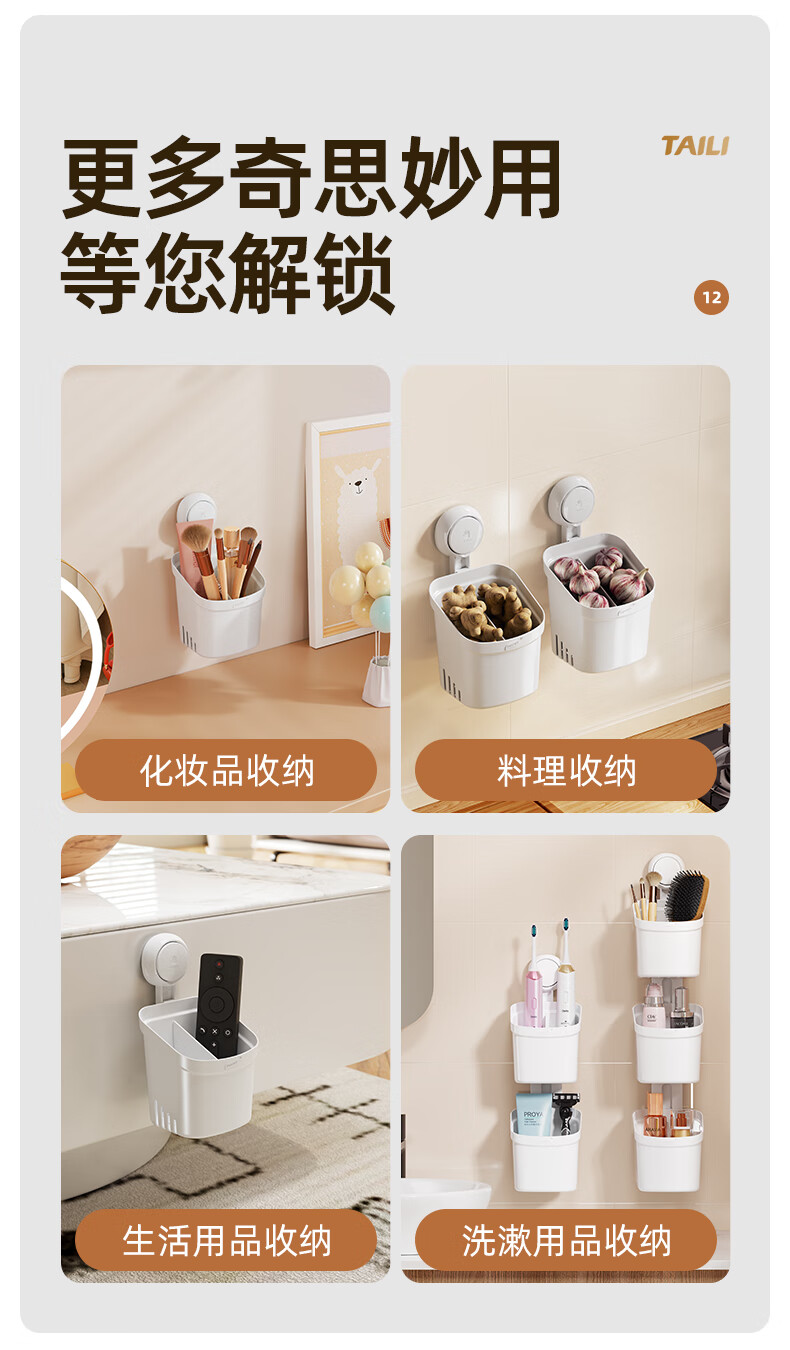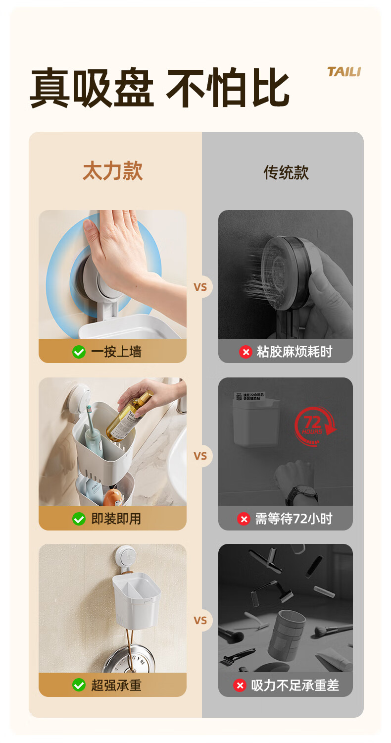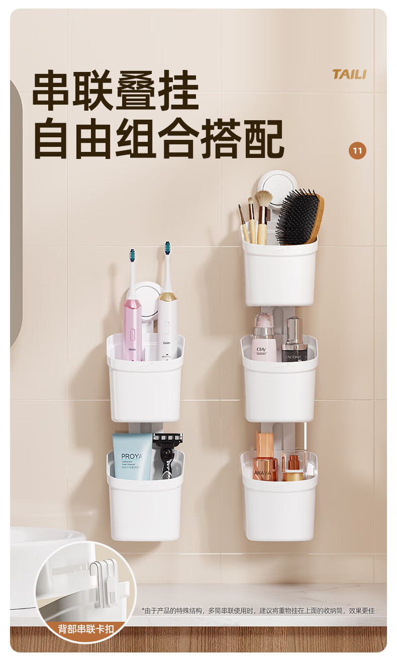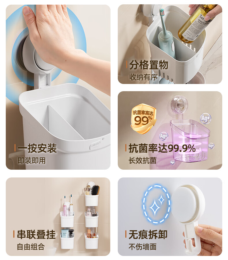 太力吸盘式收纳筒大容量浴室卫生间壁挂置物架 双层收纳筒
