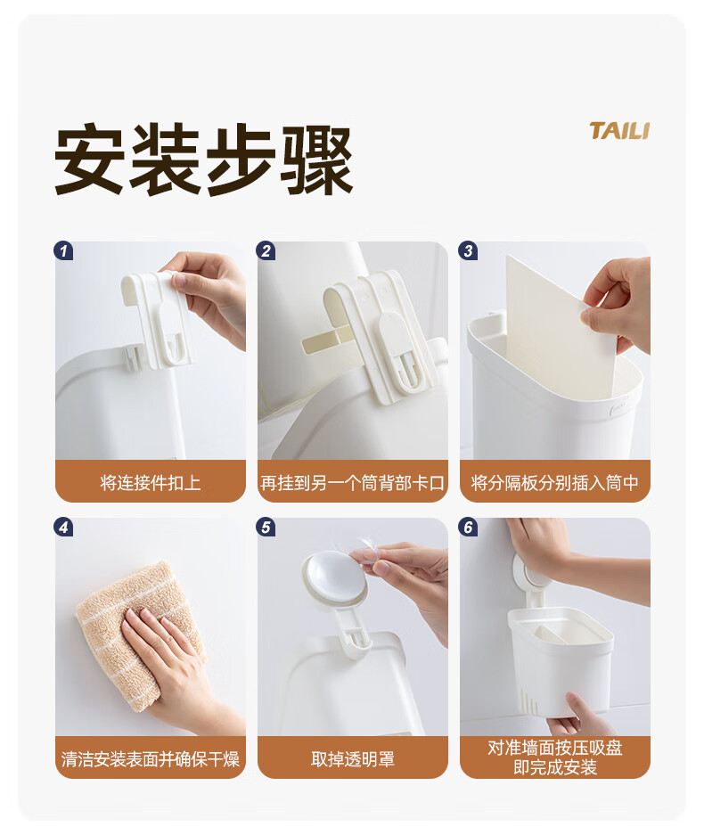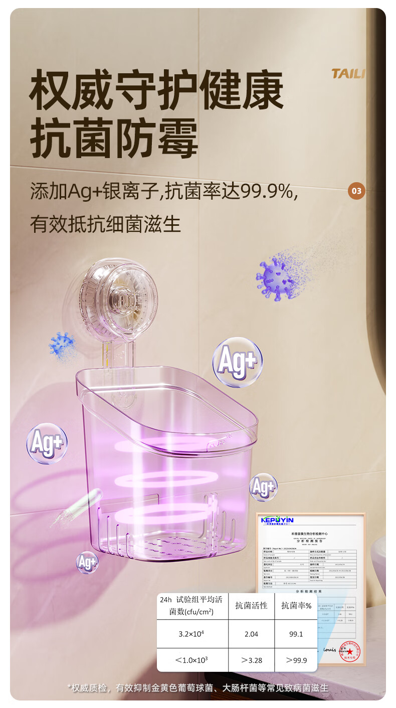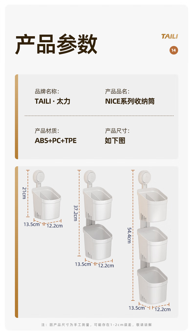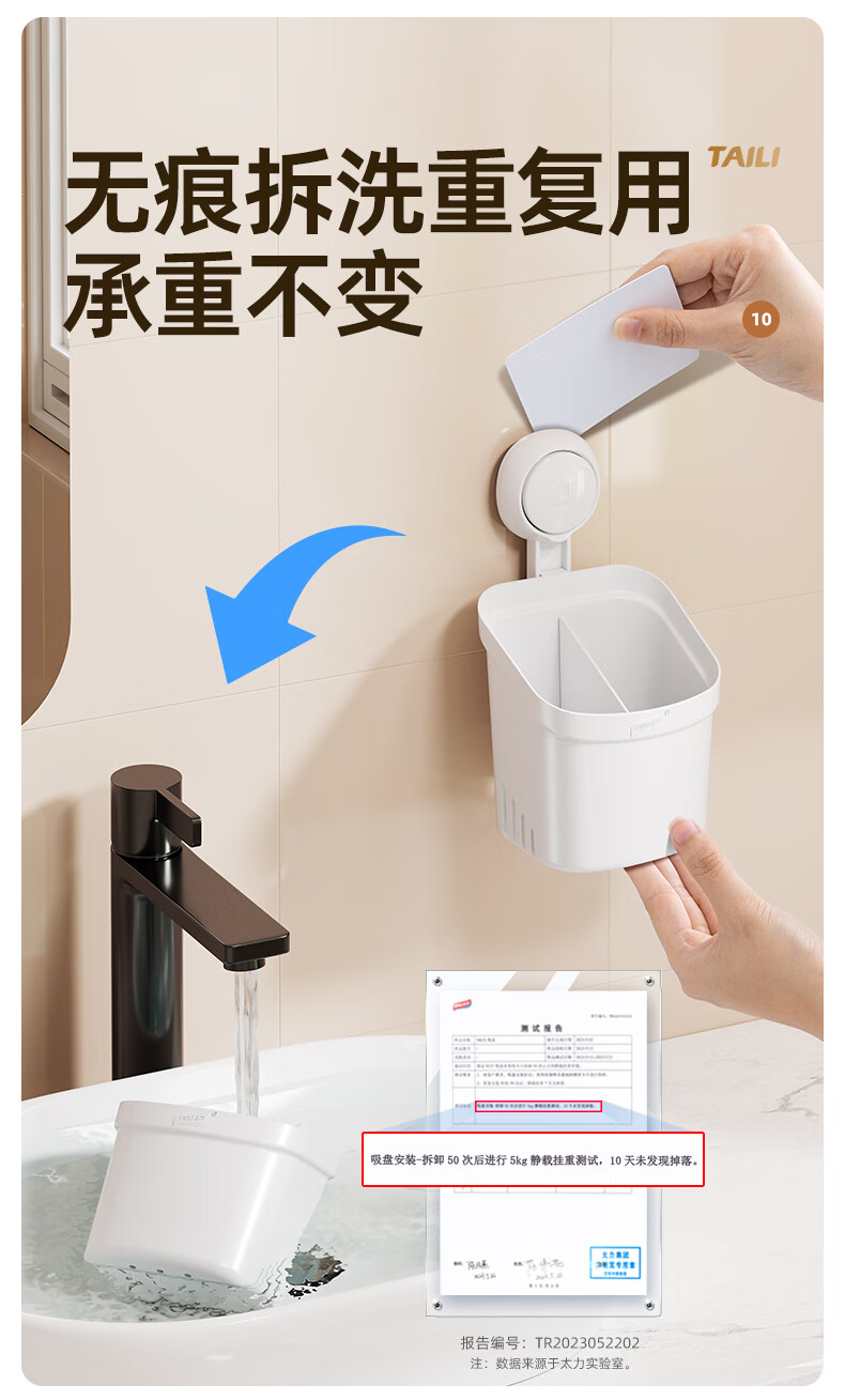 太力吸盘式收纳筒大容量浴室卫生间壁挂置物架 双层收纳筒