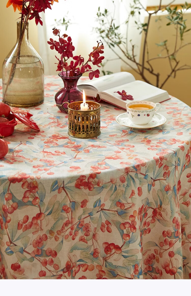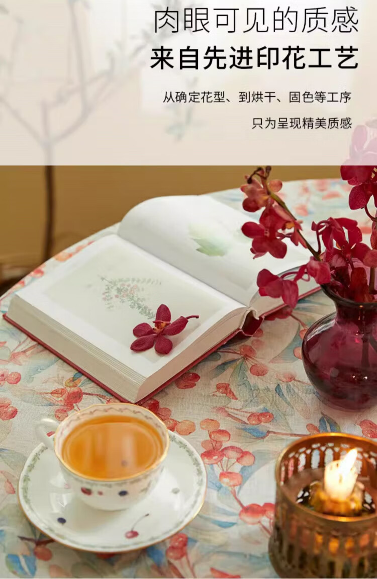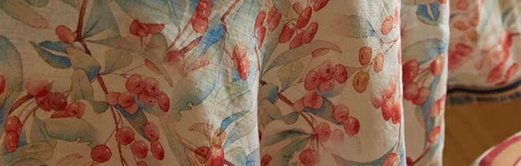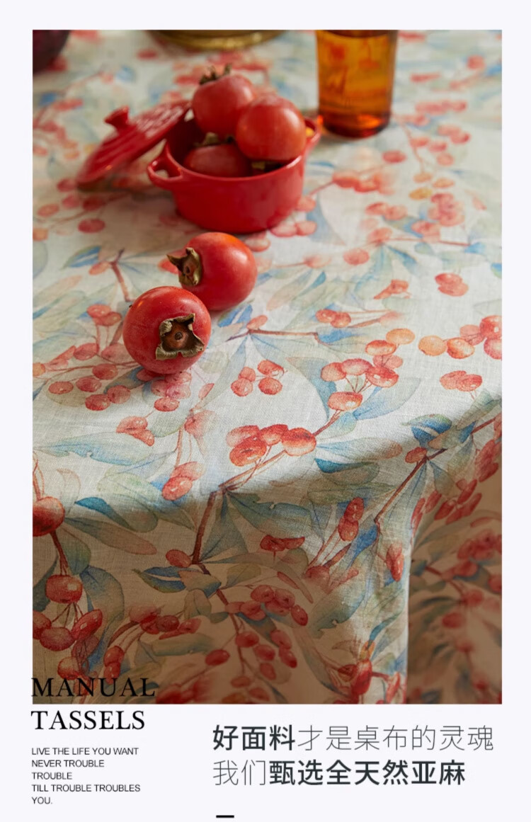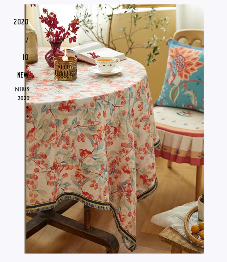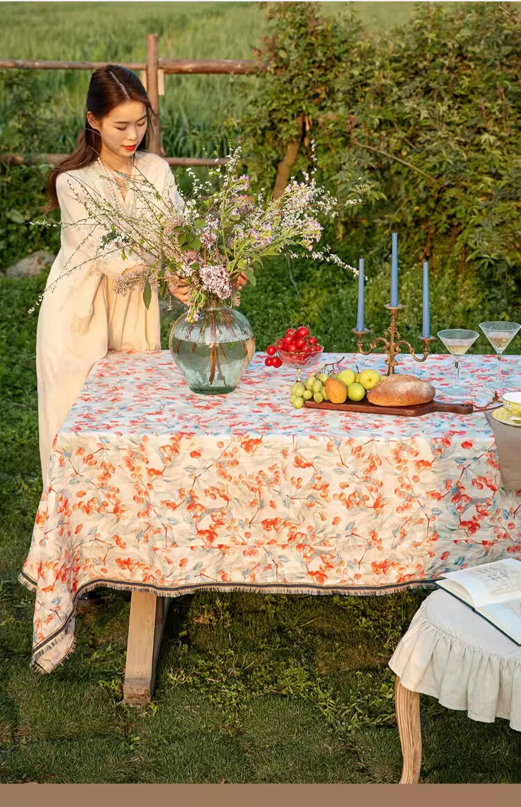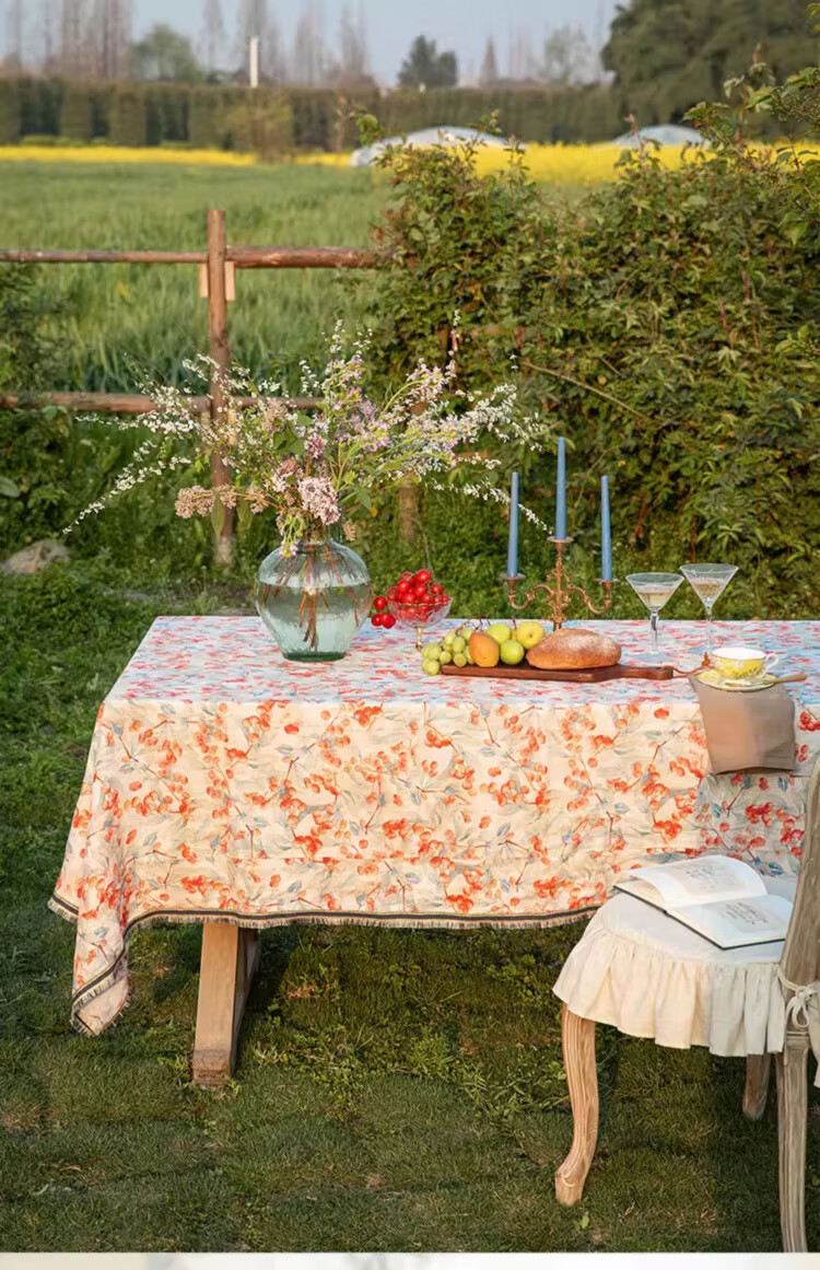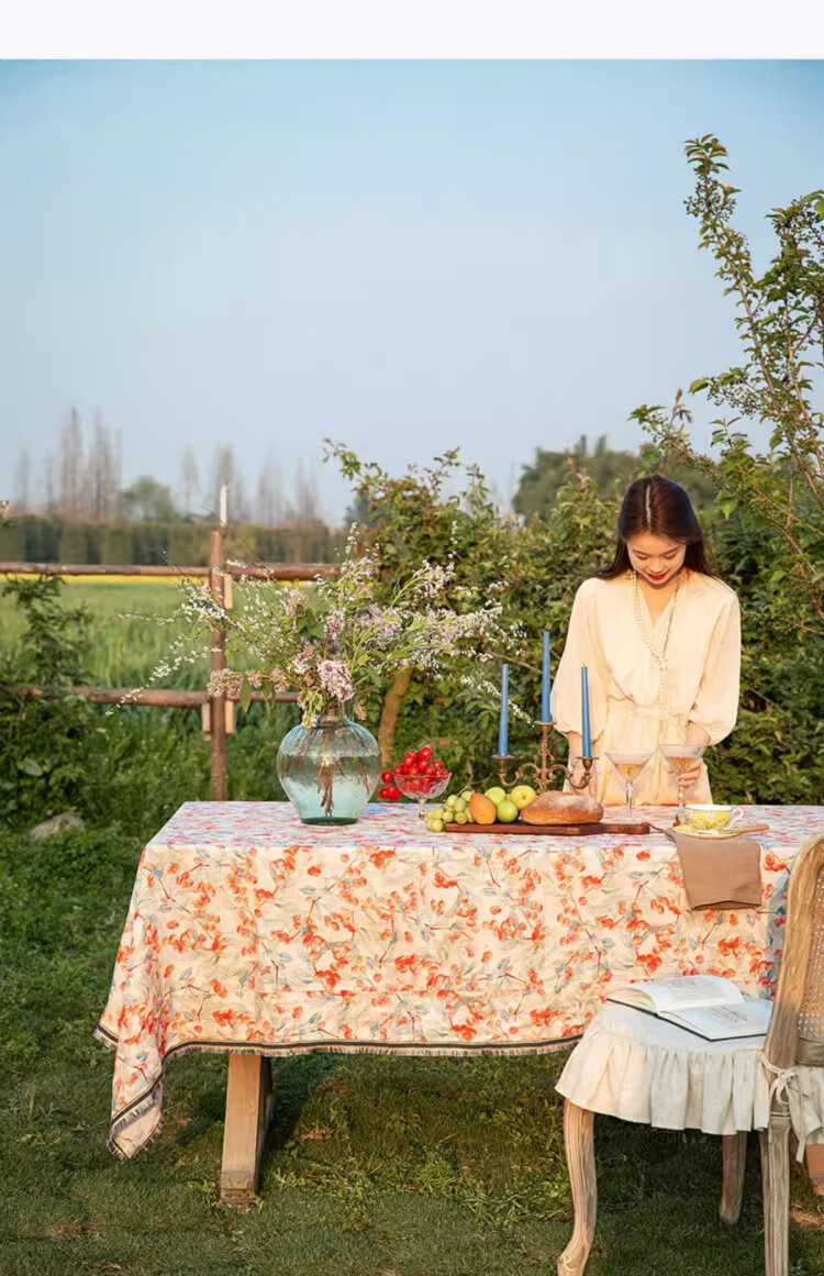 蜡笔派(Nabis)【孤品3.5折】蜡笔派樱田桌布英式田园亚麻长条餐桌布田园茶几布A 山谷樱田桌布 130*180cm/卷边款/餐桌/4人