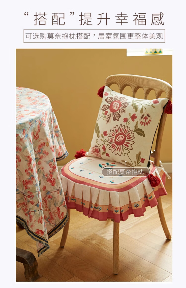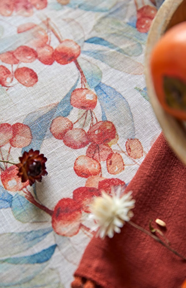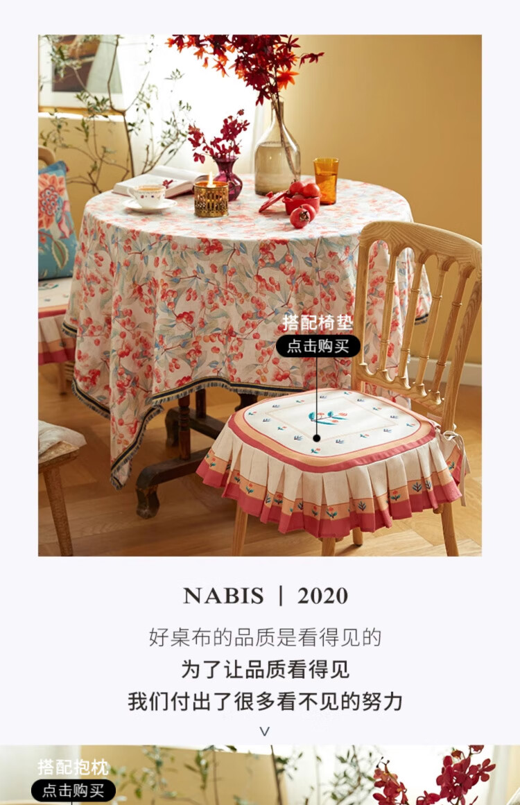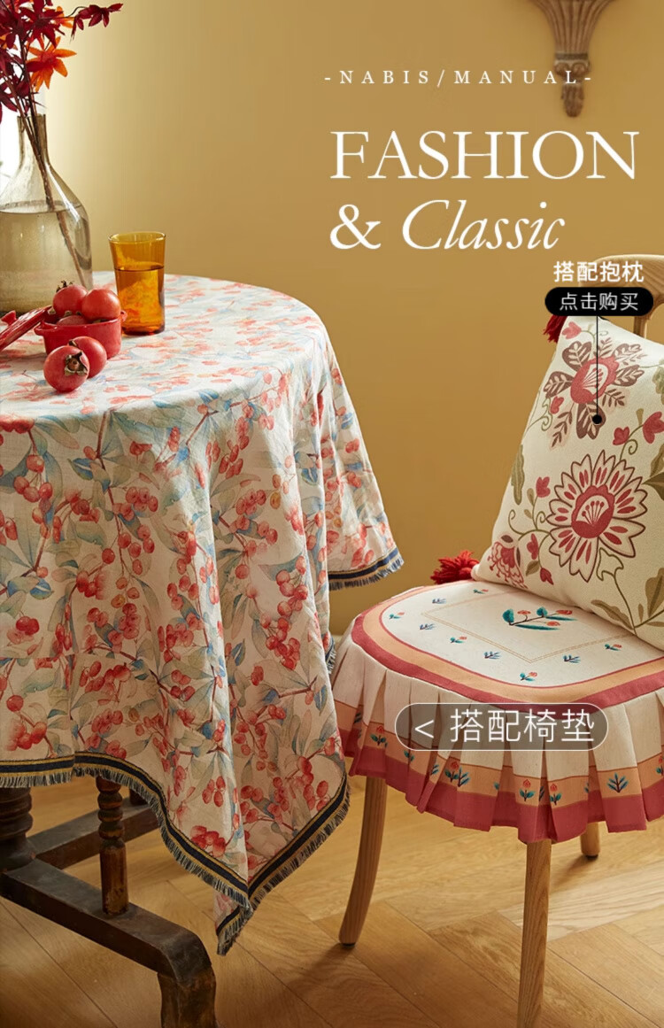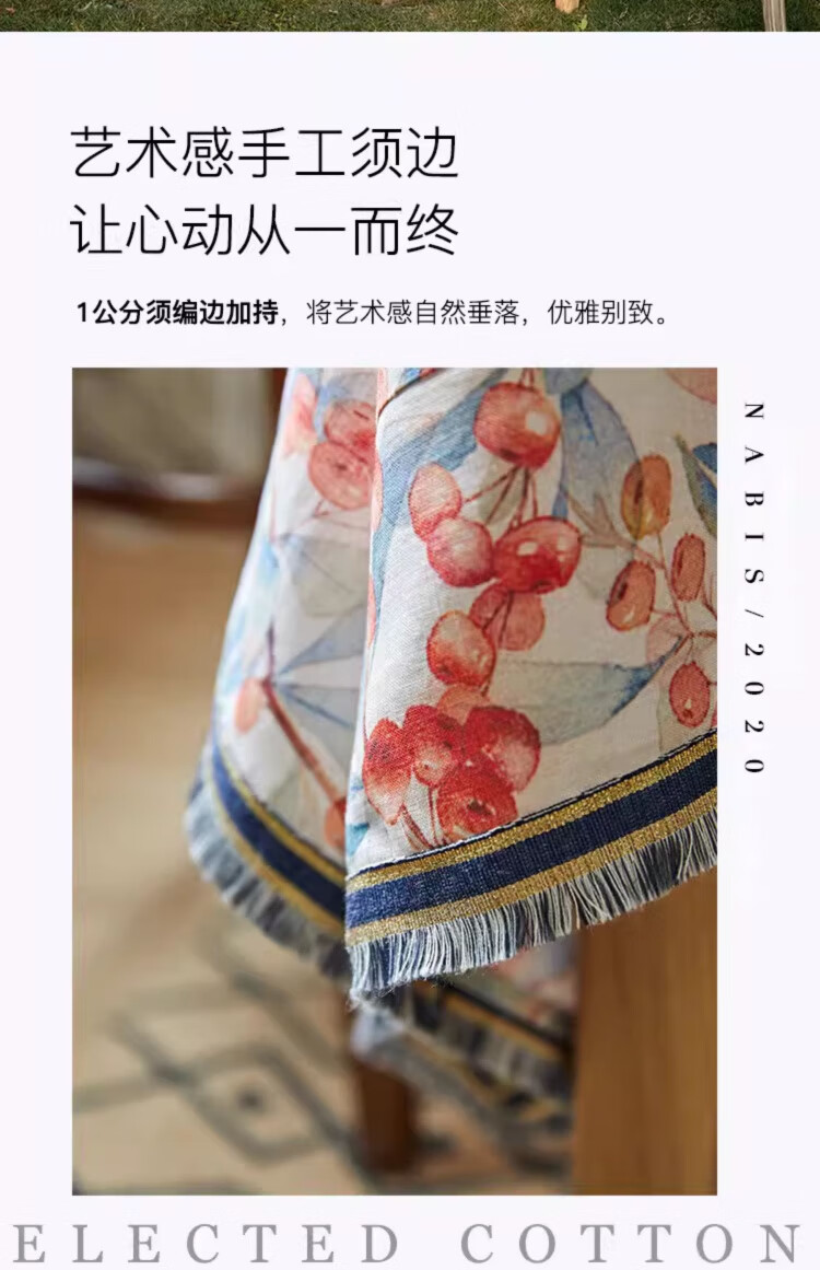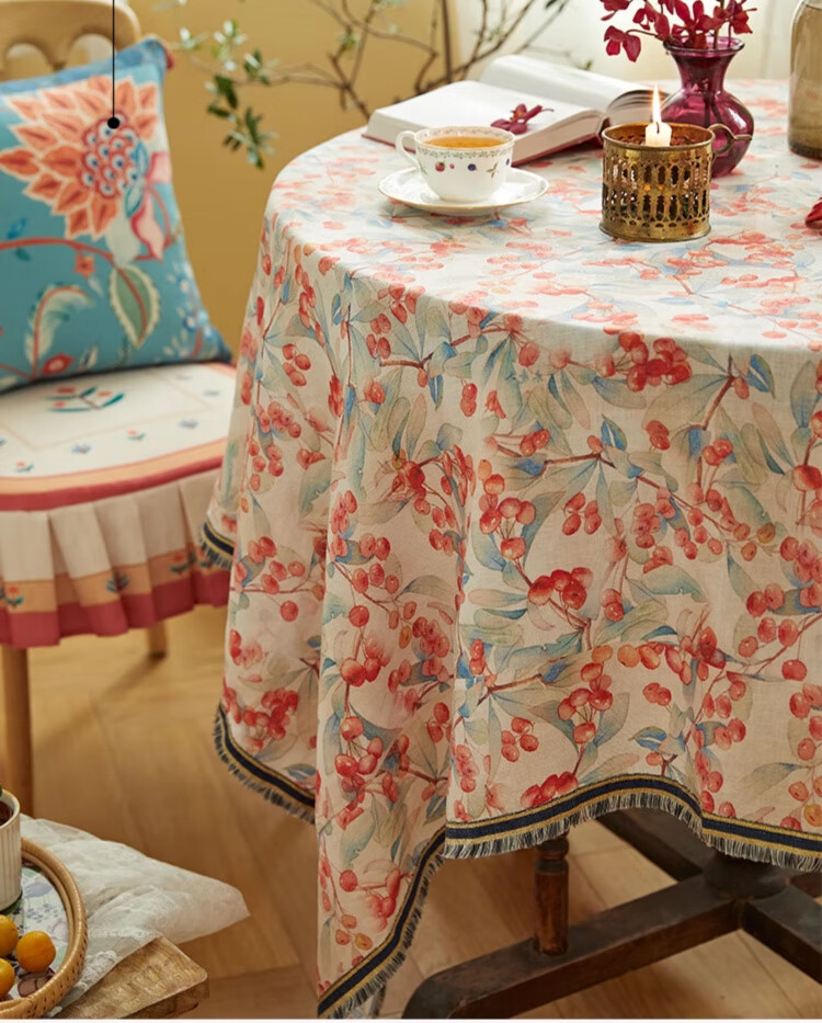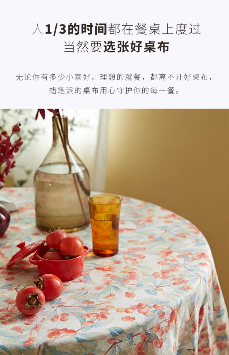 蜡笔派(Nabis)【孤品3.5折】蜡笔派樱田桌布英式田园亚麻长条餐桌布田园茶几布A 山谷樱田桌布 130*180cm/卷边款/餐桌/4人