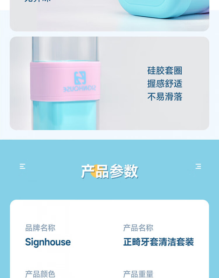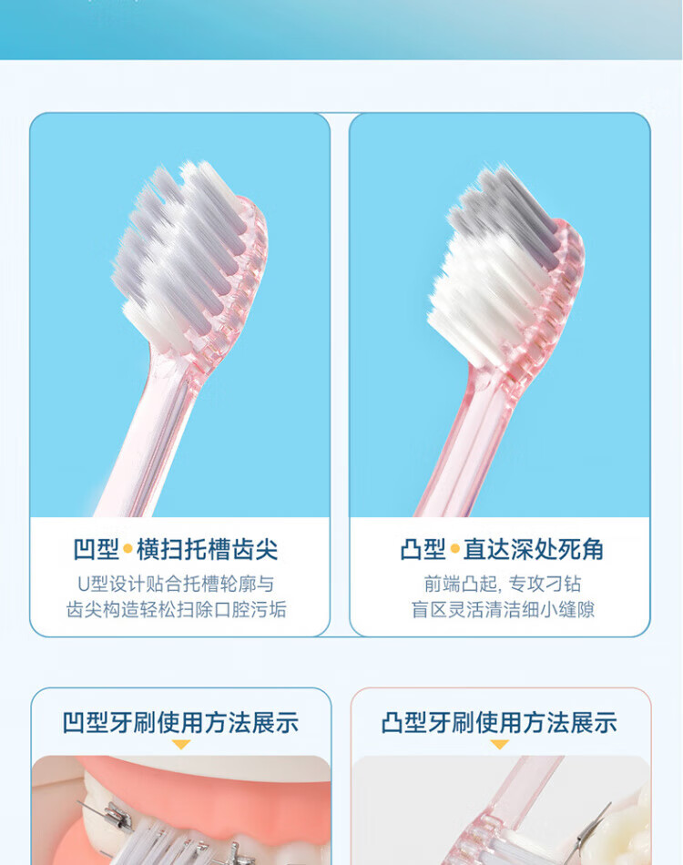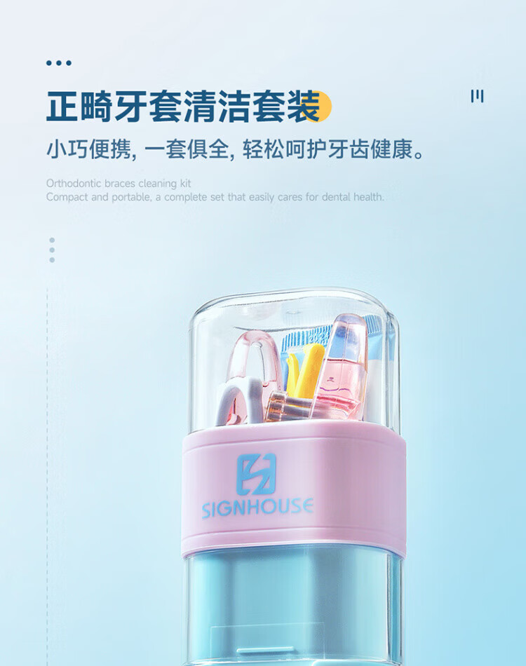 DEATKN德国正畸牙套清洁套装小型便携装牙齿整牙专用牙套牙刷牙膏牙缝刷 【粉色】固定托槽护理套装 1支