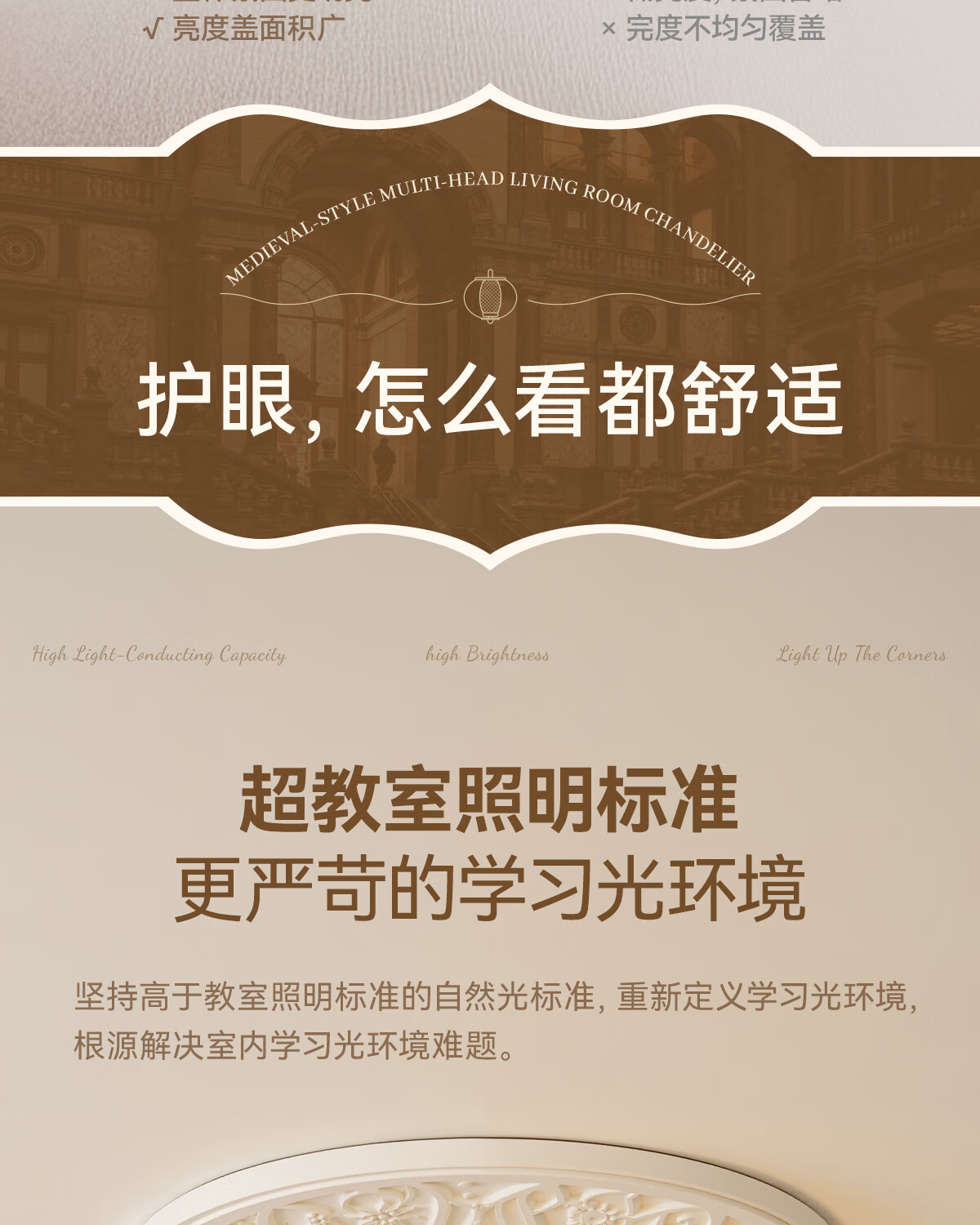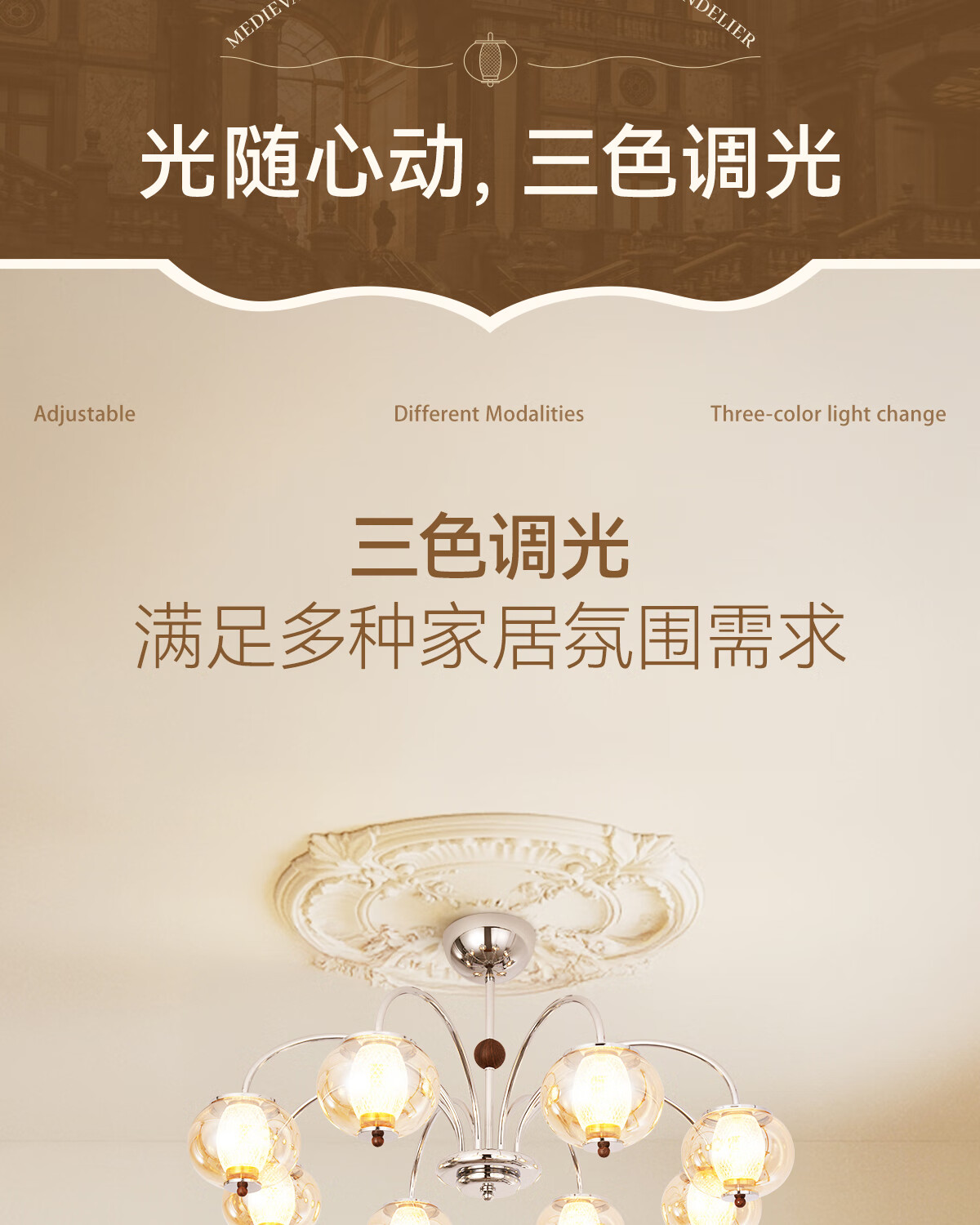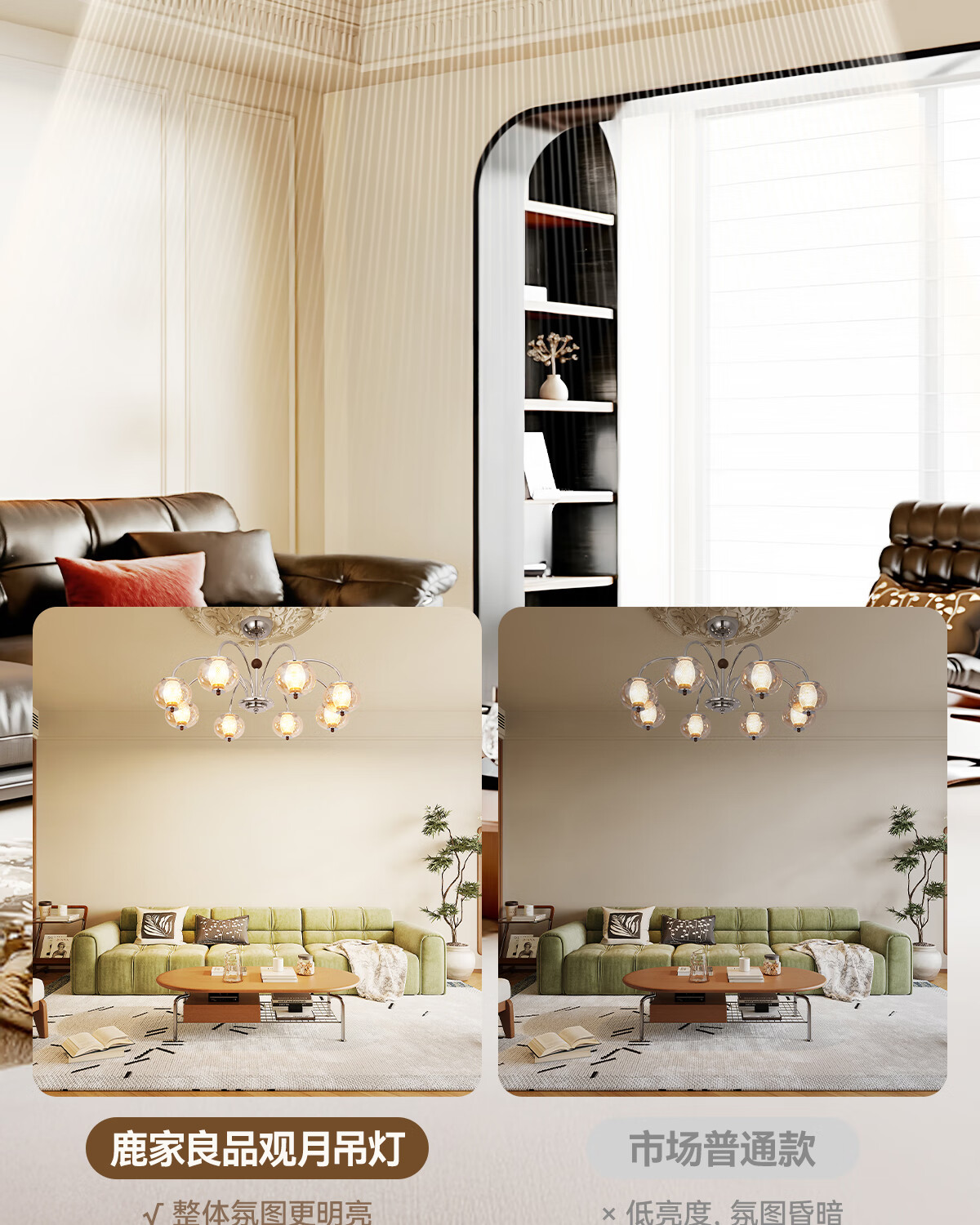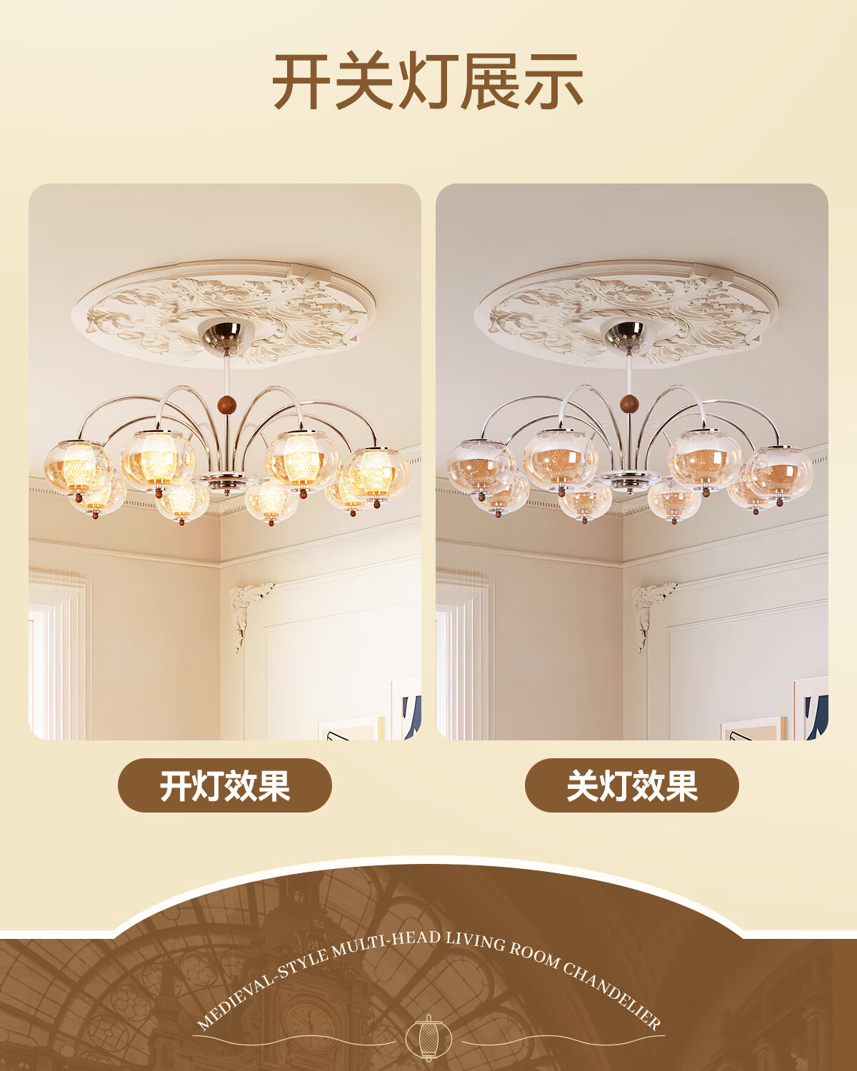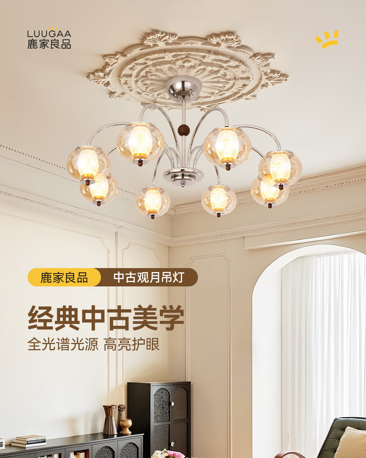 鹿家良品(LUUGAA)观月客厅吊灯法式中古风吊灯2025新款高级感轻奢大厅主灯复古灯具 【荐】全光谱8头三色光60W