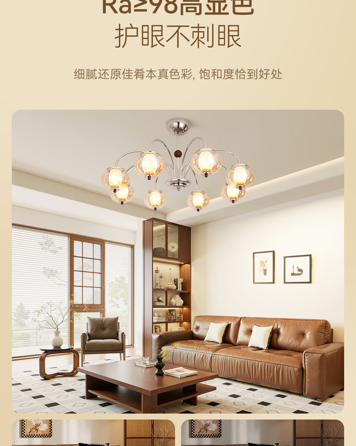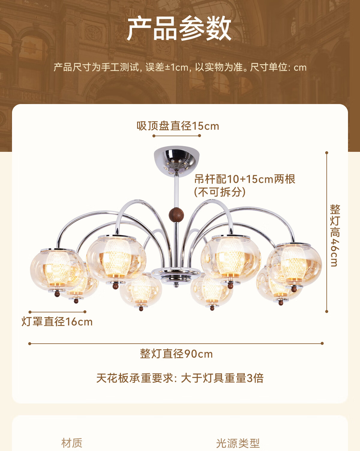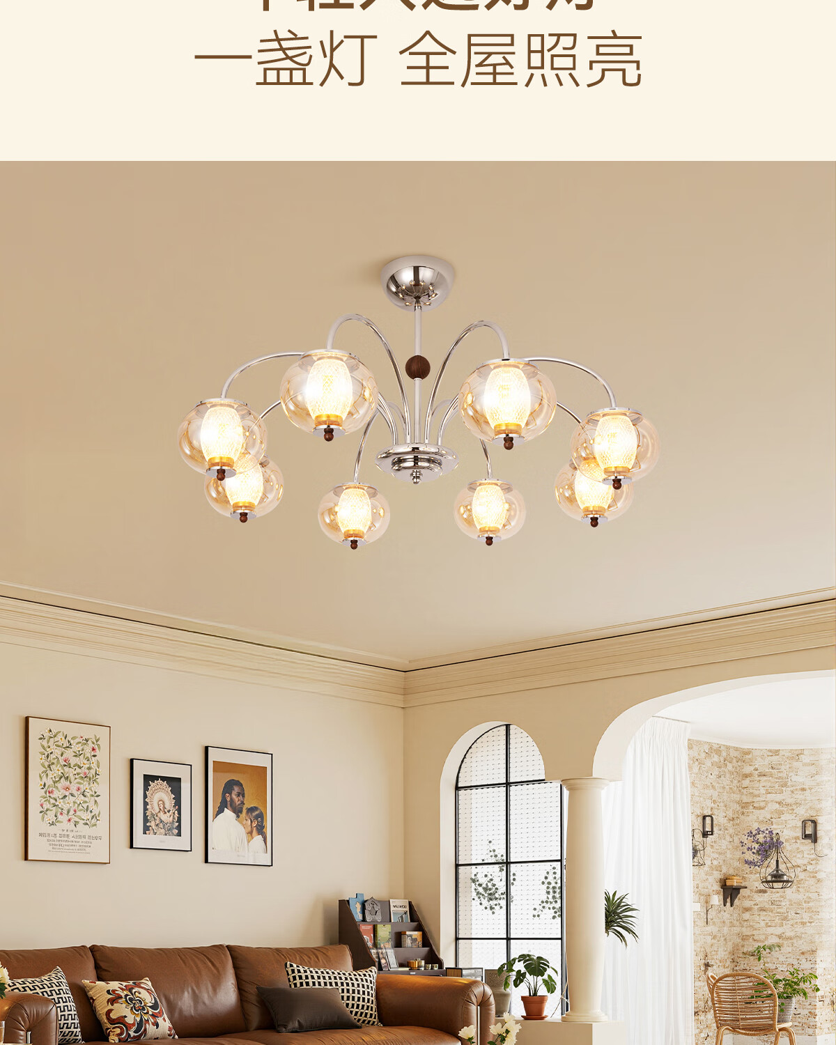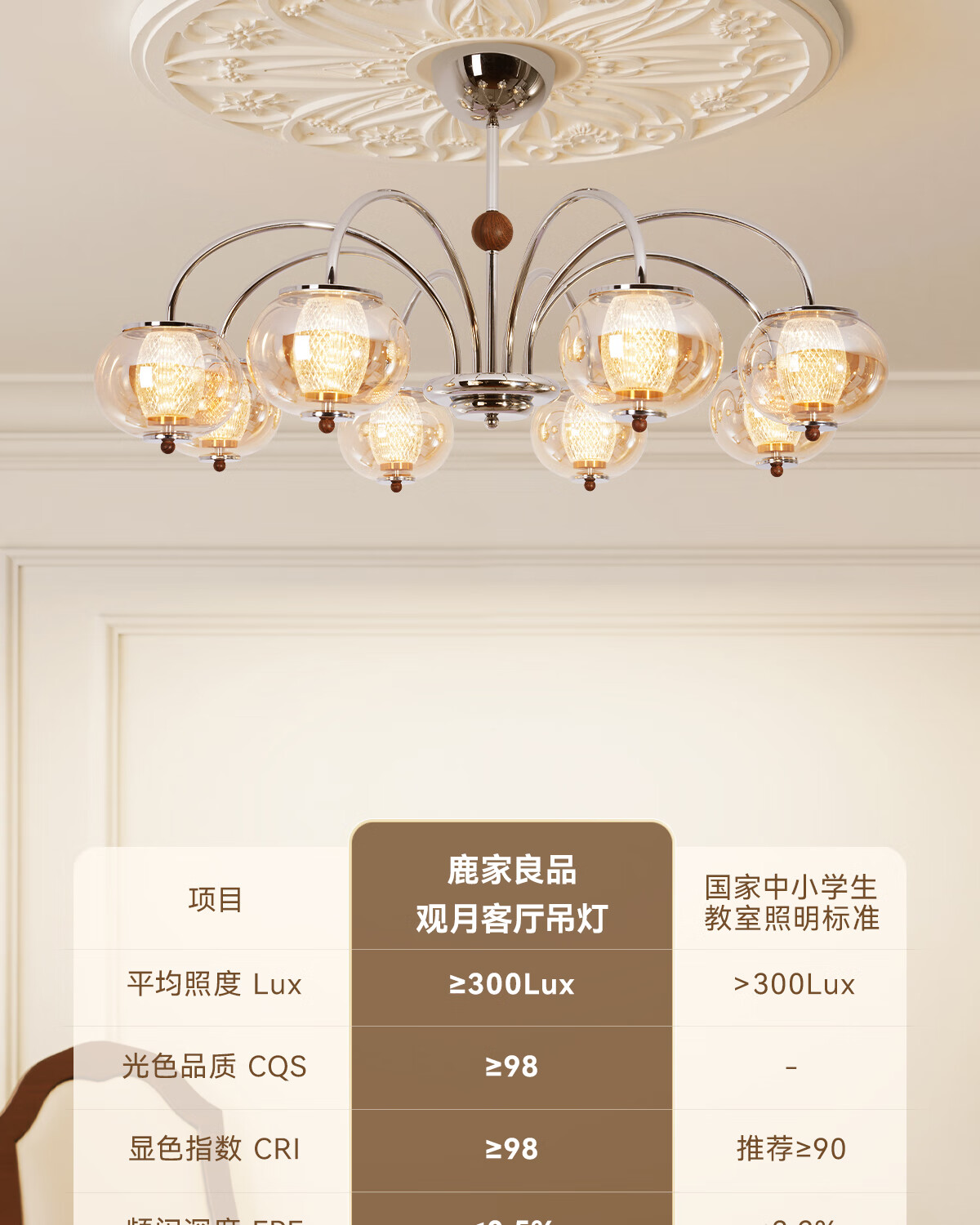 鹿家良品(LUUGAA)观月客厅吊灯法式中古风吊灯2025新款高级感轻奢大厅主灯复古灯具 【荐】全光谱8头三色光60W
